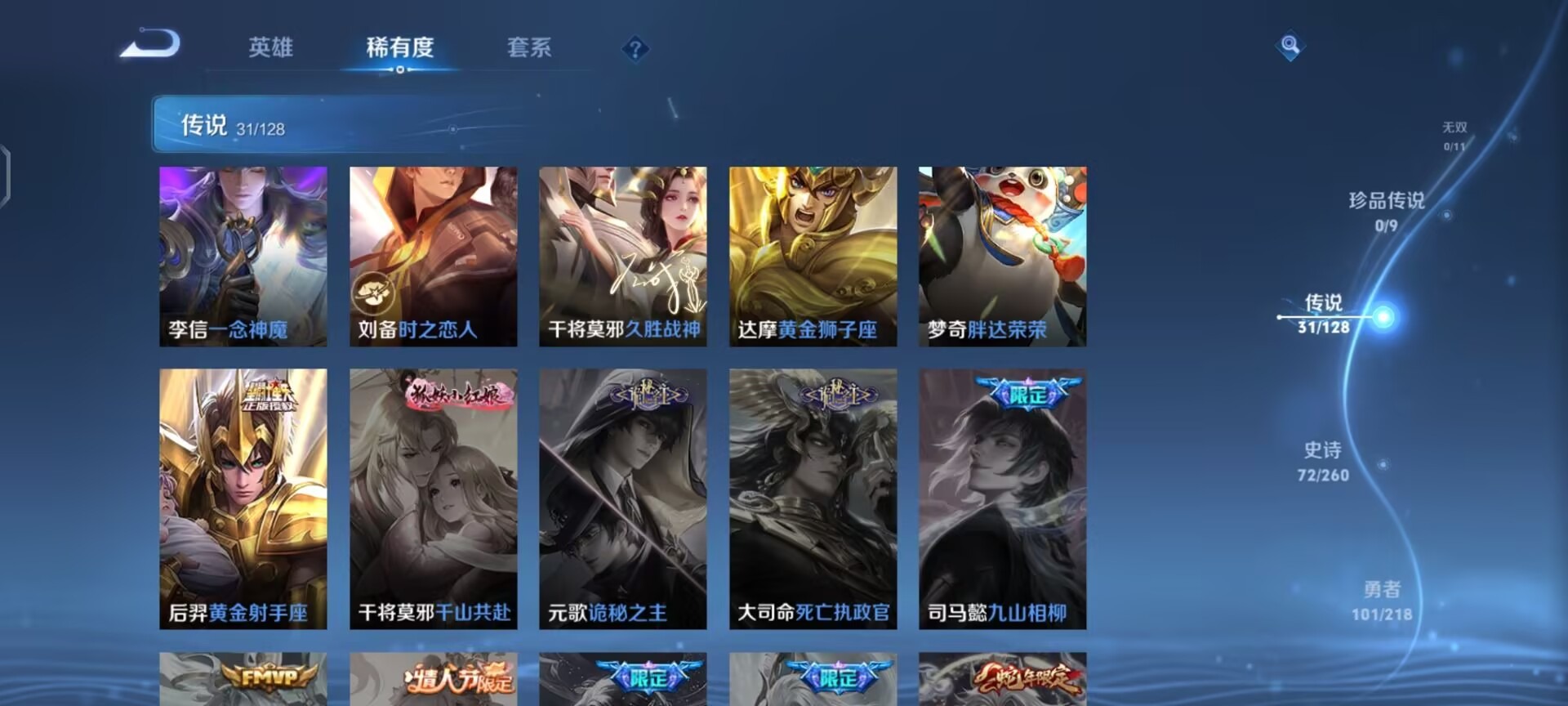 [11685989]V8 1典藏 31传说 124英雄 270皮肤 可修改实名 优质装备:九霄神辉(木兰典藏),黄金狮子座,黄金射手座,云鹰飞将(小将军),久胜战神,炽阳神光,一念神魔,音你心动-周瑜,胖达荣荣,时之恋人-刘备(电焊工),淬星耀世,无双飞将,山海·炽霜斩(李信年限),浮生妄,记忆之芯(机甲兔),百相守梦(张飞),追逃游戏(安琪拉),电玩·雷克斯,灼幽烈阳,妄想实况,妄想奇谈,鹤归松栖(云缨),遇见神鼓,鲁班七号-时之奇旅 珍宝阁皮:妄想食味 限定皮:鸣野蒿,至尊宝,傲雪梅枪,山海·碧波行(瑶年限),诗剑行,齐天大圣,怒海麟威,武圣,李小龙,默契交锋-花木兰,引擎之心,寅虎·赤拳(老虎年限),深海之息(深海大菠萝),山海·玄木吟(马可年限) 史诗皮:鸭鸭历险记-刘禅,星界战将,谪仙醉月,龙之律动,破空之剑,蒙犽顽岩魄,乘龙·聚宝船(安琪拉年限),百相守梦-黄忠,织梦人,紫霞仙子,特工魅影,永昼,江河有灵,匿光侦查者,鹤归松栖(赵怀真),高渐离燃音魔法,蒙恬荣光圣徽,匿光破解者,冰冠公主,电玩·爆裂旋风,百相守梦(刘备),暗夜猫娘,银翎春语,末日机甲-吕布,猫狗日记-孙策,时之恋人-孙尚香,修罗,女仆咖啡,摇滚巨星,水果甜心,天才门将,功夫厨神,德古拉伯爵,暗隐猎兽者,幽灵船长,鬼剑武藏,暗渊魔法,心灵战警,天秀·启明,纤云弄巧,缤纷独角兽,逐浪之夏,水晶猎龙者,曙光守护者,箭羽风息,唤灵魅影,金属风暴,原初追逐者,圣诞恋歌,鹰眼统帅,魅力维加斯,赏金猎手,天秀·音浪,无心,玫瑰异探