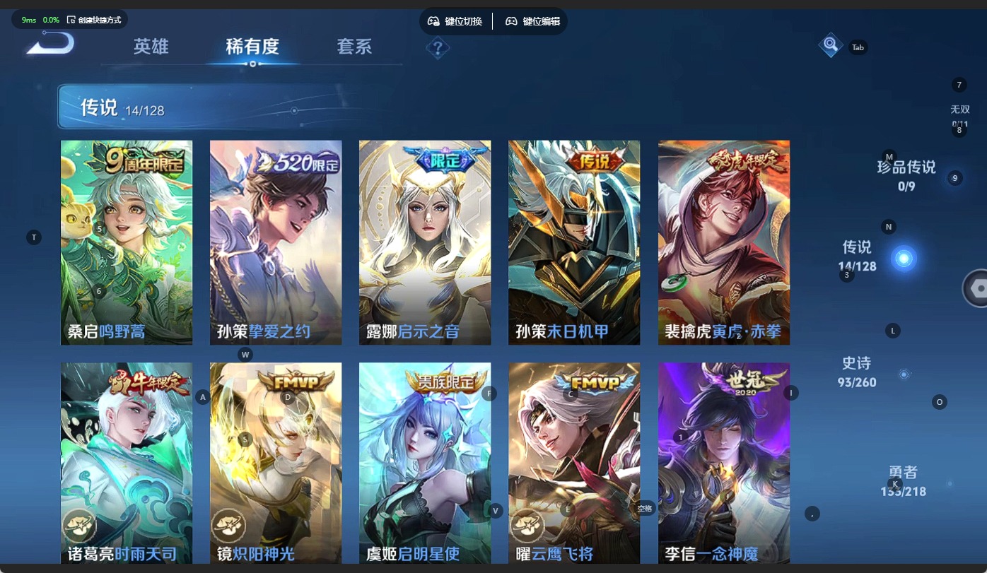 - [11571492]V6 5传说 124英雄 204皮肤 可修改实名 优质装备:云鹰飞将(小将军),澜逐花归海 传说皮:幻光神枪 珍宝阁皮:妄想食味,万物之道,玩趣恶龙 限定皮:愿照·九州拓(澜年限),逐霄战戟,鸣野蒿,五谷丰年,游园惊梦,李小龙,朱雀志(守约年限) 史诗皮:器灵·浮梦炉,星界战将,谪仙醉月,龙之律动,破空之剑,百相守梦-黄忠,特工魅影,江河有灵,百解令(蒙犽),蒙恬荣光圣徽,偶像歌手,电玩·爆裂旋风,末日机甲-吕布,猫狗日记-孙策,猫狗日记-大乔,乱世虎臣,节奏热浪,修罗,女仆咖啡,摇滚巨星,水果甜心,绅士熊喵,星夜王子,功夫厨神,德古拉伯爵,暗隐猎兽者,幽灵船长,鬼剑武藏,心灵战警,舞动绿茵,逐浪之夏,水晶猎龙者,金属风暴,鹰眼统帅,魅力维加斯,黎明之约,无心,未来纪元-赵云