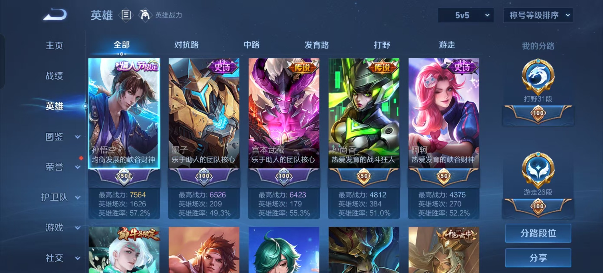 - [12222764]V8 2典藏 1珍品传说 9传说 126英雄 240皮肤 可修改实名 优质装备:鸣剑·曳影,弑枪猎影(韩信典藏),怪盗基德,末日机甲-孙尚香(绿蚂蚱),音你闪耀(rap皮) 传说皮:乘龙·问璇玑(孙尚香年限),九山相柳,祥瑞亨通 珍宝阁皮:胡桃夹子,女武神 限定皮:愿照·山河定(司空震年限),逐霄战戟,鸣野蒿,至尊宝,白晶晶,神威(电光马子),遇见飞天,五谷丰年,冰锋战神,武圣,李小龙,猪悟能,玉兔公主 史诗皮:鸭鸭历险记-刘禅,狼魂孤将,化蝶舞,星界战将,石田雨龙,茶境仙,东方月初,蒙犽顽岩魄,蔬乡物语(鲁班七号),百相守梦-百里守约,紫霞仙子,黄金分割率,特工魅影,千年之狐,匿光侦查者,江河有灵,百解令(蒙犽),蒙恬荣光圣徽,魅语,晚萤,偶像歌手,暗夜猫娘,末日机甲-吕布,猫狗日记-孙策,乱世虎臣,节奏热浪,修罗,女仆咖啡,摇滚巨星,水果甜心,绅士熊喵,天才门将,心灵骇客,德古拉伯爵,幽灵船长,鬼剑武藏,心灵战警,乐园奇幻夜,天秀·启明,舞动绿茵,纤云弄巧,繁星吟游(呼啦呼啦),缤纷独角兽,乘风破浪,逐浪之夏,水晶猎龙者,箭羽风息,金属风暴,原初追逐者,圣诞狂欢,圣诞恋歌,鹰眼统帅,魅力维加斯,黎明之约,赏金猎手