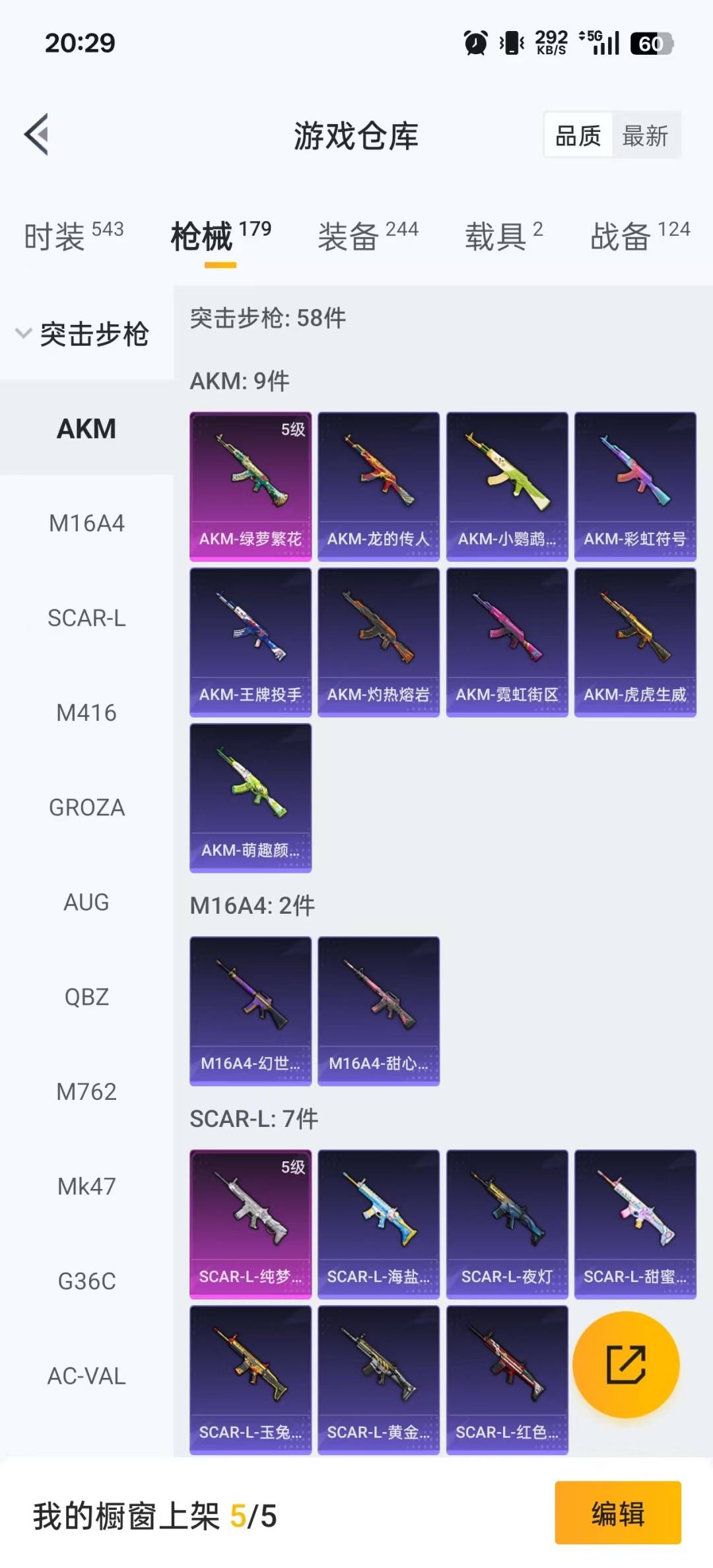 AKM-绿萝繁花,SCAR-L-纯梦嫁纱,M416-全功率超战,M416-风花雪月