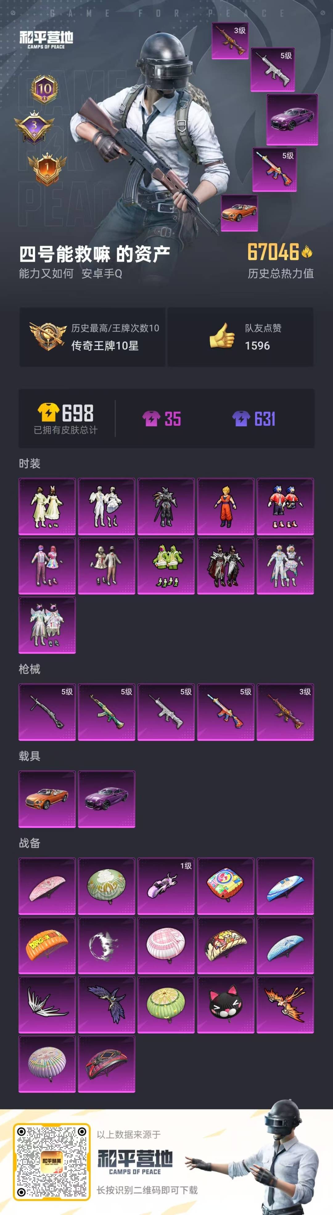 [11686541]11粉装 5特效枪 2载具 10印记 可二次 可修改实名 女号 优质装备:宾利BATUR(极速紫),宾利欧陆GT敞篷(火焰橘),宝贝奶油派,天使彩虹糖,M416全功率超战,M416风花雪月,SCAR-L纯梦嫁纱,AKM绿萝繁花 热门装扮:飓风飞鹰,彩虹鹿灵,山涧鹿灵,沙场疾风,恐龙拽拽,寒光使者,音爆索尼克,超级赛亚人孙悟空,超级赛亚人贝吉塔,闲梦青缨,东方飞龙,暗夜魅影 稀有枪皮:DP-28-豹影疾电 五级特效枪:五级DP-28-豹影疾电,五级M416-全功率超战,五级SCAR-L-纯梦嫁纱,五级AKM-绿萝繁花 三级特效枪:三级M416-风花雪月 紫色装扮:田园牧歌,轻风白浪,和煦暖阳,SS22特训,莱茵河畔,孙悟空,SS23特训,幻彩翩翩,妙红点点,娇憨猪猪,酸甜橘柚,夏雨游龙,萌趣咩咩,SS21特训,绚烂繁星,熠彩粉晶,冷焰舞者,北国孤狼,午夜朋克,SS33特训套装,青涩时光,SS20特训,SS15特训,时空追击者,暴风机械师,SS16特训,爆裂葡萄,萌趣颜团子,特种颜团子,猎梦纪元,飞驰魅影,音速流光,极速竞梦,SS19特训,覆海蛟龙,甜心亚梦,虚音幻奏,电音精灵,瑞龙福将,团圆交子,醒狮腾龙,SS17特训,极乐追光,异彩先驱,SS18特训,都市漫游者,都市魅力,野性山猫,野性战心,野性战魂,长空猛禽,雷霆特警,霓虹极客,霓虹街区,青春校园,迎春赐吉,缤纷果语,耀眼新星,花园小羊咩,蓝色守护者,虎虎生威吉莉,血色贵族,西部风情,风行保卫者,飞行日记,龙腾端午,骑行爱好者,魅力单车,鹤鸣,麻辣教官,黑色伏地魔,龙的传人,龟仙人,柠萌假日,格斗先锋,棕色飞行服,水手小飞鸭,沙漠探路者,活力之魂,涂山之恋,滨海假日,夏日音浪,夜莺强袭者,幻世战舞者,怒火燎原,探宝勇士,湖蓝色名流,滨海厨神,白熊同盟,破蛋小黄鸡,神秘领域,福星高照,空岛之星,空投萌叽,突袭者,甜蜜熊情侣,王牌教练,牛气冲天,灼焰舞者,炫蓝之夏,燃烧卡路里,牛气满满,猛禽,特战装甲,短笛,玉兔迎春,竞技名士,惊鸿侠骨,贝吉塔,究极悟饭,神气柴柴,懵萌河马,SS24特训(SS24特训套装),SS25特训,锦衣飞扬,粉红小猪,菲菲,SS27特训,星河浪客,华灯初上,日照花林,沙丘之歌,SS26特训,春光漫游,快闪甜心,薄荷蓝莓,耀粉歌者,绯格组合,萌黄之夏,水银刺客,光之冒险,海上生明月