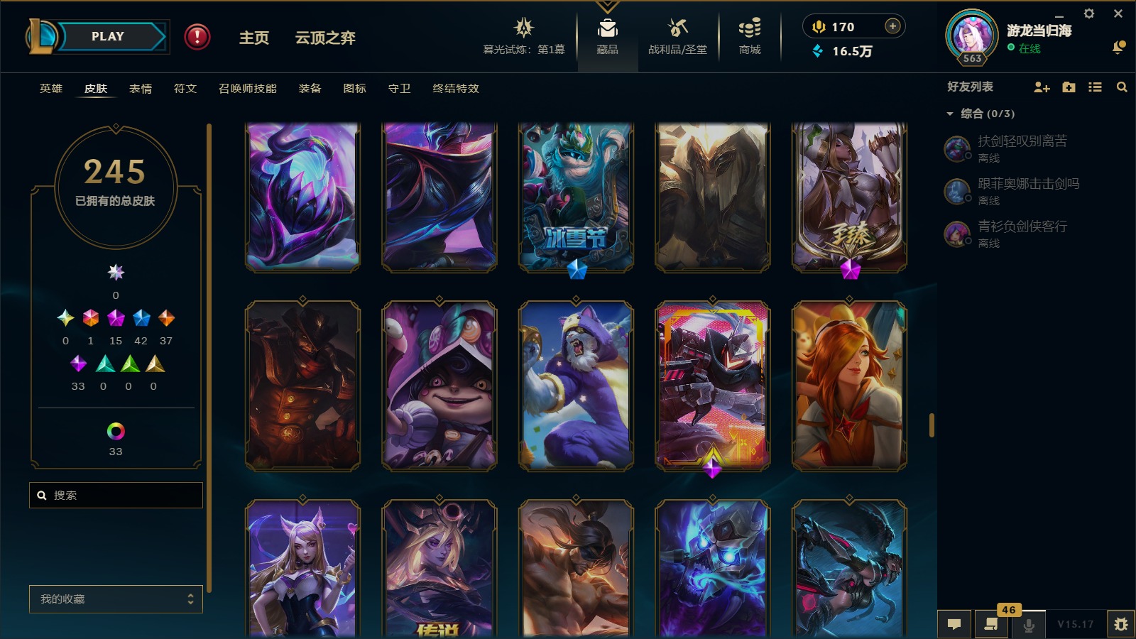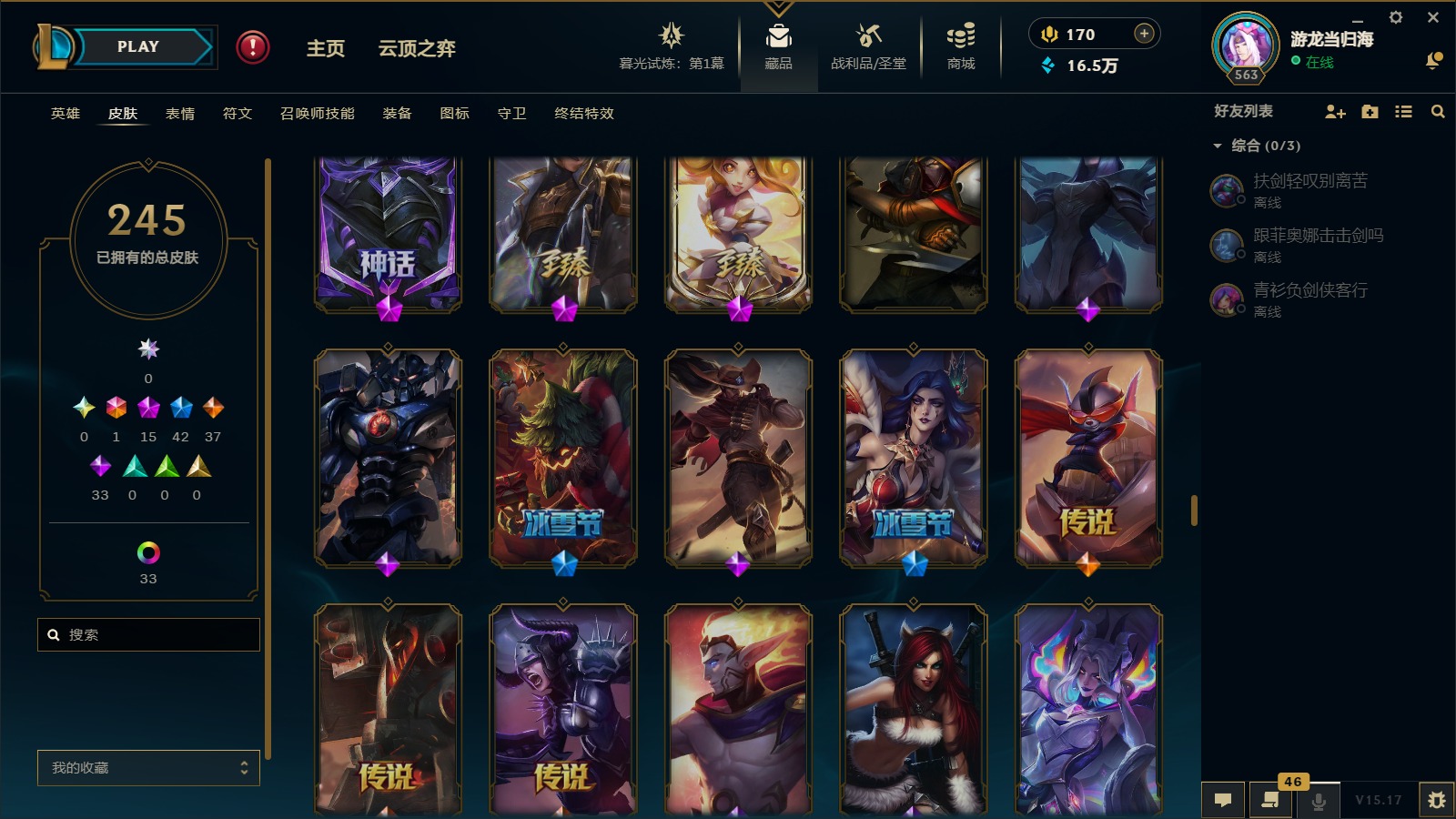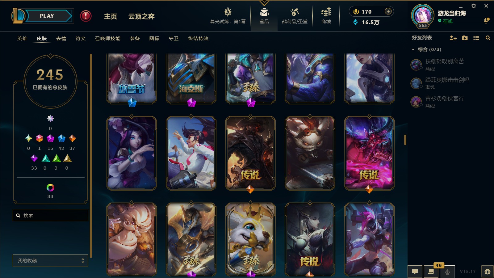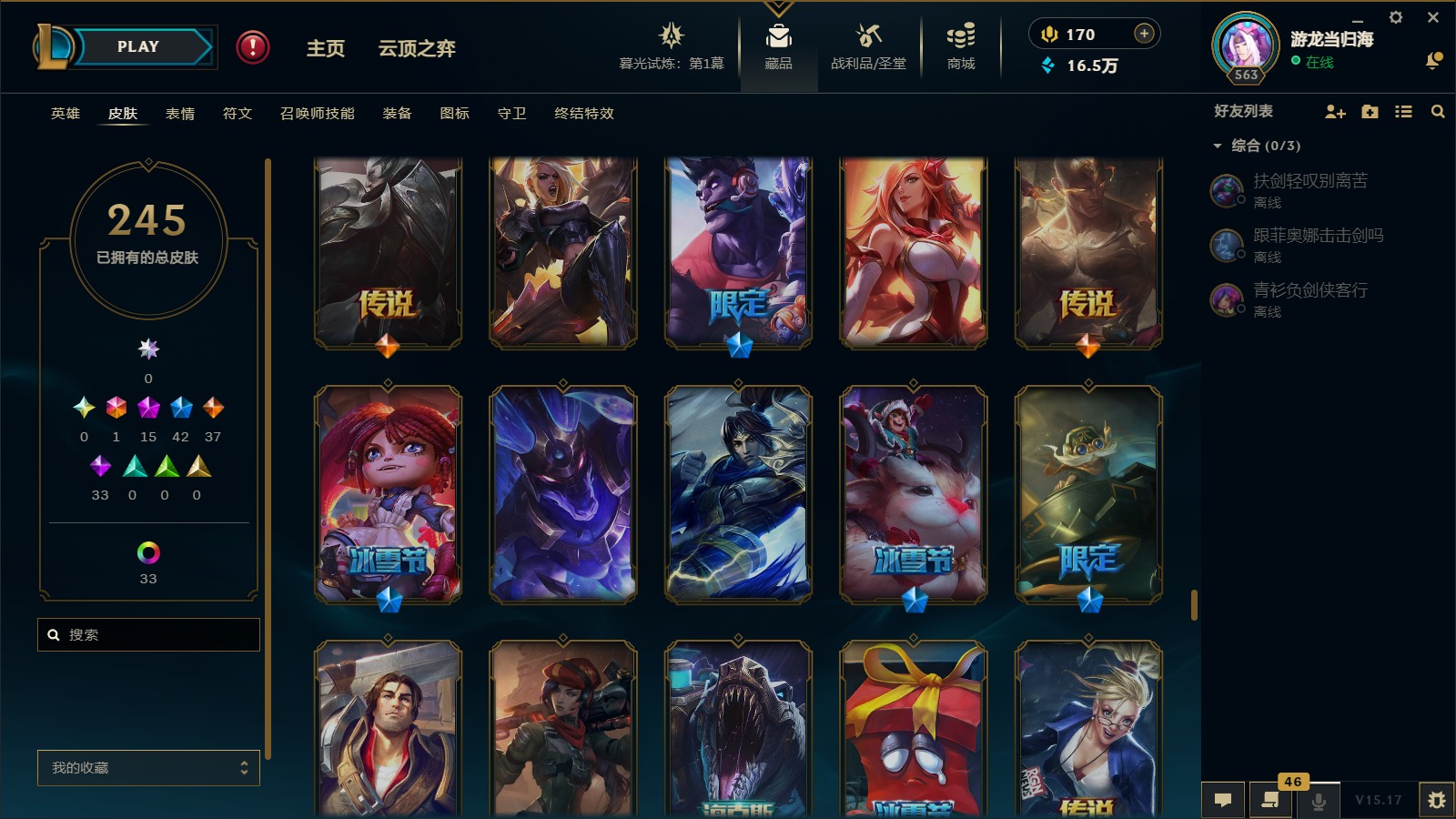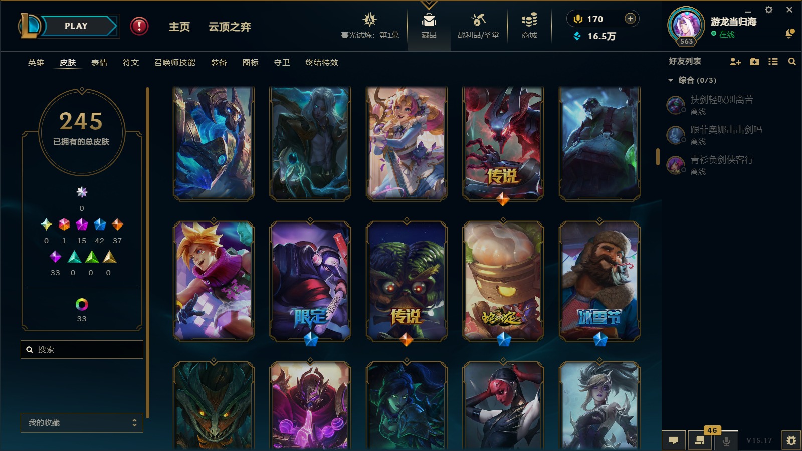 [11686825]1终极 15神话 42限定 37传说 33史诗 245皮肤 82炫彩 171英雄 可二次 可修改实名 优质装备:至臻 绒毛菲兹,至臻 魅惑女巫 厄运小姐,至臻 星之守护者 妮寇,至臻 飞升战神 潘森,至臻 灵能特工 伊泽瑞尔,暗影 沃里克,都铎王朝 图奇,防爆士兵 炼金,冠军蔷薇 乐芙兰,警用试作体K-9 内瑟斯,至臻 星之守护者 艾克,DJ-娑娜,至臻 至高天 奎桑提,灰烬骑士 莫德凯撒,至臻 星之守护者 妮蔻,奥德赛 吉格斯,源计划: 联合 艾希 红莲之弓,冠军之血 希瓦娜 凯旋圣装,无畏骑士 瑟庄妮 赤子初心,玉剑传说 神机花火 青竹,星之守护者 金克丝 黑洞,至臻 绒毛 菲兹,净雪之月 莫甘娜 冬虹,十五周年纪念 希维尔,灌篮高手 德莱厄斯 金色神话,魔女 阿卡丽 虚荣,王国机神 白虎 贾克斯 云霄,至臻 双城之战2 指挥官 凯特琳 华星,点心宝贝 萨勒芬妮 香蕉冰糖葫芦,殿堂传奇 薇恩,殿堂传奇 薇恩 登神 海克斯:恐惧新星 德莱厄斯,摄魂 薇恩,海克斯 雷克顿,海克斯 斯维因 情人节限定:觅心魔灵 奥利安娜,幽梦玫瑰 蜘蛛 赛季限定皮:胜利巨口 克格莫,胜利女神 奥利安娜,胜利之剑 剑魔,胜利枪神 卢锡安,胜利女神 瑟庄妮 冠军限定系列:S1FNC 酒桶,S1FNC 迦娜,S1FNC 嘉文四世,S1FNC 库奇,S2 暗杀星 蒙多,S2 暗杀星 慎,S3 SKT T1 薇恩,S6 SKT T1 娜美 冰雪节限定:“主人不要我了” 阿木木,冰雪节 格雷福斯,魄罗骑士 瑟庄妮,圣诞开心鬼 提莫,圣诞狂欢 努努,圣诞玩偶 波比,圣诞驯鹿 克格莫,冰雪节 茂凯,邪恶圣诞老人 维迦,幸福女神 乐芙兰,北极星使者 沃里克 泳池派对:泳池派对 菲奥娜,泳池派对 李青,泳池派对 普朗克,海之歌 奈德丽 万圣节限定:鬼影森森 茂凯 年限:点心宝贝 阿木木,蛇年 库奇,鸡年 阿兹尔,鼠年 武器 周年:2周年 德莱厄斯,10周年 安妮