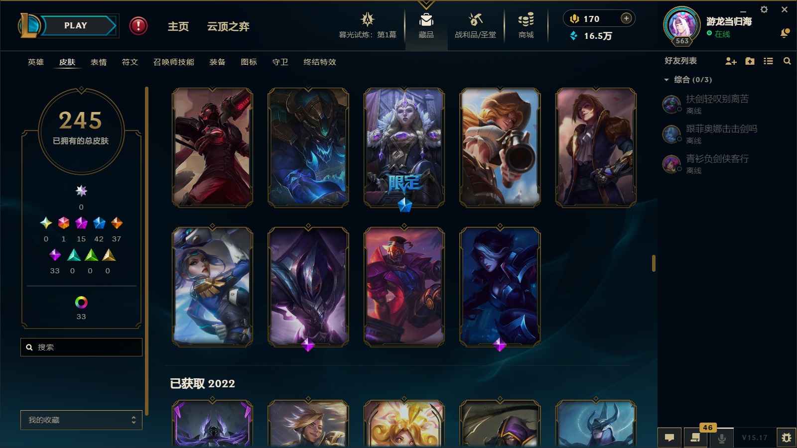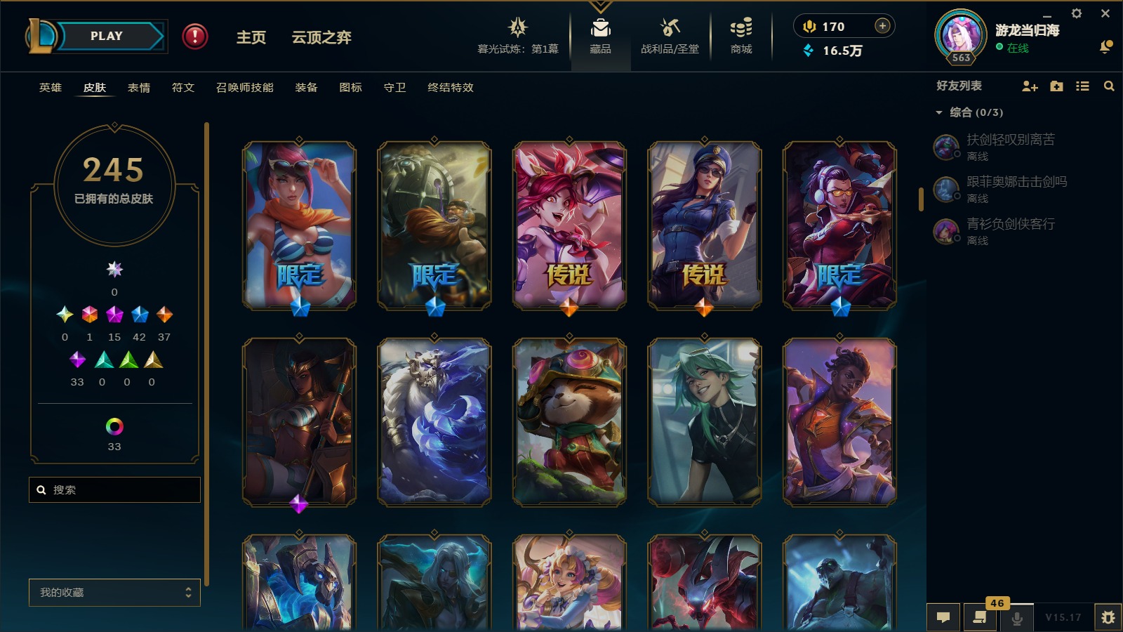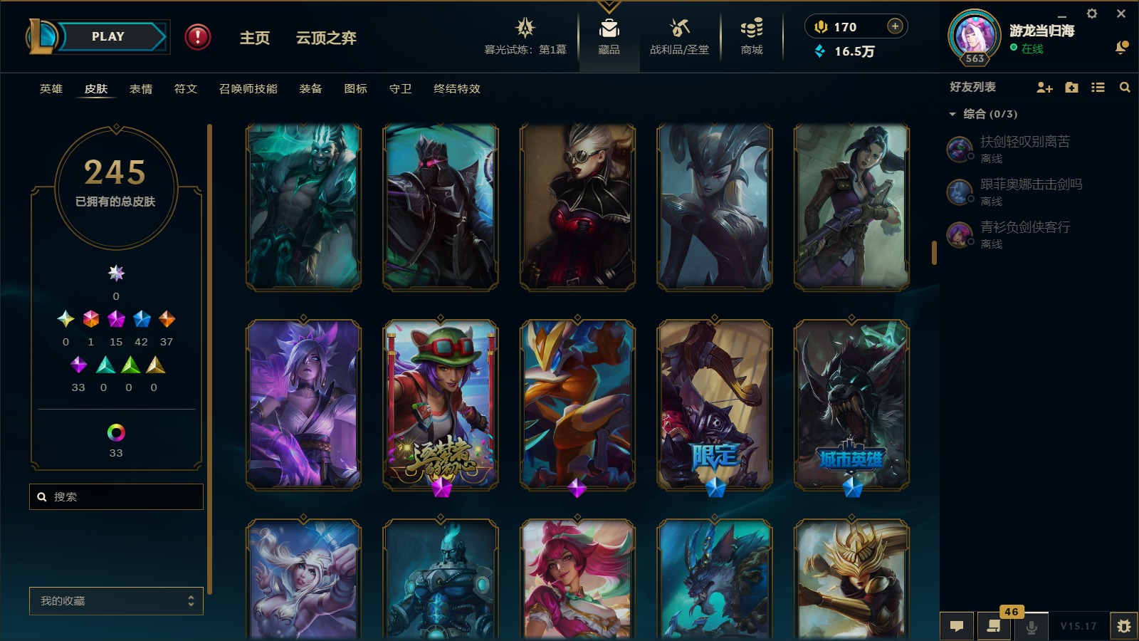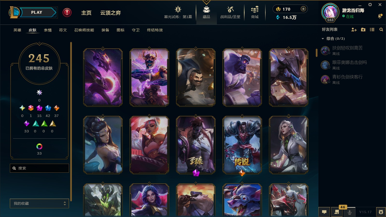[11686825]1终极 15神话 42限定 37传说 33史诗 245皮肤 82炫彩 171英雄 可二次 可修改实名 优质装备:至臻 绒毛菲兹,至臻 魅惑女巫 厄运小姐,至臻 星之守护者 妮寇,至臻 飞升战神 潘森,至臻 灵能特工 伊泽瑞尔,暗影 沃里克,都铎王朝 图奇,防爆士兵 炼金,冠军蔷薇 乐芙兰,警用试作体K-9 内瑟斯,至臻 星之守护者 艾克,DJ-娑娜,至臻 至高天 奎桑提,灰烬骑士 莫德凯撒,至臻 星之守护者 妮蔻,奥德赛 吉格斯,源计划: 联合 艾希 红莲之弓,冠军之血 希瓦娜 凯旋圣装,无畏骑士 瑟庄妮 赤子初心,玉剑传说 神机花火 青竹,星之守护者 金克丝 黑洞,至臻 绒毛 菲兹,净雪之月 莫甘娜 冬虹,十五周年纪念 希维尔,灌篮高手 德莱厄斯 金色神话,魔女 阿卡丽 虚荣,王国机神 白虎 贾克斯 云霄,至臻 双城之战2 指挥官 凯特琳 华星,点心宝贝 萨勒芬妮 香蕉冰糖葫芦,殿堂传奇 薇恩,殿堂传奇 薇恩 登神 海克斯:恐惧新星 德莱厄斯,摄魂 薇恩,海克斯 雷克顿,海克斯 斯维因 情人节限定:觅心魔灵 奥利安娜,幽梦玫瑰 蜘蛛 赛季限定皮:胜利巨口 克格莫,胜利女神 奥利安娜,胜利之剑 剑魔,胜利枪神 卢锡安,胜利女神 瑟庄妮 冠军限定系列:S1FNC 酒桶,S1FNC 迦娜,S1FNC 嘉文四世,S1FNC 库奇,S2 暗杀星 蒙多,S2 暗杀星 慎,S3 SKT T1 薇恩,S6 SKT T1 娜美 冰雪节限定:“主人不要我了” 阿木木,冰雪节 格雷福斯,魄罗骑士 瑟庄妮,圣诞开心鬼 提莫,圣诞狂欢 努努,圣诞玩偶 波比,圣诞驯鹿 克格莫,冰雪节 茂凯,邪恶圣诞老人 维迦,幸福女神 乐芙兰,北极星使者 沃里克 泳池派对:泳池派对 菲奥娜,泳池派对 李青,泳池派对 普朗克,海之歌 奈德丽 万圣节限定:鬼影森森 茂凯 年限:点心宝贝 阿木木,蛇年 库奇,鸡年 阿兹尔,鼠年 武器 周年:2周年 德莱厄斯,10周年 安妮