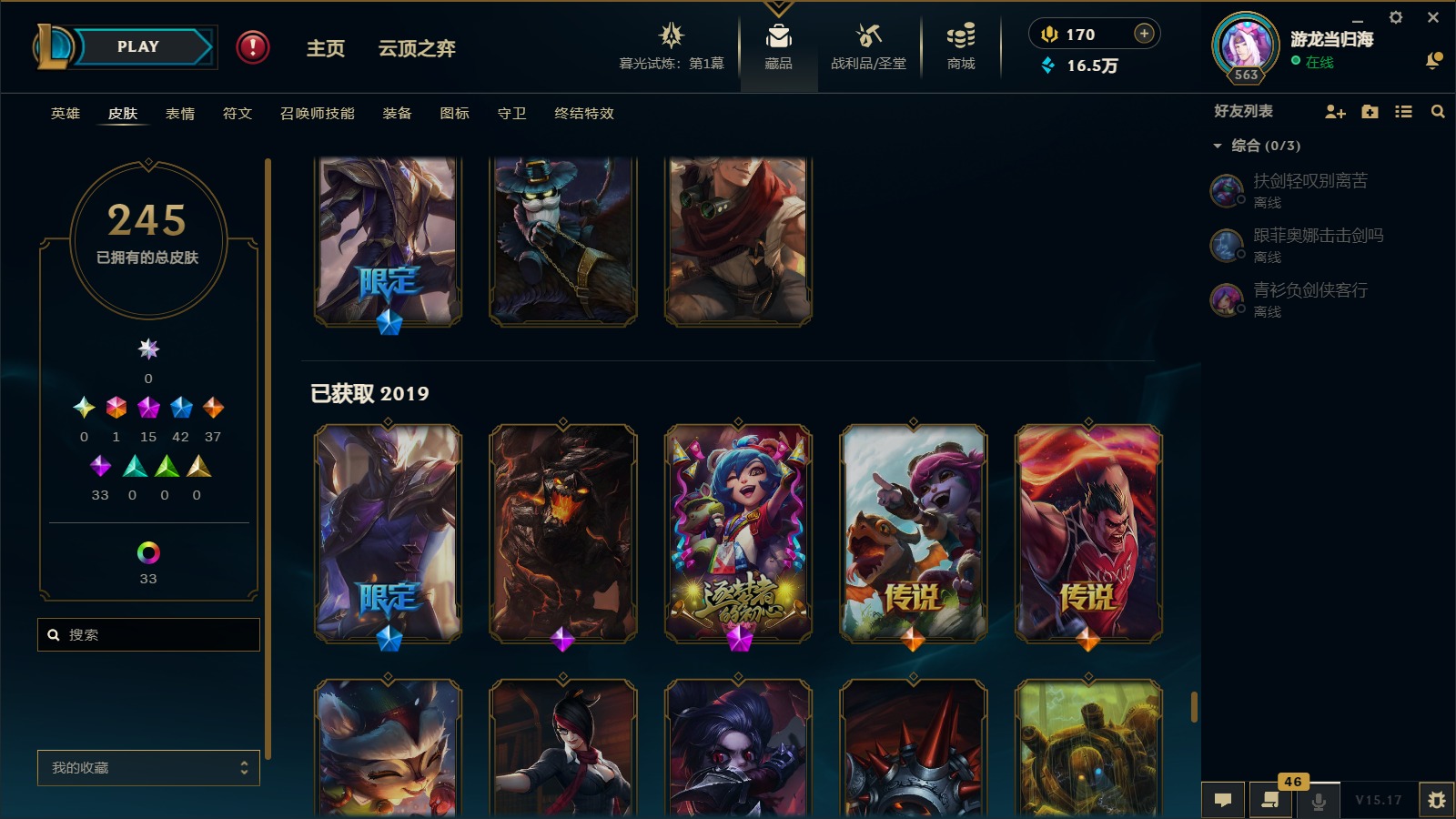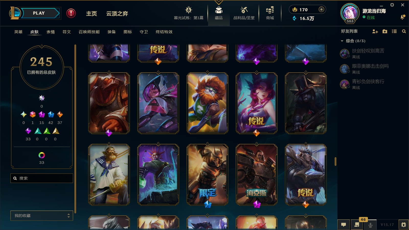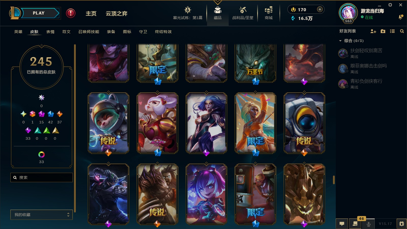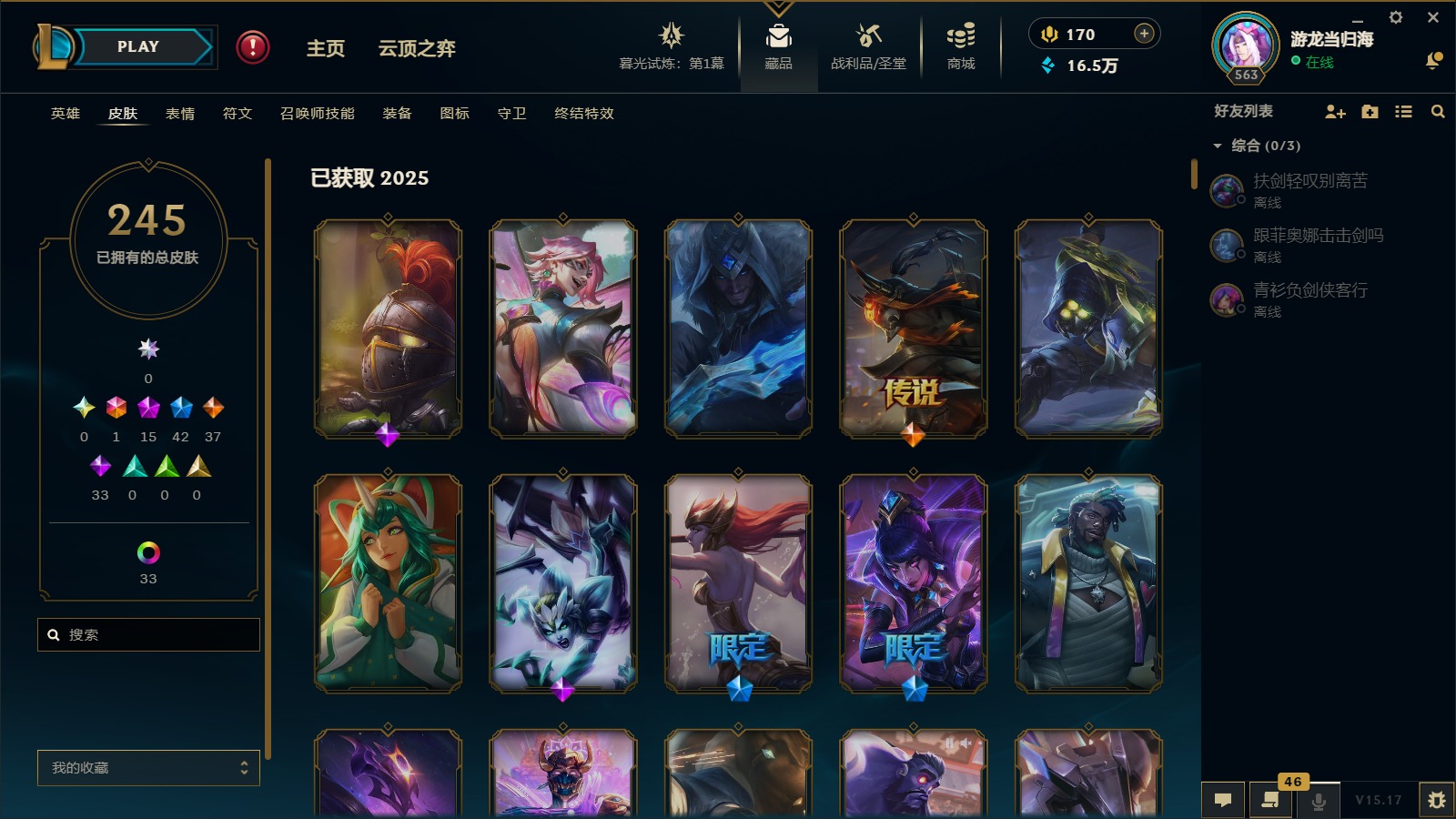 [11686825]1终极 15神话 42限定 37传说 33史诗 245皮肤 82炫彩 171英雄 可二次 可修改实名 优质装备:至臻 绒毛菲兹,至臻 魅惑女巫 厄运小姐,至臻 星之守护者 妮寇,至臻 飞升战神 潘森,至臻 灵能特工 伊泽瑞尔,暗影 沃里克,都铎王朝 图奇,防爆士兵 炼金,冠军蔷薇 乐芙兰,警用试作体K-9 内瑟斯,至臻 星之守护者 艾克,DJ-娑娜,至臻 至高天 奎桑提,灰烬骑士 莫德凯撒,至臻 星之守护者 妮蔻,奥德赛 吉格斯,源计划: 联合 艾希 红莲之弓,冠军之血 希瓦娜 凯旋圣装,无畏骑士 瑟庄妮 赤子初心,玉剑传说 神机花火 青竹,星之守护者 金克丝 黑洞,至臻 绒毛 菲兹,净雪之月 莫甘娜 冬虹,十五周年纪念 希维尔,灌篮高手 德莱厄斯 金色神话,魔女 阿卡丽 虚荣,王国机神 白虎 贾克斯 云霄,至臻 双城之战2 指挥官 凯特琳 华星,点心宝贝 萨勒芬妮 香蕉冰糖葫芦,殿堂传奇 薇恩,殿堂传奇 薇恩 登神 海克斯:恐惧新星 德莱厄斯,摄魂 薇恩,海克斯 雷克顿,海克斯 斯维因 情人节限定:觅心魔灵 奥利安娜,幽梦玫瑰 蜘蛛 赛季限定皮:胜利巨口 克格莫,胜利女神 奥利安娜,胜利之剑 剑魔,胜利枪神 卢锡安,胜利女神 瑟庄妮 冠军限定系列:S1FNC 酒桶,S1FNC 迦娜,S1FNC 嘉文四世,S1FNC 库奇,S2 暗杀星 蒙多,S2 暗杀星 慎,S3 SKT T1 薇恩,S6 SKT T1 娜美 冰雪节限定:“主人不要我了” 阿木木,冰雪节 格雷福斯,魄罗骑士 瑟庄妮,圣诞开心鬼 提莫,圣诞狂欢 努努,圣诞玩偶 波比,圣诞驯鹿 克格莫,冰雪节 茂凯,邪恶圣诞老人 维迦,幸福女神 乐芙兰,北极星使者 沃里克 泳池派对:泳池派对 菲奥娜,泳池派对 李青,泳池派对 普朗克,海之歌 奈德丽 万圣节限定:鬼影森森 茂凯 年限:点心宝贝 阿木木,蛇年 库奇,鸡年 阿兹尔,鼠年 武器 周年:2周年 德莱厄斯,10周年 安妮