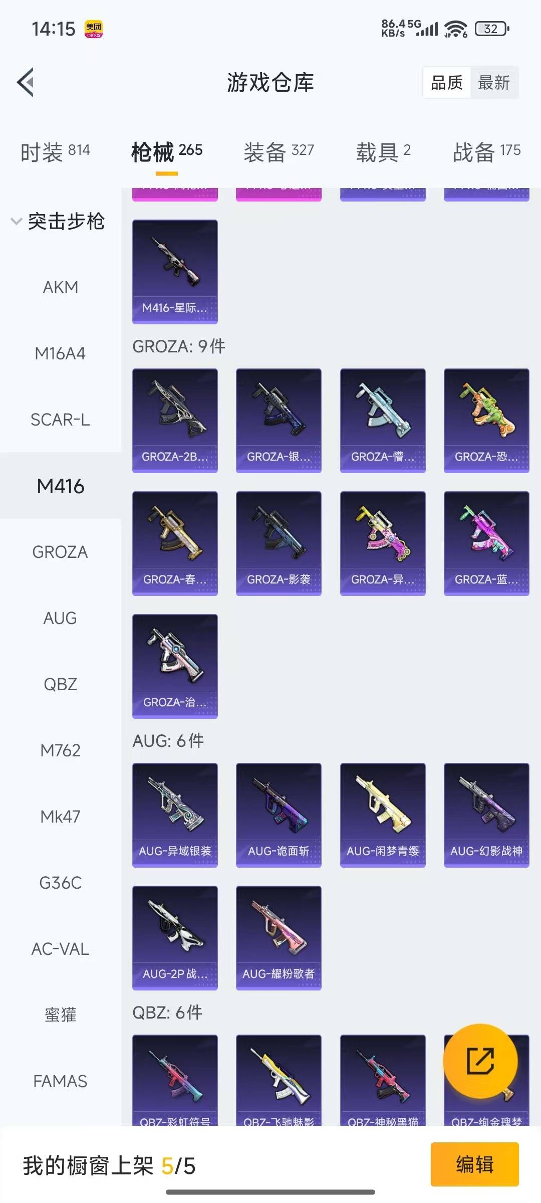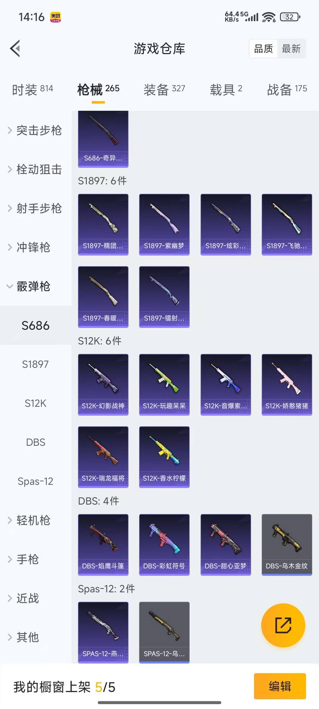 AKM-奇异狩猎者,M416-星际漫游,M762-奇异狩猎者,M762-瑞龙福将,Kar98K-终极赛罗,M24-香水柠檬,S686-奇异狩猎者