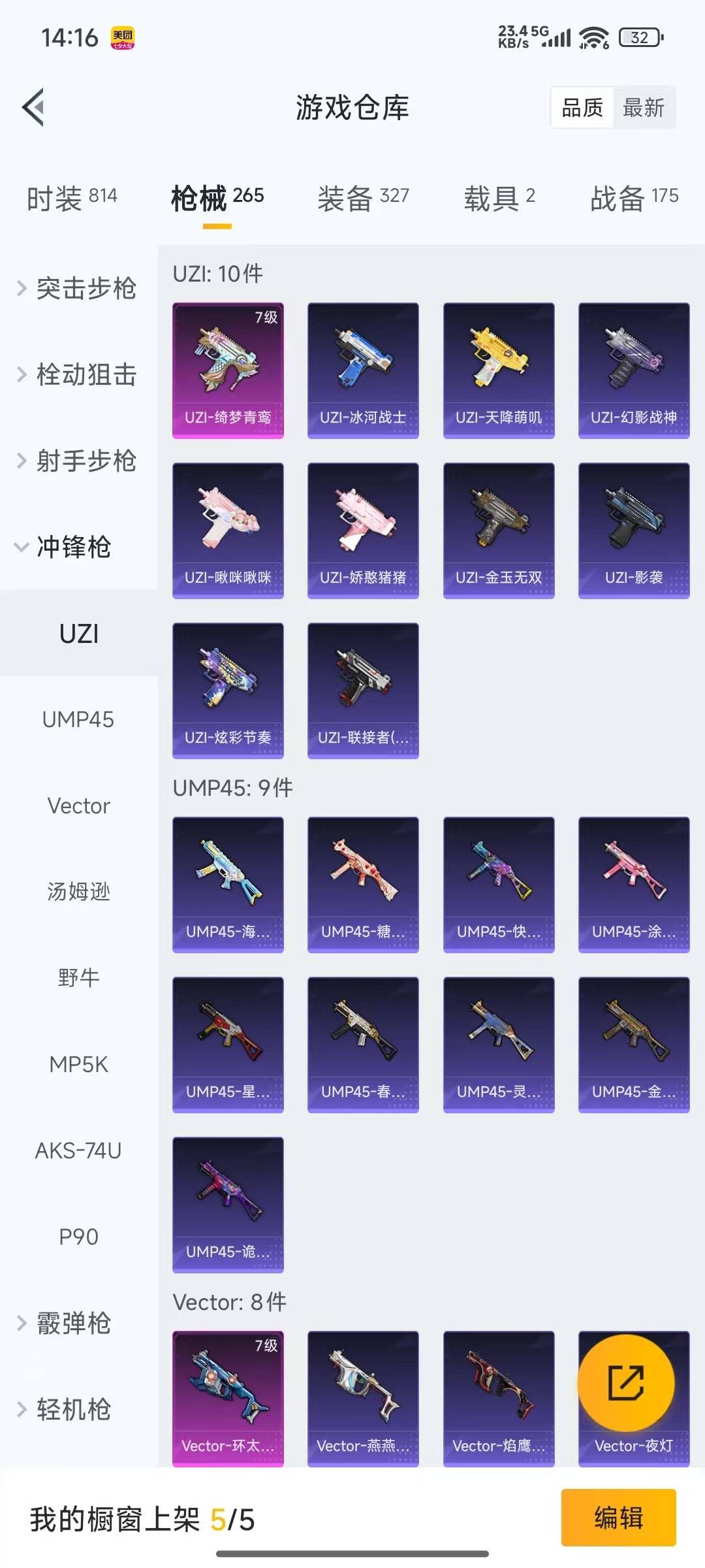 M416-心之恋语,M416-风花雪月,Kar98K-巳巳如意,UZI-绮梦青鸾,Vector-环太平洋