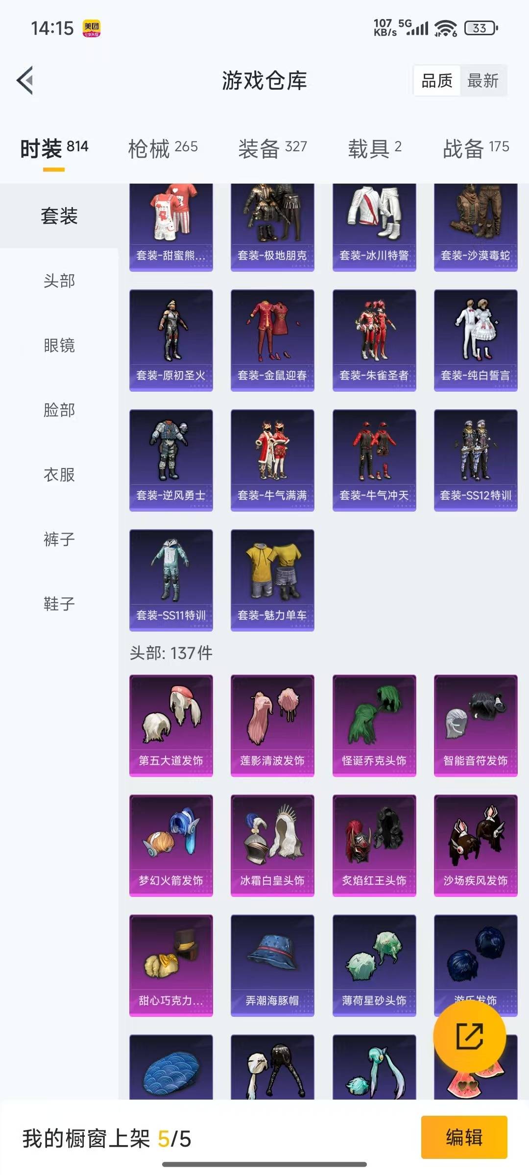 套装-都市猎人,套装-鹰眼刺客,套装-极限特训,套装-奇异狩猎者,套装-胖达团团,套装-冥河战士,套装-萌神柯基,套装-怪诞乔克,套装-梦幻火箭,套装-神秘黑猫,套装-智能音符,套装-炙焰红王,角色-洛天依,套装-沙场疾风,恐龙拽拽套装,套装-莲影清波,角色-狂花道·不知火舞,套装-第五大道