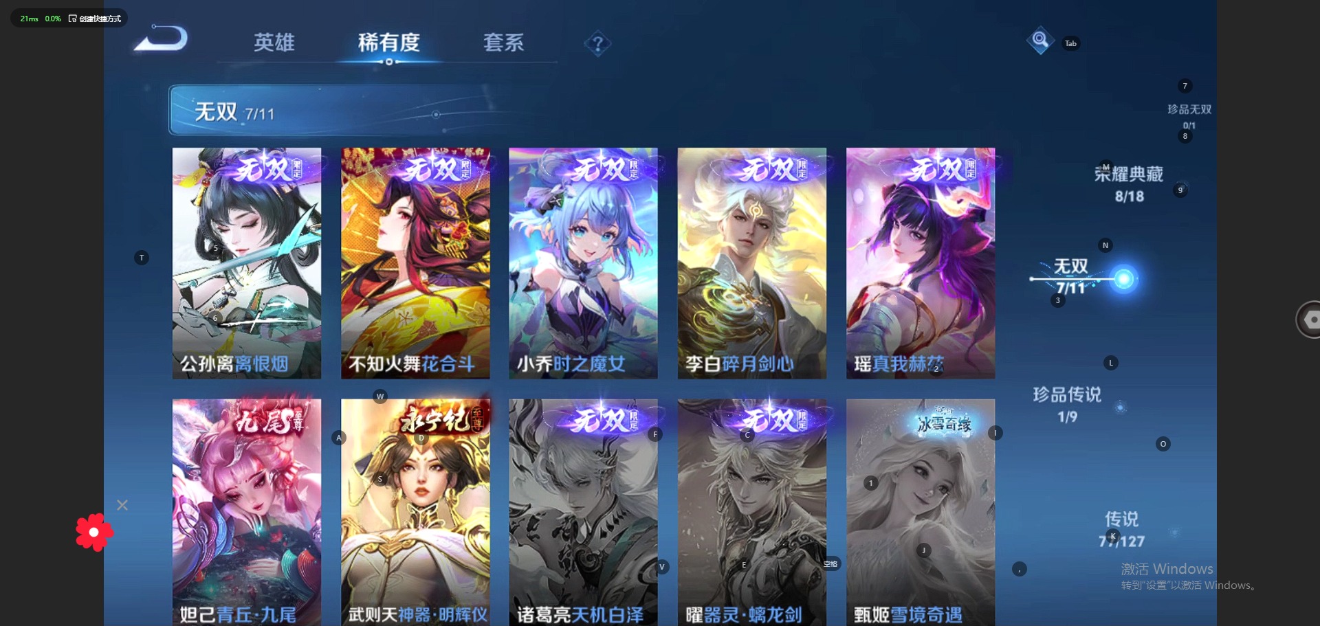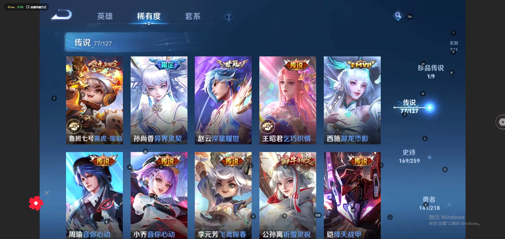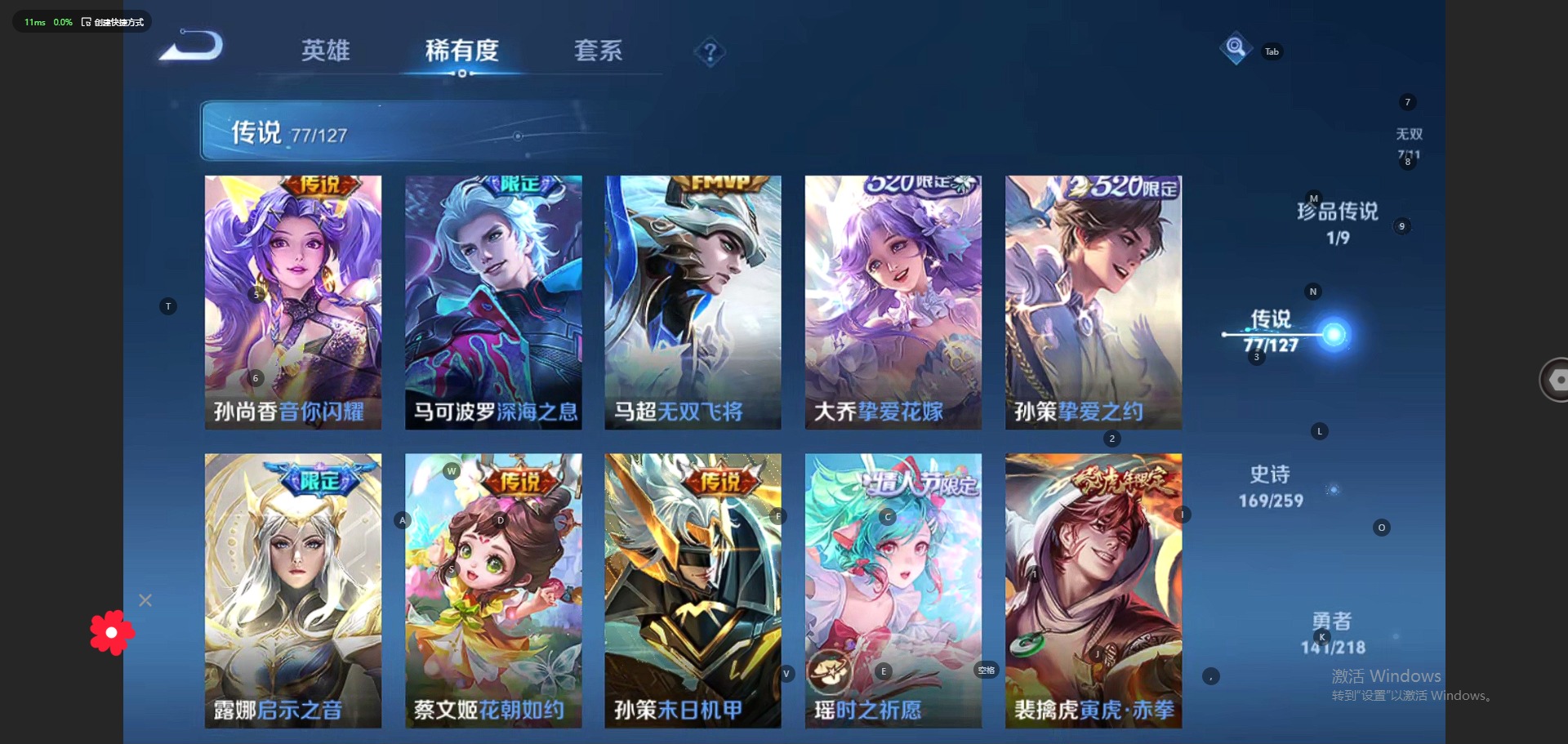 - [11687579]V7 3传说 124英雄 309皮肤 可修改实名 优质装备:久胜战神,李逍遥 珍宝阁皮:妄想食味,优雅恋人,蔷薇恋人,女武神 限定皮:鸣野蒿,神威(电光马子),遇见飞天,高山流水,五谷丰年,冰锋战神,游园惊梦,梁祝,御风骁将(吕布年限),天狼狩猎者,逐梦之星,李小龙,霸王别姬-虞姬,猪悟能,青春决赛季,匿光追影者 史诗皮:石田雨龙,紫霞仙子,黄金分割率,特工魅影,千年之狐,永昼,江河有灵,魅语,蒙恬荣光圣徽,偶像歌手,晚萤,电玩·爆裂旋风,龙骑士(小龙虾),末日机甲-吕布,猫狗日记-孙策,猫狗日记-大乔,乱世虎臣,节奏热浪,修罗,女仆咖啡,摇滚巨星,水果甜心,绅士熊喵,天才门将,星夜王子,心灵骇客,功夫厨神,德古拉伯爵,暗隐猎兽者,幽灵船长,鬼剑武藏,心灵战警,舞动绿茵,地狱岩魂,诗语江南,纤云弄巧,繁星吟游(呼啦呼啦),拒霜思,缤纷独角兽,乘风破浪,逐浪之夏,水晶猎龙者,曙光守护者,箭羽风息,金属风暴,原初追逐者,圣诞狂欢,圣诞恋歌,鹰眼统帅,王者之锤,暗夜贵公子,魅力维加斯,黎明之约,未来纪元-赵云