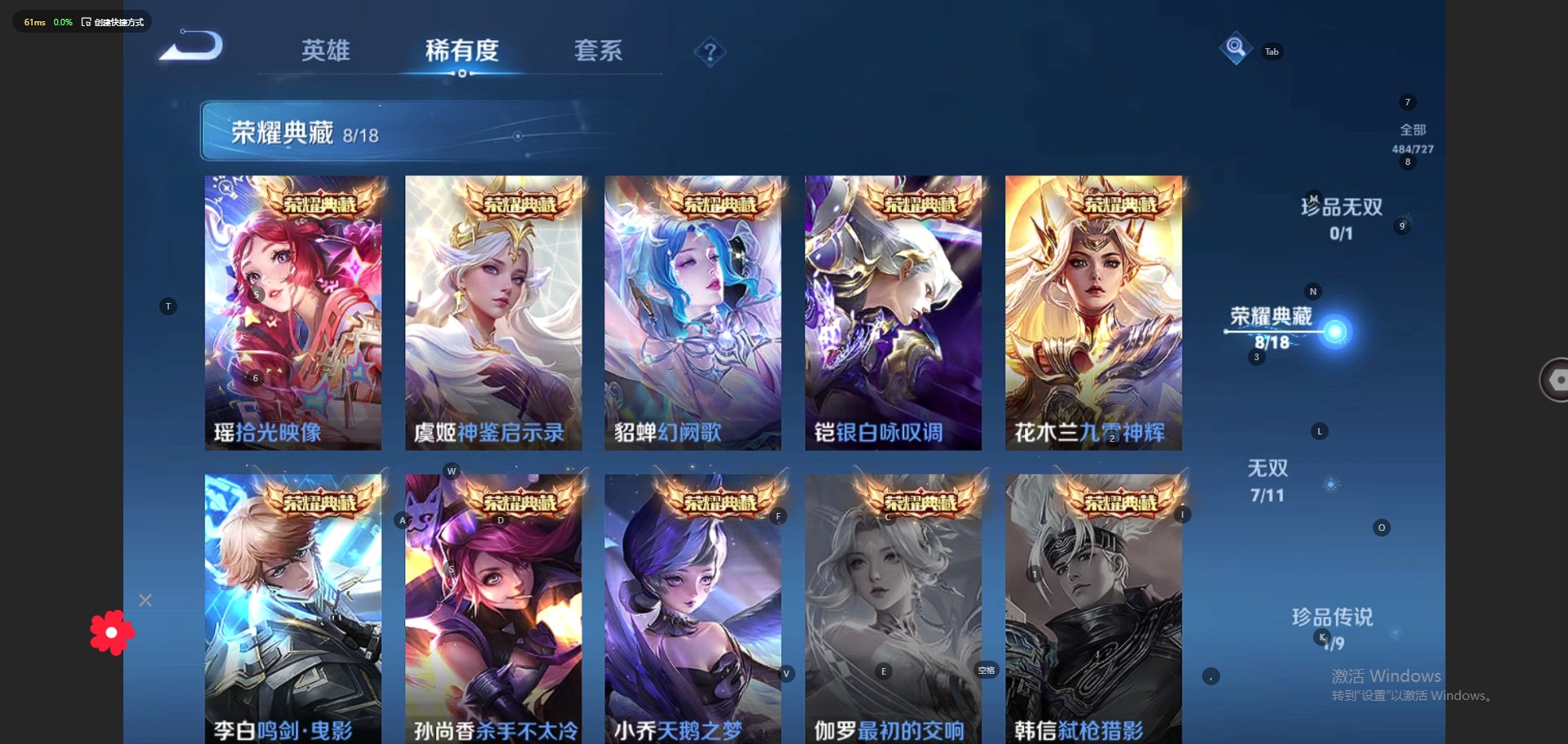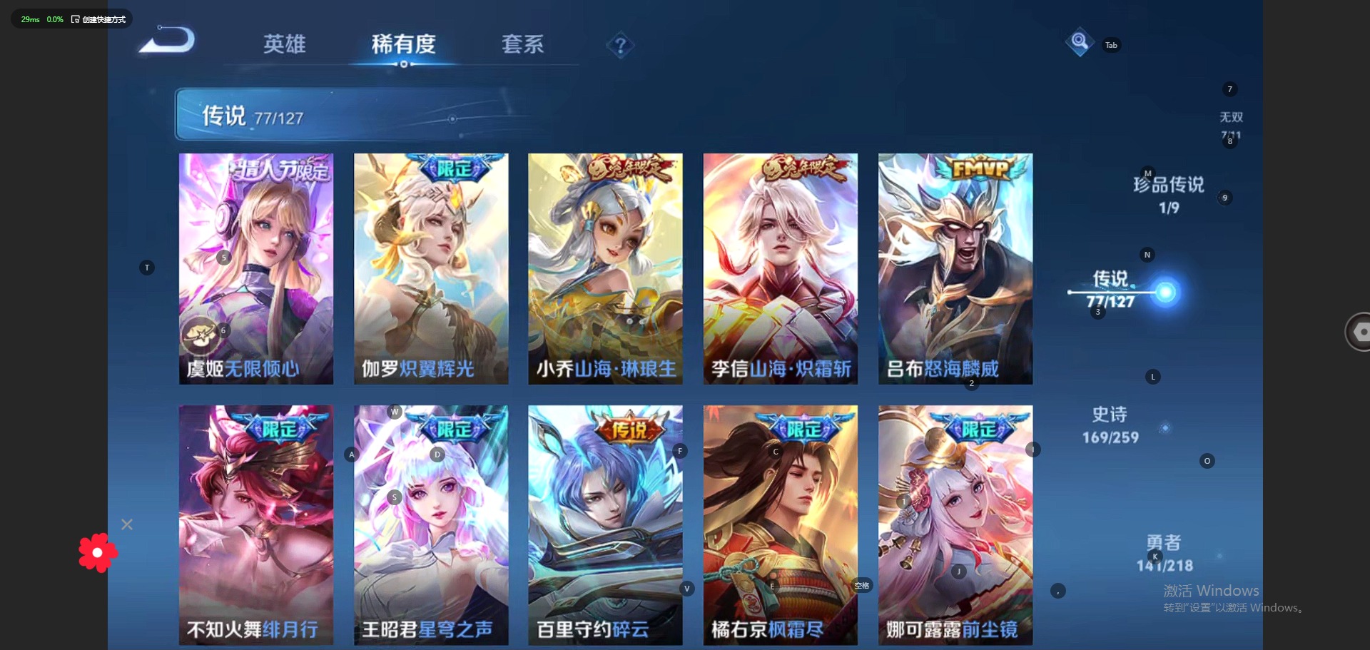 - PX_1896316-安卓Q 【可二次】 英雄数量:120 皮肤数量:246 贵族等级:贵族V8 极品女号!!!无双限定1 荣耀典藏1 传说品质37 史诗品质67真我赫兹瑶 幻阙歌 山海琳琅生 愿照·千秋盛 愿照·福禄聚 愿照·岁时盈 朵莉亚心动手记 续相思 时之祈愿女 乞巧织情 挚爱花嫁 仲夏夜之梦 游龙清影 音你心动女 音你闪耀 花朝如约 记忆之芯 曦玄引女 金乌负日 零号赤焰 愿照·山河定