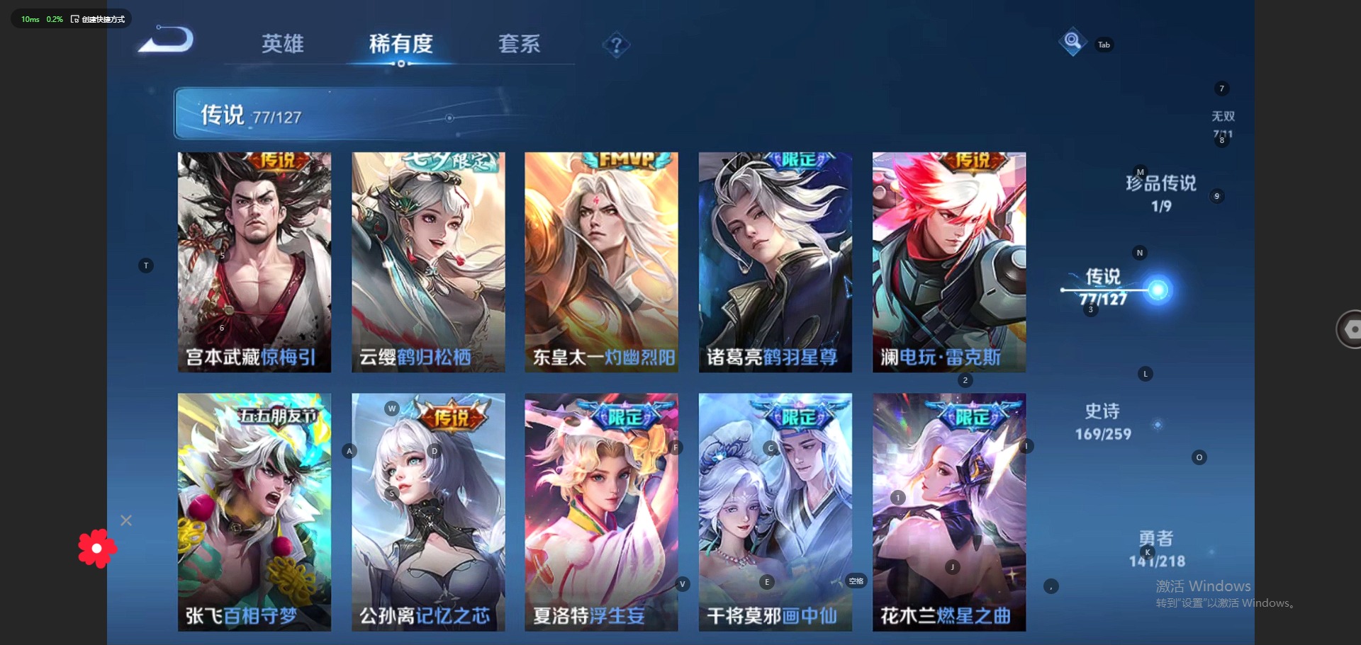 - [12026497]V10 4典藏 2无双 48传说 125英雄 414皮肤 可修改实名 优质装备:鸣剑·曳影,幻阙歌(貂蝉典藏),弑枪猎影(韩信典藏),青丘·九尾(妲己无双),碎月剑心(李白无双),神鉴启示录,黄金射手座,云鹰飞将(小将军),绛天战甲(鸡嘴战神),久胜战神,炽阳神光,一念神魔,云霓雀翎,末日机甲-孙尚香(绿蚂蚱),地狱火,仲夏夜之梦(大飞蛾),地狱之眼,飞鸢探春,李逍遥,淬星耀世,超时空战士-狄仁杰,末日机甲-孙策,花朝如约(花篮子),无双飞将,音你闪耀(rap皮),碎云,山海·炽霜斩(李信年限),山海·苍雷引(电光曜子),炽翼辉光(娃娃菜牛角包),记忆之芯(机甲兔),青丘·九尾,电玩·雷克斯,惊梅引,小动物乐团,霜月吟,澜逐花归海,艾琳觅芳踪,琥珀纪元铠,琥珀纪元马超,金乌负日 传说皮:乘龙·问璇玑(孙尚香年限),乘龙·铭钟鼎(赵云年限),乘龙·淬吴钩(孙策年限),貂蝉曦玄引,吕布曦玄引,典韦战鼓燎原,落雪白狼 珍宝阁皮:优雅恋人,女武神 限定皮:至尊宝,白虎志(电光耗子),凤求凰(白切鸡),凤凰于飞,武陵仙君(小桃花),傲雪梅枪,飞衡(韩信年限),遇见飞天,高山流水,诗剑行,齐天大圣,怒海麟威,五谷丰年,青龙志(铠年限),游园惊梦,梁祝,天狼狩猎者,烈魂,岱宗(典韦年限),李小龙,逐梦之影,永曜之星,辉光之辰,如梦令-后羿,真爱至上,纯白花嫁,孙行者,猪悟能,一生所爱,大圣娶亲,引擎之心,冰霜恋舞曲,神奇女侠,美猴王,寅虎·御盾(廉颇年限),山海·玄木吟(马可年限) 史诗皮:灵蛊蚀心,龙之律动,石田雨龙,蔬乡物语(鲁班七号),曹操夜都魔契,超元猎域,乘龙·聚宝船(安琪拉年限),乘龙·忆丹青(大乔年限),琥珀纪元伽罗,百相守梦-黄忠,遇见神鹿,紫霞仙子,苍穹之光,电玩小子(小书包),白龙吟,黄金分割率,特工魅影,千年之狐,永昼,电玩·兔顽号,电玩·爆裂旋风,浮梦罗烟,真我赫兹(百里守约),末日机甲-莱西奥,江河有灵,雪夜绮愿(周瑜),百解令(蒙犽),高渐离燃音魔法,偶像歌手,龙骑士(小龙虾),暗夜猫娘,魅语,无限星赏官,晚萤,冰冠公主,青蛇,末日机甲-吕布,猫狗日记-孙策,猫狗日记-大乔,时之恋人-孙尚香,乱世虎臣,节奏热浪,修罗,女仆咖啡,摇滚巨星,水果甜心,绅士熊喵,天才门将,星夜王子,功夫厨神,德古拉伯爵,暗隐猎兽者,幽灵船长,鬼剑武藏,暗渊魔法,心灵战警