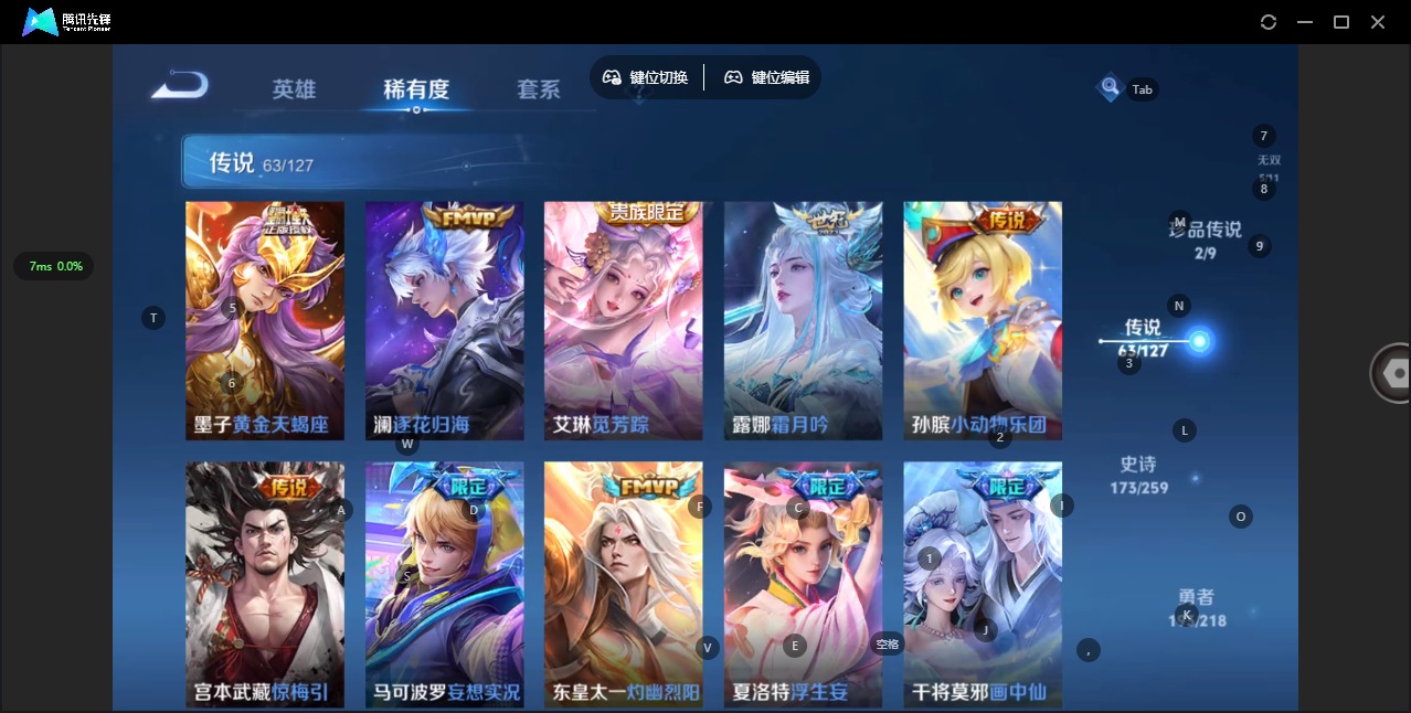 - [12138650]V7 1典藏 3传说 123英雄 213皮肤 可修改实名 优质装备:无限飓风号(高达),黄金白羊座,猫影幻舞,地狱之眼 珍宝阁皮:优雅恋人,蔷薇恋人 限定皮:时之彼端,遇见飞天,高山流水,青龙志(铠年限),游园惊梦,梁祝,引擎之心 史诗皮:偶像歌手,暗夜猫娘,末日机甲-吕布,猫狗日记-大乔,节奏热浪,女仆咖啡,摇滚巨星,水果甜心,绅士熊喵,天才门将,心灵骇客,时之奇旅-安琪拉,德古拉伯爵,鬼剑武藏,心灵战警,舞动绿茵,纤云弄巧,繁星吟游(呼啦呼啦),缤纷独角兽,乘风破浪,逐浪之夏,水晶猎龙者,金属风暴,原初追逐者,圣诞狂欢,圣诞恋歌,鹰眼统帅,魅力维加斯,未来纪元-赵云