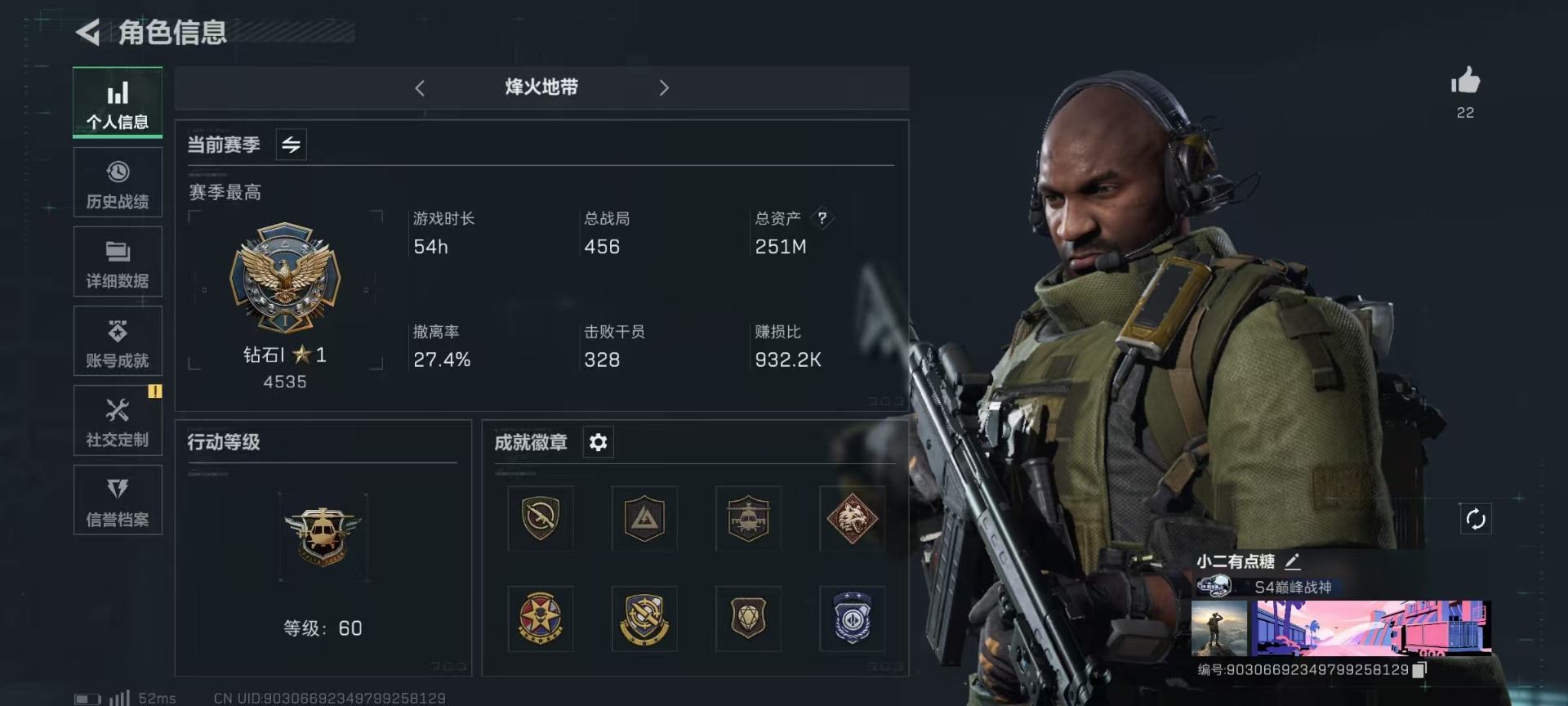 [11687326]总资产:251.1M 2传说枪械 哈夫币:66.811K 可二次 可修改实名 烽火地带段位:钻石 全面战场段位:列兵 传说武器皮肤:勇士冲锋枪-能天使-午夜邮差,Vector冲锋枪-能天使-午夜邮差 史诗武器皮肤:SVD狙击步枪-暗夜猎手,勇士冲锋枪-深海恐惧,AKM突击步枪-林中猎手,M1014霰弹枪-林中猎手,SV-98狙击步枪-林中猎手,PTR-32突击步枪-英雄,M250通用机枪-囚徒,SCAR-H战斗步枪-囚徒,M700狙击步枪-竞技风