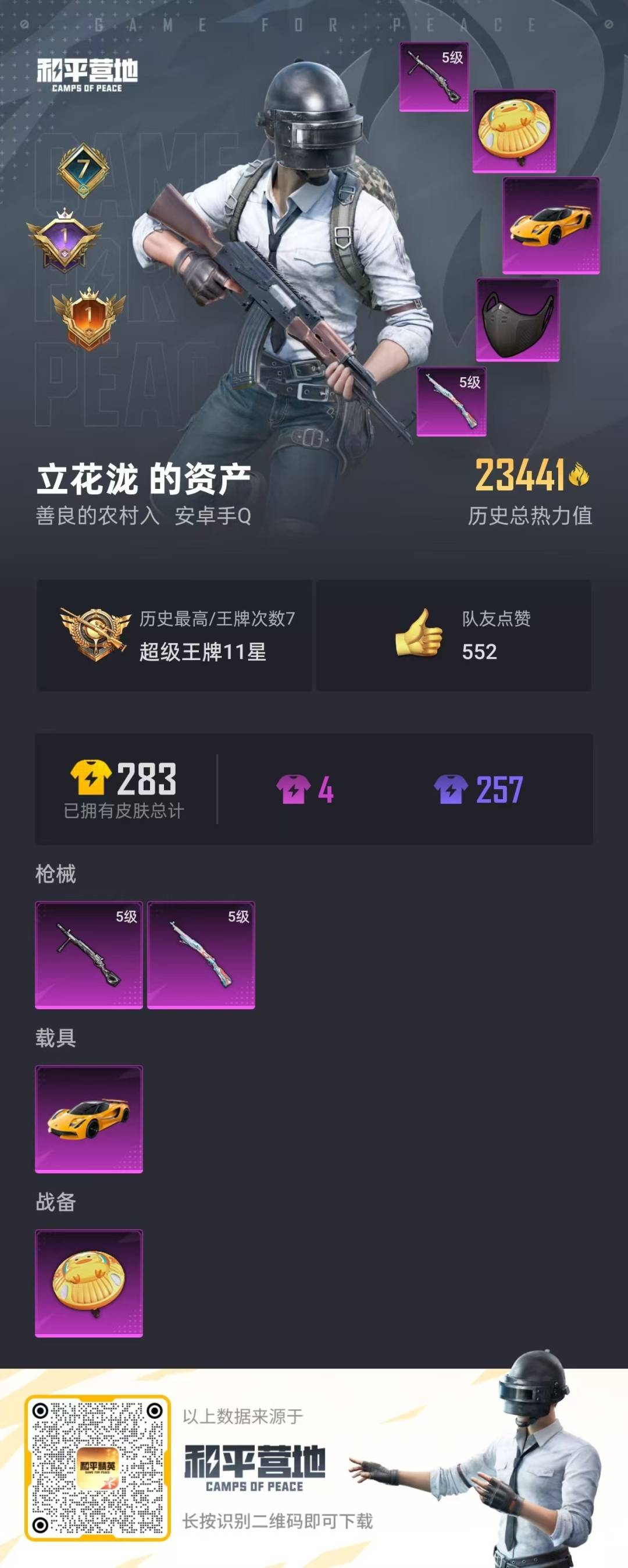 [11687403]2特效枪 1载具 7印记 可二次 可修改实名 优质装备:路特斯EVIJA(星际黄),Kar98K-巳巳如意 稀有枪皮:DP-28-豹影疾电 五级特效枪:五级Kar98K-巳巳如意,五级DP-28-豹影疾电 紫色装扮:SS22特训,SS23特训,娇憨猪猪,萌趣咩咩,SS21特训,人气偶像,冰川特警,冷焰舞者,旭日情侣,SS33特训套装,顶瓜瓜,SS20特训,飞驰魅影,音速流光,SS19特训,都市魅力,酒红色名流,长空猛禽,雪鹰学院,霓虹街区,青年教官,缤纷果语,蓝彩潮人,蓝色运动,街头潮人,无面战甲,飞行日记,魅力单车,鹤鸣,麻辣教官,黄色伏地魔,黄色名流,黄色运动,黑色伏地魔,龟仙人,极速红龙,橘黑制服,暗金炫舞,海岛探路者,深蓝色名流,幻影武者,完美偶像,帅气教官,幻世战舞者,战地督导,探宝勇士,湖蓝色名流,绮丽涂鸦,白色伏地魔,破晓战魂,破蛋小黄鸡,甜蜜告白,空岛之星,竞技达人朋克,红色运动,牛气冲天,灰色格斗者,灼焰舞者,牛气满满,猛禽,特殊使命,特训学院,狂沙舞者,猎鹰,SS29特训,米开朗基罗,SS28特训,异域银装,玉兔迎春,巳巳如意,竞技名士,SS24特训(SS24特训套装),SS25特训,粉红小猪,SS27特训,SS26特训,智谋强哥,精神漫游,风华少年志,耀粉歌者,青玉碎影,绯格组合,白糯汤圆,恋语绒绒,光之冒险 优质战备:垂柳戏鸭降落伞