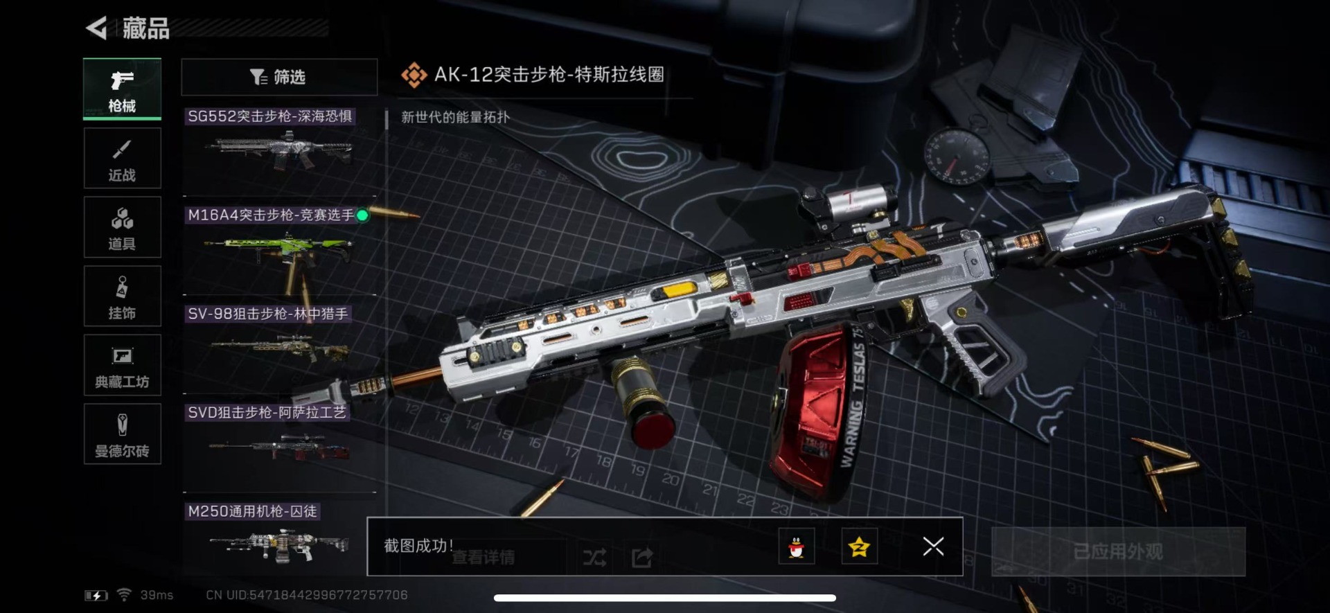 [11687673]总资产:118.7M 5传说枪械 哈夫币:48.601K 进阶安全箱(2×2)9.15号到期 可二次 可修改实名 烽火地带段位:钻石 全面战场段位:无段位 传说武器皮肤:AK-12突击步枪-特斯拉线圈,SR-3M紧凑突击步枪-特斯拉线圈,UZI冲锋枪-特斯拉线圈,勇士冲锋枪-能天使-午夜邮差,复合弓-黑-天际线 史诗武器皮肤:M16A4突击步枪-竞赛选手,SG552突击步枪-深海恐惧,SV-98狙击步枪-林中猎手,M250通用机枪-囚徒,SVD狙击步枪-阿萨拉工艺