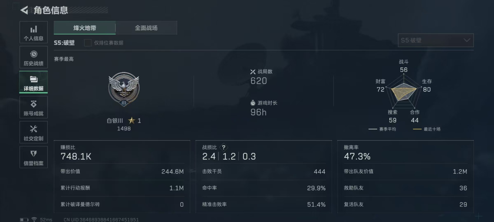 [11687706]总资产:86.3M 1干员外观 6传说枪械 哈夫币:21.110K 顶级安全箱(3×3)9.15号到期 可二次 可修改实名 优质装备:顶级安全箱(3x3) 烽火地带段位:白银 全面战场段位:无段位 传说武器皮肤:M4A1突击步枪-阿米娅,复合弓-黑-天际线,AK-12突击步枪-特斯拉线圈,SR-3M紧凑突击步枪-特斯拉线圈,UZI冲锋枪-特斯拉线圈,勇士冲锋枪-能天使-午夜邮差 史诗武器皮肤:SV-98狙击步枪-林中猎手,SV-98狙击步枪-囚徒,沙漠之鹰-曙光 干员外观:露娜-黑·天际线