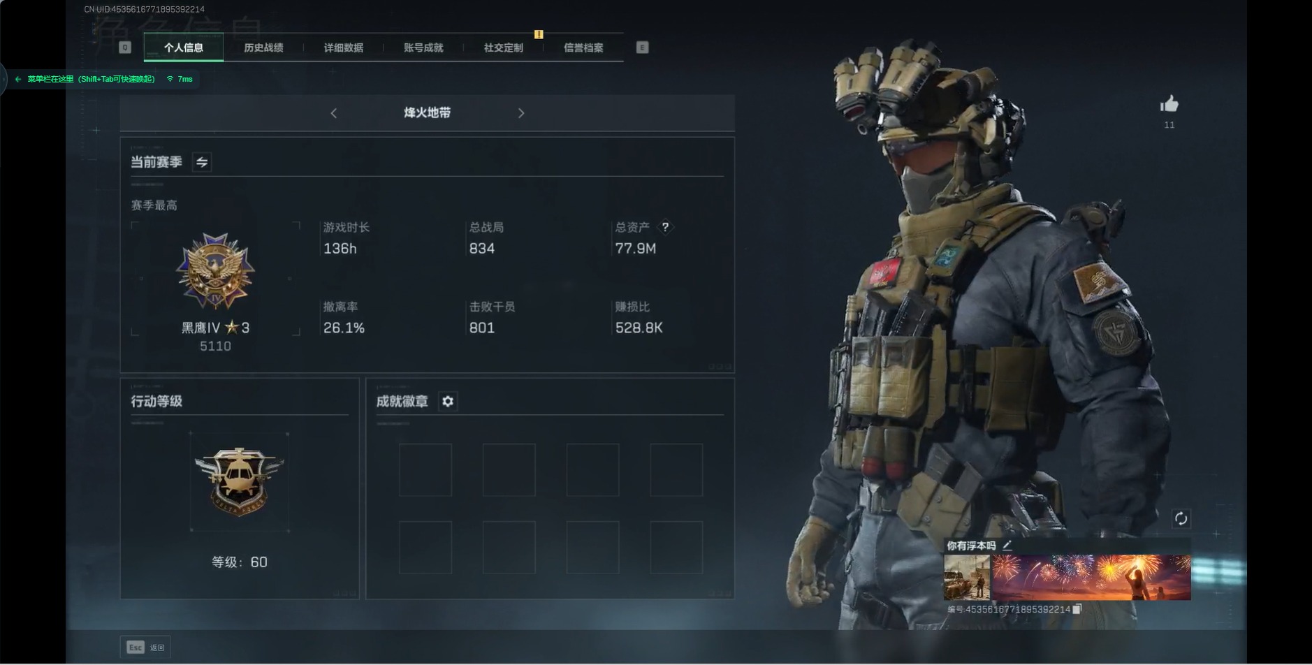 [11687739]总资产:77.9M 1干员外观 12传说枪械 哈夫币:262.281K 可二次 可修改实名 烽火地带段位:黑鹰 全面战场段位:军士长 传说武器皮肤:SR-25射手步枪-水墨云图,SMG45冲锋枪-骑士,UZI冲锋枪-特斯拉线圈,AWM狙击步枪-捞点薯条,腾龙突击步枪-捞点薯条,93R-捞点薯条,AK-12突击步枪-特斯拉线圈,SR-3M紧凑突击步枪-特斯拉线圈,勇士冲锋枪-能天使-午夜邮差,复合弓-黑-天际线,M4A1突击步枪-阿米娅,CAR-15突击步枪-阿米娅 史诗武器皮肤:SR-3M紧凑突击步枪-英雄,M1014霰弹枪-林中猎手,勇士冲锋枪-深海恐惧,AKM突击步枪-林中猎手,M16A4突击步枪-竞赛选手,SV-98狙击步枪-林中猎手,SV-98狙击步枪-囚徒,SCAR-H战斗步枪-囚徒,QBZ95-1突击步枪-曙光,QSZ92G-风林火山 干员外观:露娜-黑·天际线