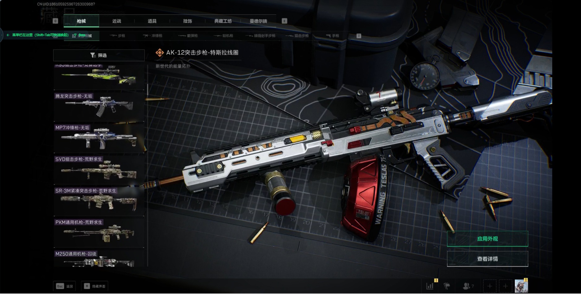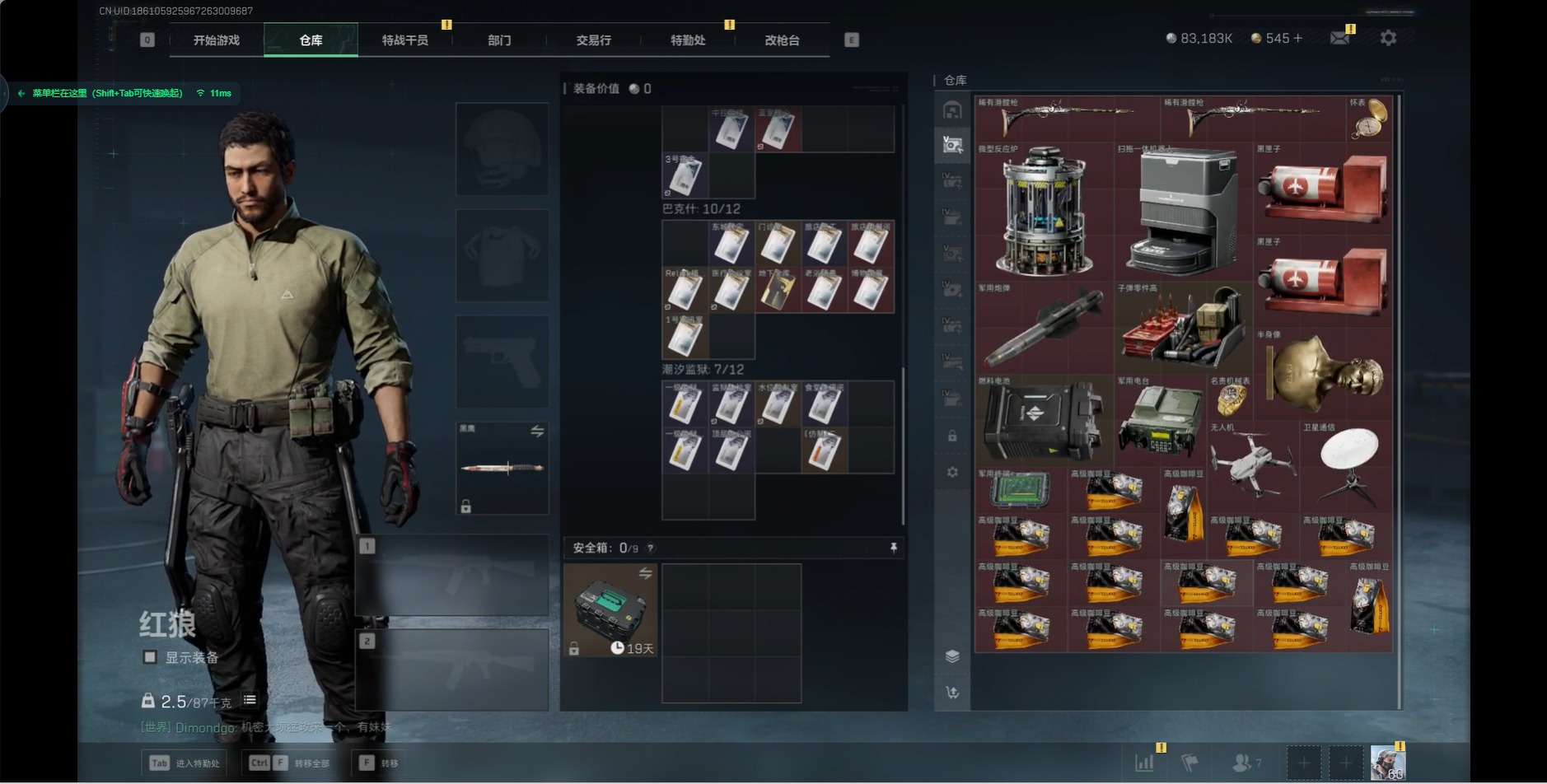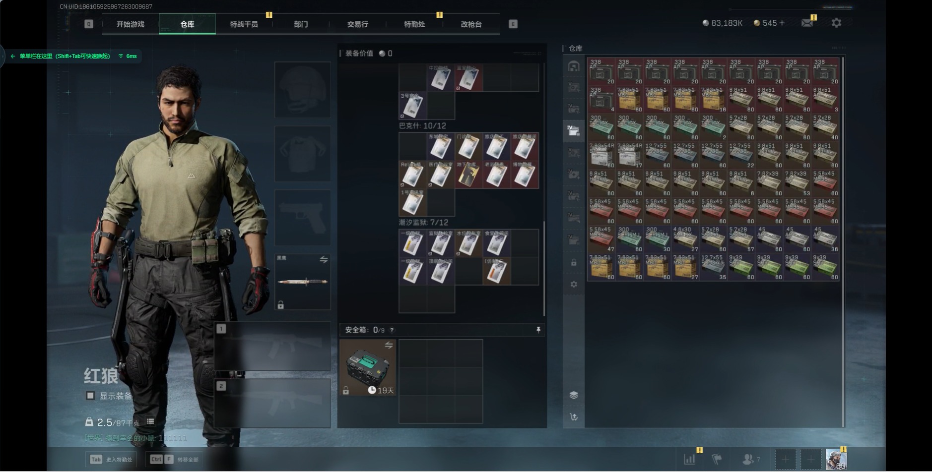 - [12291305]总资产:327.6M 1干员外观 12传说枪械 哈夫币:9.416K 高级安全箱(9.17到期) 可二次 可修改实名 烽火地带段位:铂金 全面战场段位:上等兵 传说武器皮肤:SCAR-H战斗步枪-水墨云图,AK-12突击步枪-夜鹰,SMG45冲锋枪-骑士,CAR-15突击步枪-阿米娅,复合弓-黑-天际线,AK-12突击步枪-特斯拉线圈,SR-3M紧凑突击步枪-特斯拉线圈,UZI冲锋枪-特斯拉线圈,勇士冲锋枪-能天使-午夜邮差,725双管霰弹枪-送葬人-无题密令,M7战斗步枪-神秘艺术,CAR-15突击步枪-黑鹰坠落 史诗武器皮肤:AUG突击步枪-蝮蛇,Ash-12战斗步枪-守夜人,SVD狙击步枪-暗夜猎手,M16A4突击步枪-竞赛选手,PKM通用机枪-守夜人,AS Val突击步枪-尖端治疗,M700狙击步枪-守夜人,SG552突击步枪-尖端治疗,SR-25射手步枪-尖端治疗,PKM通用机枪-荒野求生,MP5冲锋枪-深海恐惧,AKM突击步枪-林中猎手,SR-3M紧凑突击步枪-荒野求生,M1014霰弹枪-林中猎手,SV-98狙击步枪-林中猎手,SVD狙击步枪-荒野求生,AS Val突击步枪-典狱官,M250通用机枪-囚徒,SV-98狙击步枪-囚徒,SCAR-H战斗步枪-囚徒,腾龙突击步枪-无垢,MP7冲锋枪-无垢,PSG-1射手步枪-无垢,M14射手步枪-黑鹰坠落,QBZ95-1突击步枪-曙光,沙漠之鹰-曙光,SVD狙击步枪-阿萨拉工艺,S12K霰弹枪-曙光,PKM通用机枪-英雄,M700狙击步枪-竞技风,AUG突击步枪-战术迷彩 干员外观:露娜-黑·天际线