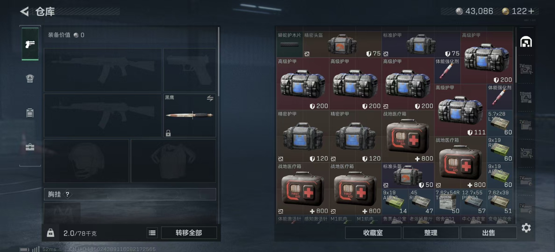 [11687901]总资产:171.6M 12传说枪械 哈夫币:43.086K 高级安全箱(2×3)9.15号到期 可二次 可修改实名 烽火地带段位:钻石 全面战场段位:列兵 传说武器皮肤:M4A1突击步枪-阿米娅,CAR-15突击步枪-阿米娅,复合弓-黑-天际线,AWM狙击步枪-捞点薯条,腾龙突击步枪-捞点薯条,93R-捞点薯条,AK-12突击步枪-特斯拉线圈,SR-3M紧凑突击步枪-特斯拉线圈,UZI冲锋枪-特斯拉线圈,勇士冲锋枪-能天使-午夜邮差,725双管霰弹枪-送葬人-无题密令,Vector冲锋枪-能天使-午夜邮差 史诗武器皮肤:PKM通用机枪-蝮蛇,PKM通用机枪-荒野求生,SR-3M紧凑突击步枪-荒野求生,SV-98狙击步枪-林中猎手,AS Val突击步枪-典狱官,M250通用机枪-囚徒,PSG-1射手步枪-无垢