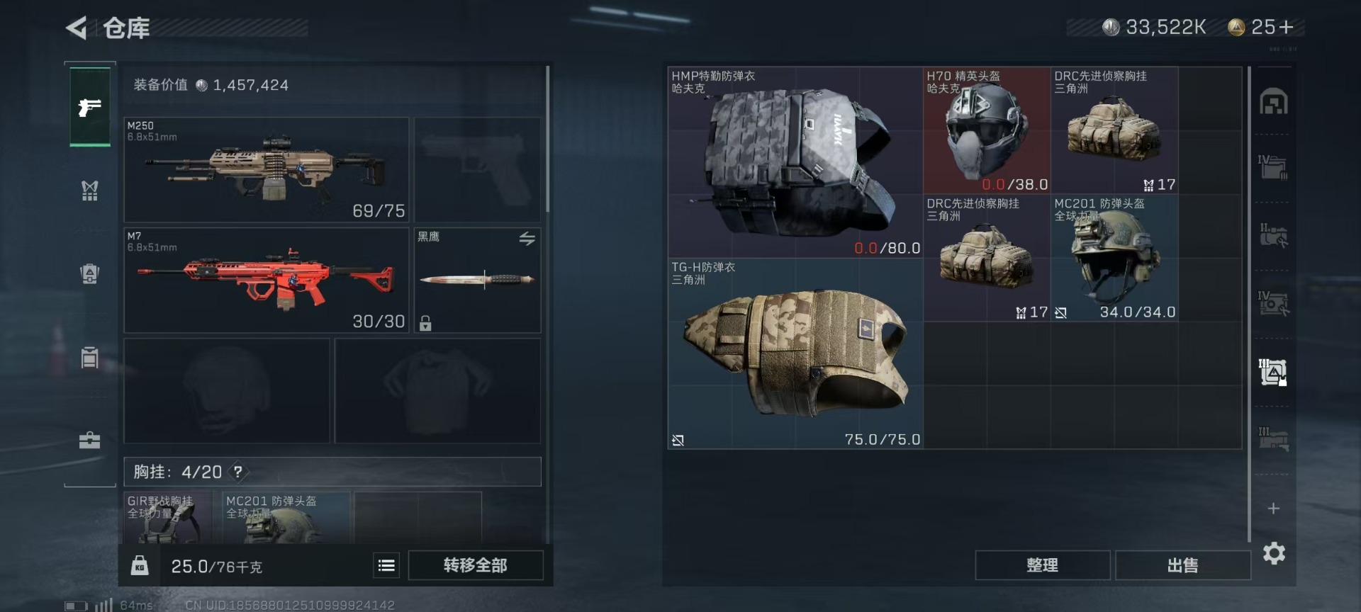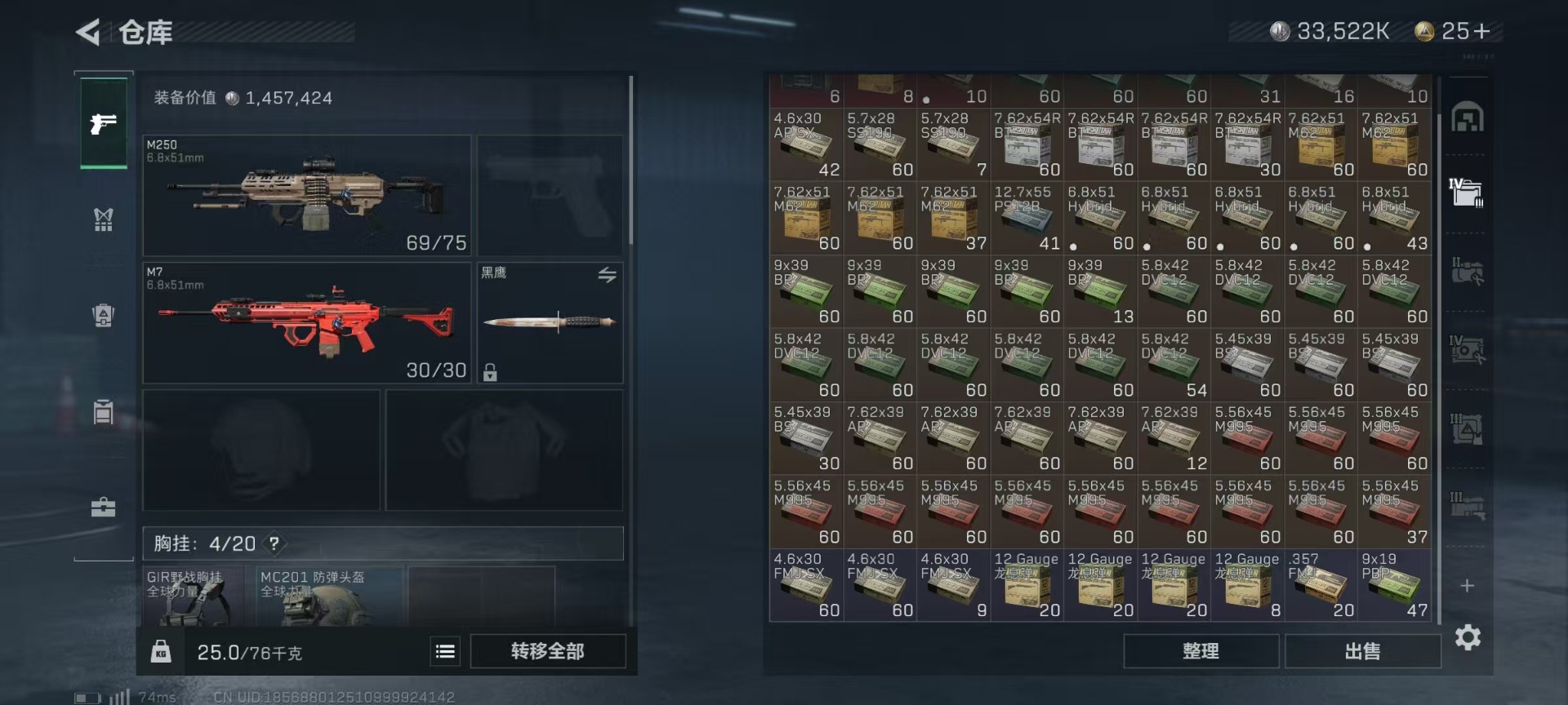 - [11616796]总资产110M,哈夫币3891w,枪皮数量91,战场等级:50 将军,行动等级:60铂金,近战-黑鹰,安全箱等时效性道具请以游戏内数据为准-S62