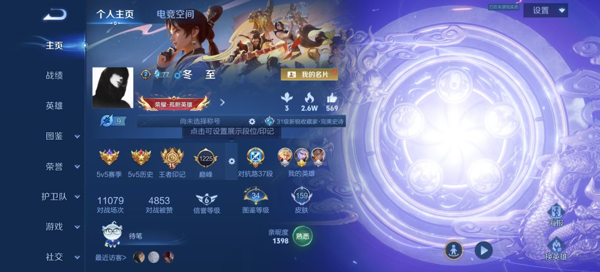 - [11526777]V6 1典藏 8传说 125英雄 211皮肤 可修改实名 优质装备:鸣剑·曳影,黄金射手座,冠军飞将,炽阳神光,仲夏夜之梦(大飞蛾),乞巧织情,游龙清影(小青龙) 珍宝阁皮:优雅恋人,蔷薇恋人 限定皮:愿照·九州拓(澜年限),逐霄战戟,鸣野蒿,至尊宝,五谷丰年,青龙志(铠年限),梁祝,李小龙 史诗皮:器灵·浮梦炉,化蝶舞,星界战将,谪仙醉月,石田雨龙,百相守梦-周瑜,茶境仙,破空之剑,蔬乡物语(鲁班七号),百相守梦-百里守约,星界特工,百相守梦-黄忠,紫霞仙子,电玩小子(小书包),特工魅影,千年之狐,高渐离燃音魔法,无限星赏官,青蛇,偶像歌手,节奏热浪,水果甜心,绅士熊喵,功夫厨神,鬼剑武藏,心灵战警,纤云弄巧,缤纷独角兽,乘风破浪,水晶猎龙者,圣诞狂欢,圣诞恋歌,鹰眼统帅,黎明之约,无心