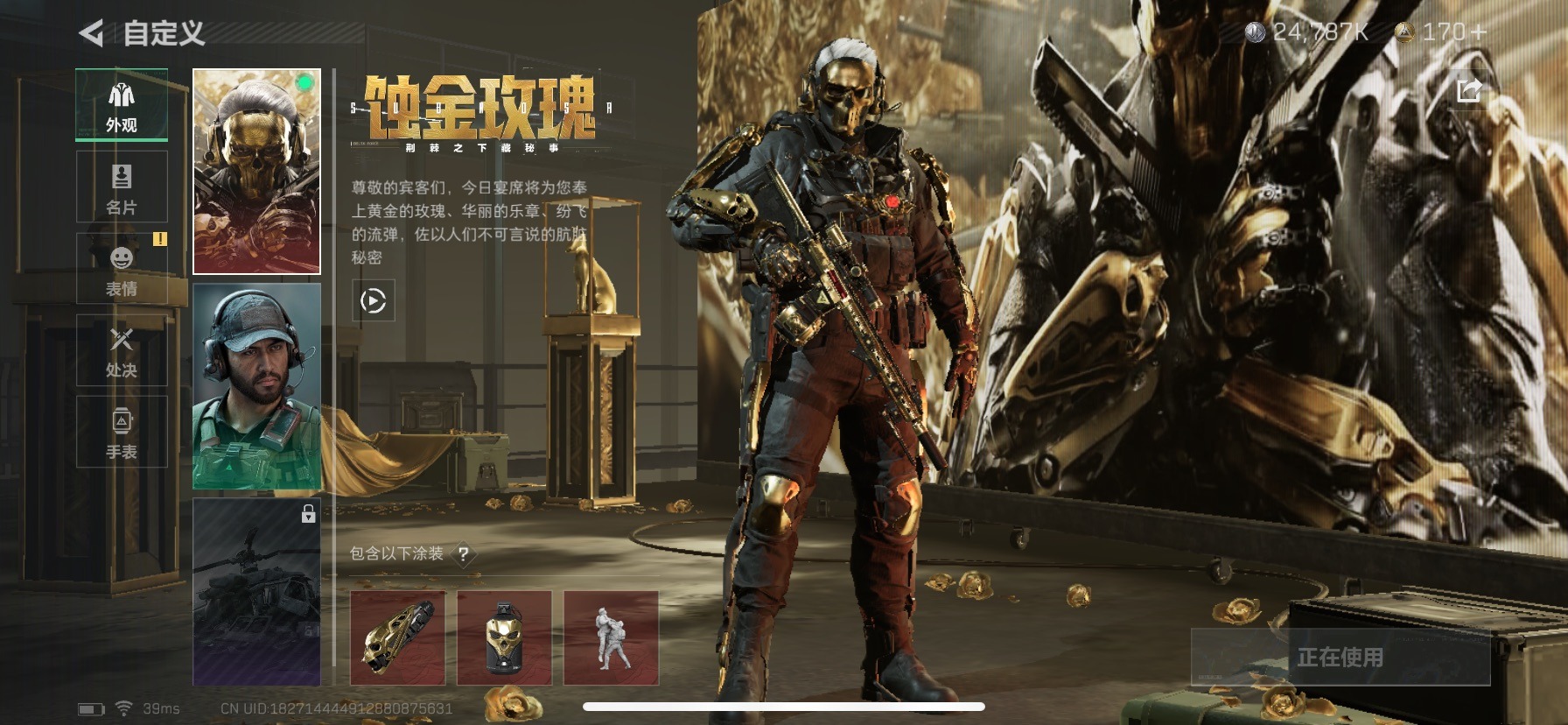 - [11274352]总资产:60.9M 8传说枪械 哈夫币:12.064K 可二次 可修改实名 烽火地带段位:钻石 全面战场段位:军士长 传说武器皮肤:SMG45冲锋枪-骑士,M4A1突击步枪-阿米娅,CAR-15突击步枪-阿米娅,AK-12突击步枪-特斯拉线圈,SR-3M紧凑突击步枪-特斯拉线圈,UZI冲锋枪-特斯拉线圈,勇士冲锋枪-能天使-午夜邮差,Vector冲锋枪-能天使-午夜邮差 史诗武器皮肤:SVD狙击步枪-暗夜猎手,M16A4突击步枪-竞赛选手,AKM突击步枪-林中猎手,M1014霰弹枪-林中猎手,SV-98狙击步枪-林中猎手,SV-98狙击步枪-囚徒,QBZ95-1突击步枪-曙光,S12K霰弹枪-曙光