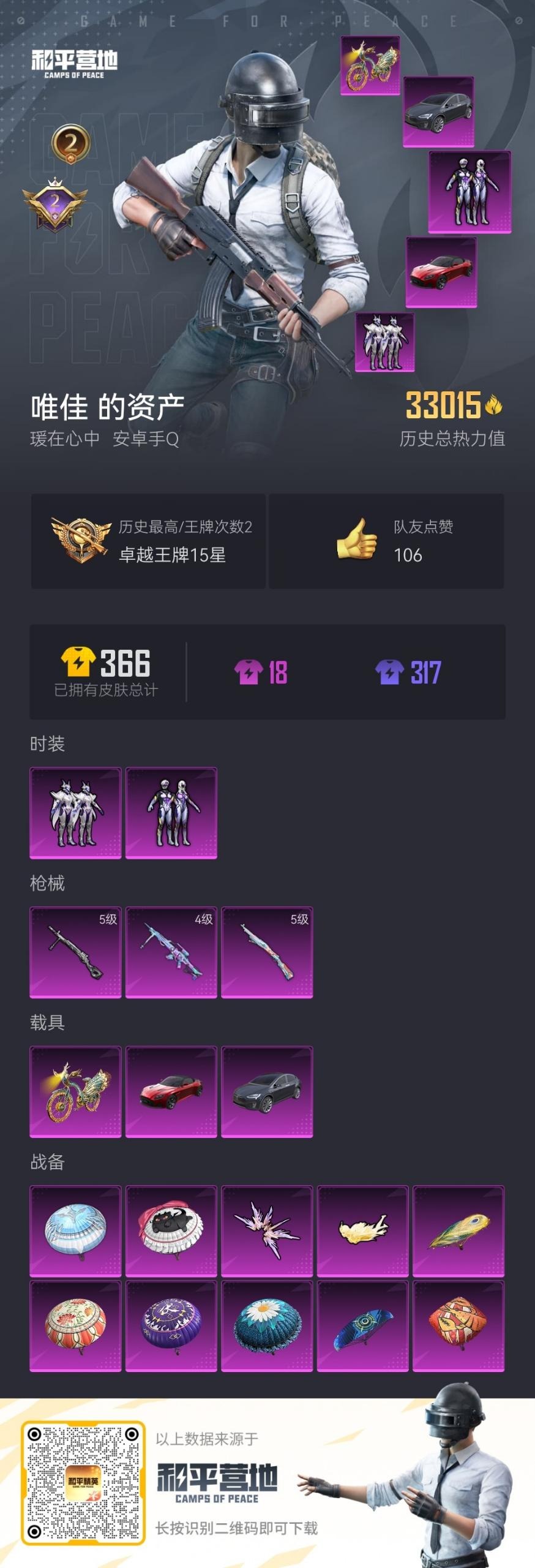 - PX_2097152- 安卓手Q-7王牌印记-7粉装-4特效枪-0载具-65417热力值-155套装-211枪皮-0卓越印记-0传奇印记 【7粉装】,梦幻火箭,天使彩虹糖,深渊皇后,筑梦精灵,寒光使者,暗夜鎏金,蜜桃特工 【4特效枪】SCAR-L-甜梦小狐-6级 SCAR-L-青春物语-1级 M416-至情至圣-9级 Kar98K-巳巳如意-5级 【5稀有紫装】,萌熊伴侣背包(3级),浪漫天命,