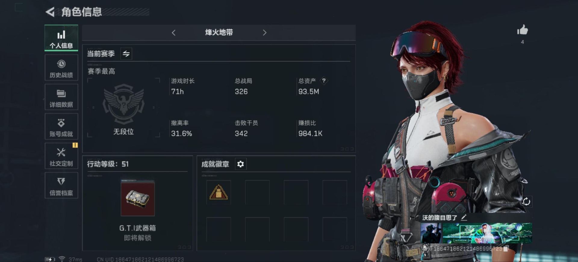 [11688157]总资产:93.5M 1干员外观 11传说枪械 哈夫币:51.920K 进阶安全箱(9.17到期) 可二次 可修改实名 烽火地带段位:无段位 全面战场段位:无段位 传说武器皮肤:M4A1突击步枪-阿米娅,CAR-15突击步枪-阿米娅,复合弓-黑-天际线,AWM狙击步枪-捞点薯条,腾龙突击步枪-捞点薯条,93R-捞点薯条,AK-12突击步枪-特斯拉线圈,SR-3M紧凑突击步枪-特斯拉线圈,UZI冲锋枪-特斯拉线圈,勇士冲锋枪-能天使-午夜邮差,Vector冲锋枪-能天使-午夜邮差 干员外观:蛊-能天使·午夜邮差