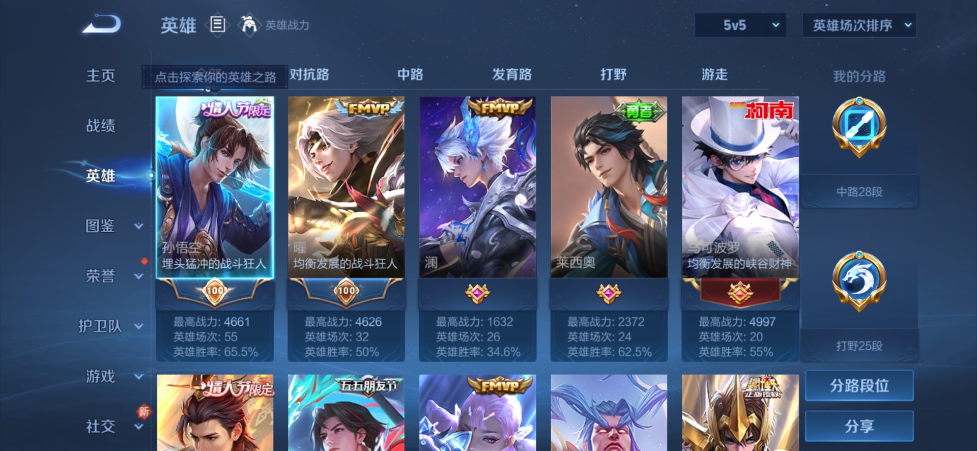 - [36997]英雄数: 86 皮肤数: 2 勇者皮肤数: 46 史诗皮肤数: 10 传说皮肤数: 1 稀有英雄: 艾琳,娜可露露,不知火舞,桑启,戈娅 当前段位: 星耀 限定皮肤: 高山流水,五谷丰年 内测皮肤: 女武神 史诗皮肤: 逐浪之夏,水果甜心,乘风破浪,水晶猎龙者 赛季/战令皮肤: 朔风刀,混沌棋,疑决卦,醍醐杖,原初探秘者,万华元夜,演武夺筹,驱傩正仪,千军破阵,星际陆战队(达摩),金庭之子,大漠名商,云中旅人,海盐诗旅 实名: 有人脸修改机会/实名是本人 普通皮肤: 五福同心,龙腾万里,归虚梦演(鲁班大师),归虚梦演(曜),掌控之力,守护之力,化身博士,缤纷绘卷,黄金武士,天使之翼,红桃皇后,星际陆战队(程咬金),阴阳师,汉昭烈帝,兔女郎,死亡骑士,救世之瞳,白色死神,野性能量,冰雪圆舞曲,露花倒影,花见巫女,未来旅行,龙域领主,蔷薇王座,万圣前夜,异域舞娘,潮流仙人,东海龙王,战争女神,精灵王,加勒比小姐,死神来了,赤焰之缨,启蛰,棒球奇才,海之征途,精准探案法,花间舞,绝影神枪,阿摩司公爵,特种部队,隐刃,木偶奇遇记,海军大将,一千零一夜,英喵野望,前尘,碧珀绯影