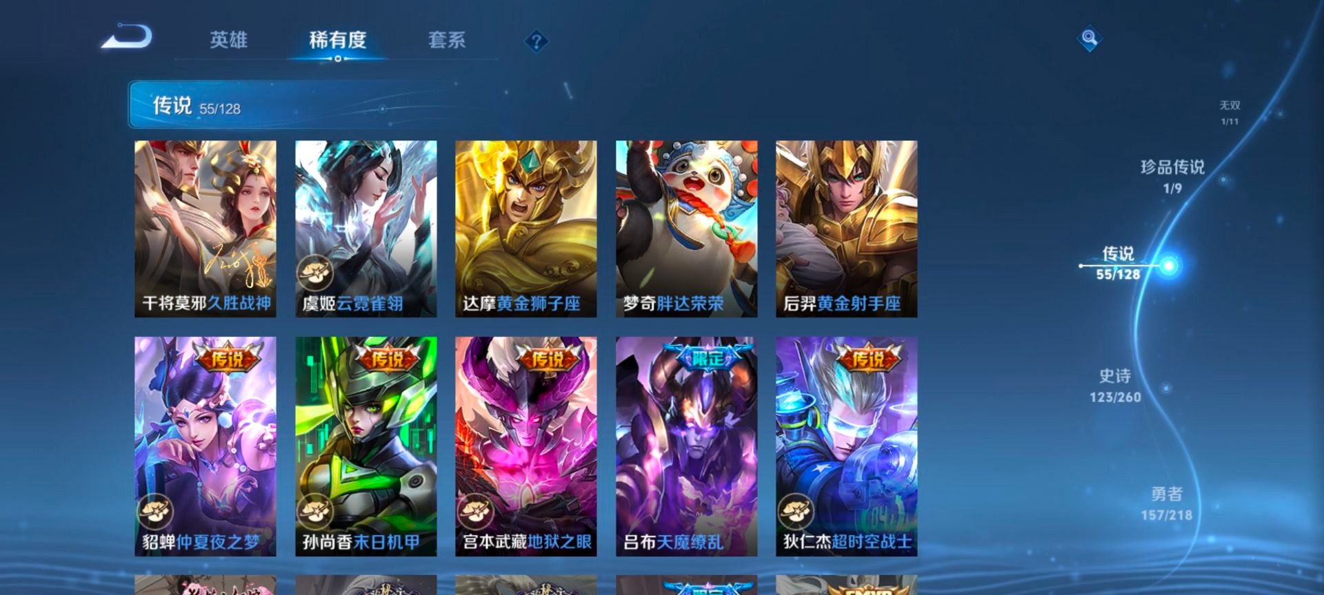 - PX_2089638-01 安卓QQ/永恒钻石/135皮肤/109英雄/1典藏/0珍品无双/0无双/0珍品传说/10传说/37史诗/6稀有英雄 【1 典藏皮肤】拾光映像 瑶, 【10 传说皮肤】逐花归海 澜,地狱火 孙悟空,落雪白狼 亚连,怒海麟威 吕布,黄金狮子座 达摩,乘龙·淬吴钩 孙策,末日机甲 孙策,一念神魔 李信,战鼓燎原 典韦,淬星耀世 赵云, 【37 史诗皮肤】蔬乡物语 鲁班七号,百
