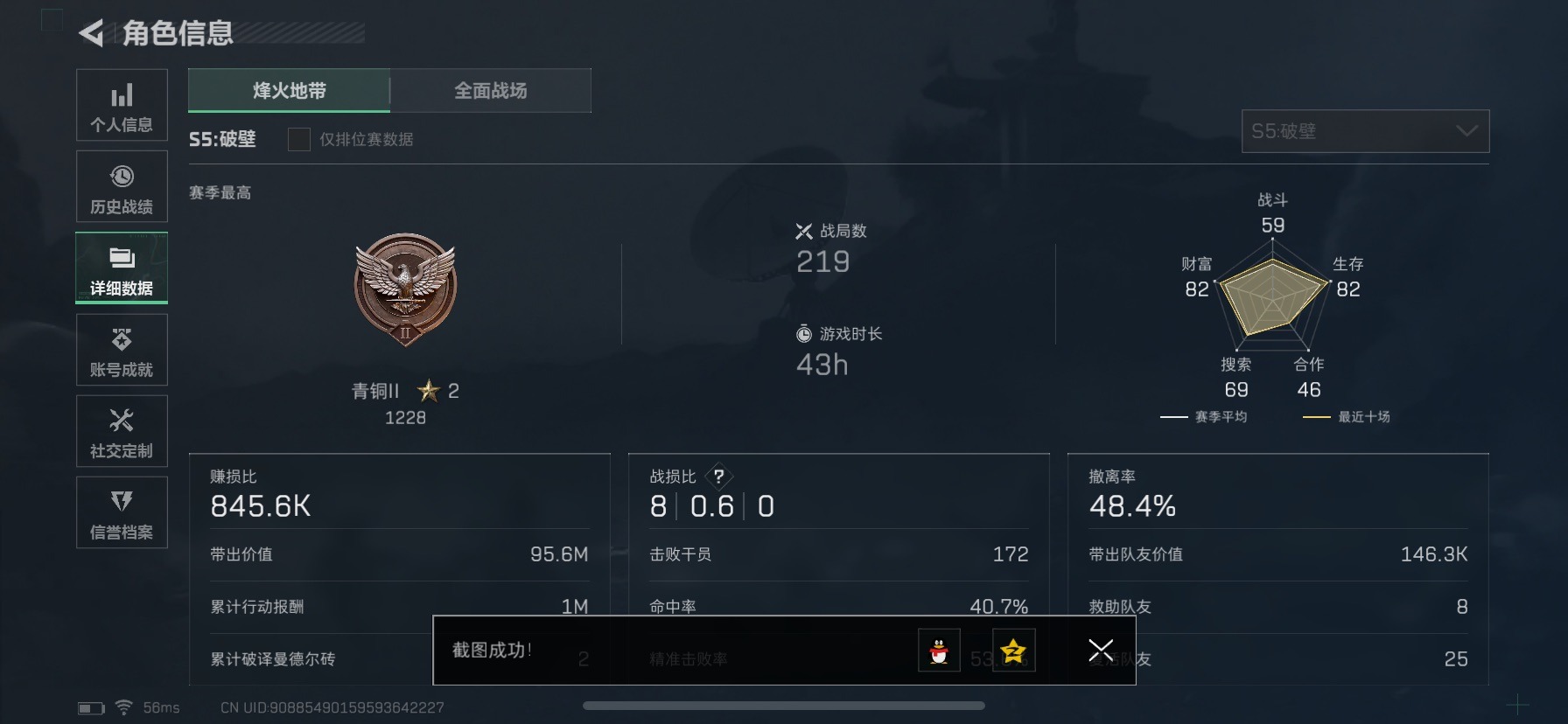 - [12199881]总资产:249.4M 2干员外观 15传说枪械 哈夫币:151K 可二次 可修改实名 烽火地带段位:钻石 全面战场段位:上等兵 传说武器皮肤:AS Val突击步枪-蛇年祥瑞,SR-25射手步枪-水墨云图,SCAR-H战斗步枪-铁艺苍穹,AK-12突击步枪-特斯拉线圈,SR-3M紧凑突击步枪-特斯拉线圈,UZI冲锋枪-特斯拉线圈,勇士冲锋枪-能天使-午夜邮差,腾龙突击步枪-捞点薯条,93R-捞点薯条,AWM狙击步枪-捞点薯条,SMG45冲锋枪-骑士,M4A1突击步枪-阿米娅,CAR-15突击步枪-阿米娅,复合弓-黑-天际线,M4A1突击步枪-蚀金玫瑰 史诗武器皮肤:SR-3M紧凑突击步枪-英雄,QBZ95-1突击步枪-ACE,AUG突击步枪-特勤执行,M4A1突击步枪-特勤执行,Vector冲锋枪-红色彗星,PTR-32战斗步枪-ACE,SKS射手步枪-ACE,PKM通用机枪-蝮蛇,M700狙击步枪-蝮蛇,AUG突击步枪-蝮蛇,SR-25射手步枪-战场英杰,G3战斗步枪-战场英杰,M1014霰弹枪-林中猎手,SV-98狙击步枪-林中猎手,PTR-32突击步枪-英雄,M250通用机枪-囚徒,M16A4突击步枪-竞赛选手,ASh-12战斗步枪-刀锋,沙漠之鹰-曙光,S12K霰弹枪-曙光,QBZ95-1突击步枪-曙光,Vector冲锋枪-阿萨拉文明,SVD狙击步枪-阿萨拉工艺,93R-博士,MP5冲锋枪-深海恐惧,勇士冲锋枪-深海恐惧,SG552突击步枪-深海恐惧,AKM突击步枪-林中猎手,M700狙击步枪-竞技风,QSZ92G-风林火山,PKM通用机枪-英雄 干员外观:露娜-黑·天际线,威龙-壮志凌云