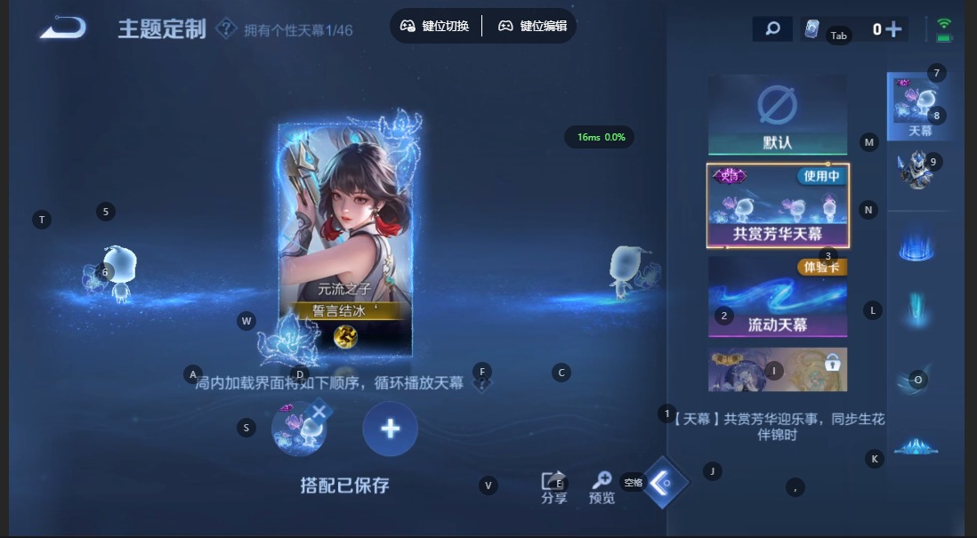 铠青龙志,苏烈玄武志,干将莫邪冰霜恋舞曲,后羿辉光之辰,庄周云端筑梦师,裴擒虎梅西,裴擒虎李小龙,东皇太一逐梦之光,上官婉儿梁祝,花木兰青春决赛季,孙悟空大圣娶亲,百里玄策白虎志,百里守约朱雀志,虞姬霸王别姬