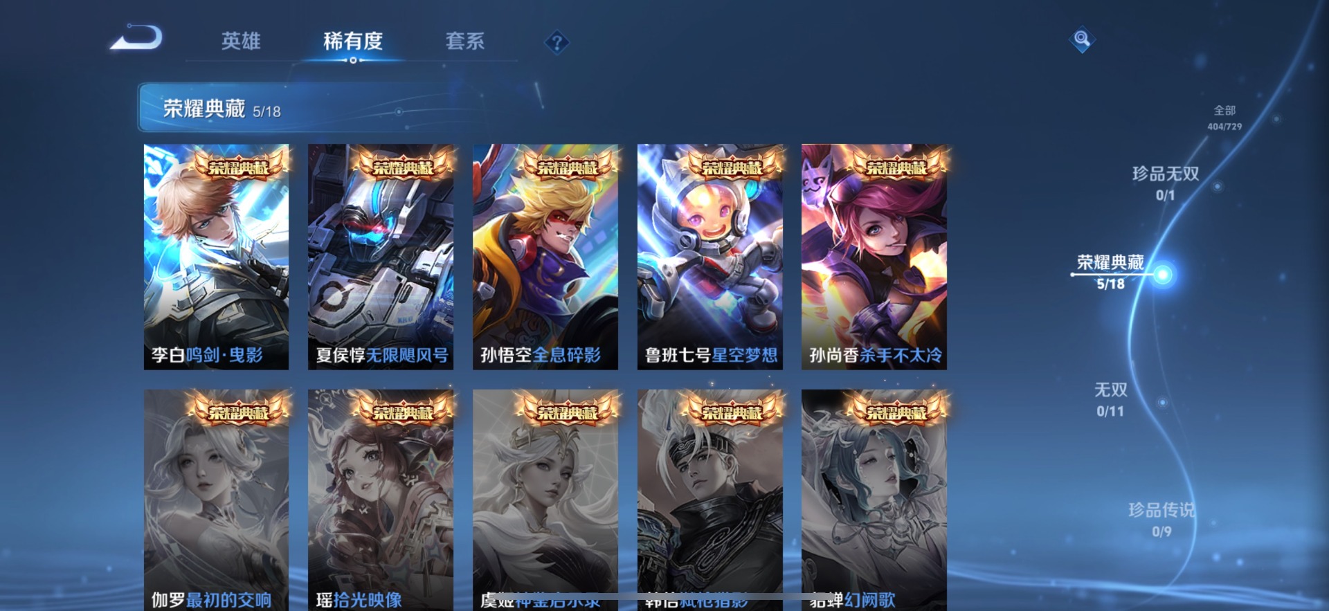 - [12059146]V7 1无双 6传说 123英雄 224皮肤 可修改实名 女号 优质装备:神器·明辉仪,绛天战甲(鸡嘴战神),猫影幻舞,炽阳神光,地狱火,神器·明辉仪,涂山容容 珍宝阁皮:优雅恋人,蔷薇恋人 限定皮:至尊宝,异界灵契(白毛香),傲雪梅枪,绯月行,神威(电光马子),高山流水,五谷丰年,梁祝,李小龙,朱雀志(守约年限),如梦令-后羿,孙行者,猪悟能,大圣娶亲,美猴王 史诗皮:百相守梦-黄忠,紫霞仙子,电玩小子(小书包),特工魅影,魅语,冰冠公主,晚萤,电玩·爆裂旋风,龙骑士(小龙虾),末日机甲-吕布,猫狗日记-大乔,时之恋人-孙尚香,乱世虎臣,女仆咖啡,水果甜心,星夜王子,心灵骇客,暗隐猎兽者,鬼剑武藏,心灵战警,舞动绿茵,地狱岩魂,纤云弄巧,繁星吟游(呼啦呼啦),拒霜思,缤纷独角兽,乘风破浪,金属风暴,圣诞狂欢,圣诞恋歌,鹰眼统帅,魅力维加斯,赏金猎手,无心,未来纪元-赵云