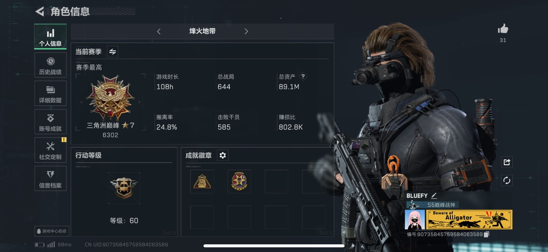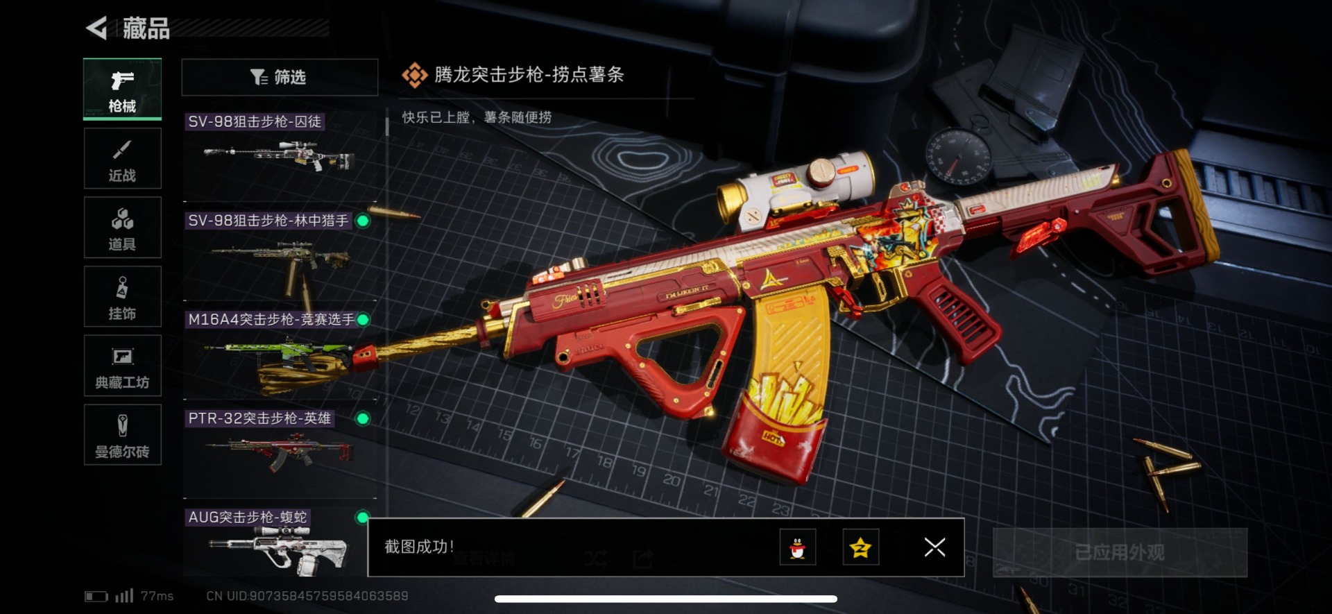 [11689077]总资产:89.1M 12传说枪械 哈夫币:42.125K 可二次 可修改实名 优质装备:顶级安全箱(3x3) 烽火地带段位:三角洲巅峰 全面战场段位:将军 传说武器皮肤:SR-25射手步枪-水墨云图,SMG45冲锋枪-骑士,UZI冲锋枪-特斯拉线圈,AWM狙击步枪-捞点薯条,腾龙突击步枪-捞点薯条,93R-捞点薯条,AK-12突击步枪-特斯拉线圈,SR-3M紧凑突击步枪-特斯拉线圈,勇士冲锋枪-能天使-午夜邮差,复合弓-黑-天际线,M4A1突击步枪-阿米娅,CAR-15突击步枪-阿米娅 史诗武器皮肤:Vector冲锋枪-潜袭者,M1014霰弹枪-潜袭者,SR-3M紧凑突击步枪-英雄,AUG突击步枪-蝮蛇,M700狙击步枪-蝮蛇,PKM通用机枪-蝮蛇,SR-25射手步枪-战场英杰,G3战斗步枪-战场英杰,M16A4突击步枪-竞赛选手,M1014霰弹枪-林中猎手,MP5冲锋枪-深海恐惧,AKM突击步枪-林中猎手,PTR-32突击步枪-英雄,SV-98狙击步枪-囚徒,Vector冲锋枪-阿萨拉文明,SVD狙击步枪-阿萨拉工艺,PKM通用机枪-英雄,M700狙击步枪-竞技风,QSZ92G-风林火山