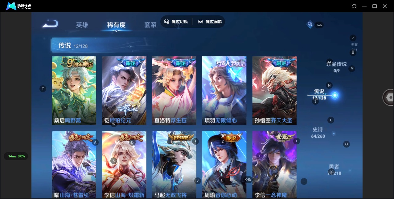 - [11445433]V6 1典藏 2传说 124英雄 160皮肤 可修改实名 荣耀水晶:星域神启(倪克斯贼亮) 传说皮:零号·赤焰 珍宝阁皮:女武神 限定皮:鸣野蒿,遇见飞天,李小龙,大圣娶亲 史诗皮:龙之律动,石田雨龙,特工魅影,冰冠公主,末日机甲-吕布,乱世虎臣,摇滚巨星,水果甜心,星夜王子,暗隐猎兽者,幽灵船长,纤云弄巧,繁星吟游(呼啦呼啦),缤纷独角兽,逐浪之夏,金属风暴,鹰眼统帅,魅力维加斯,未来纪元-赵云