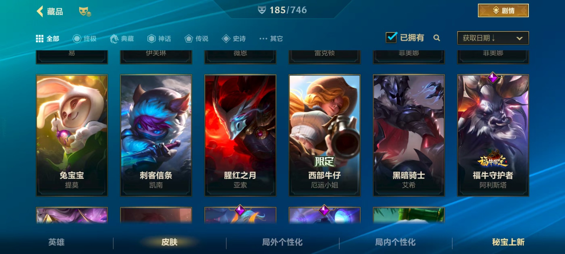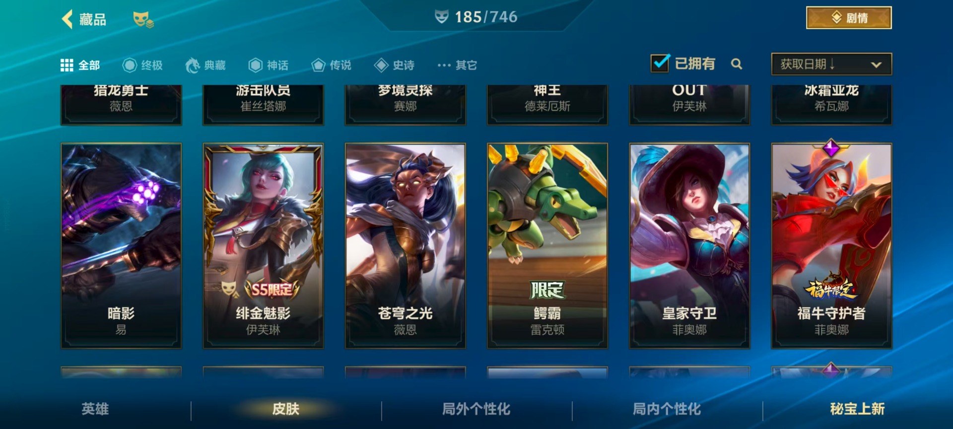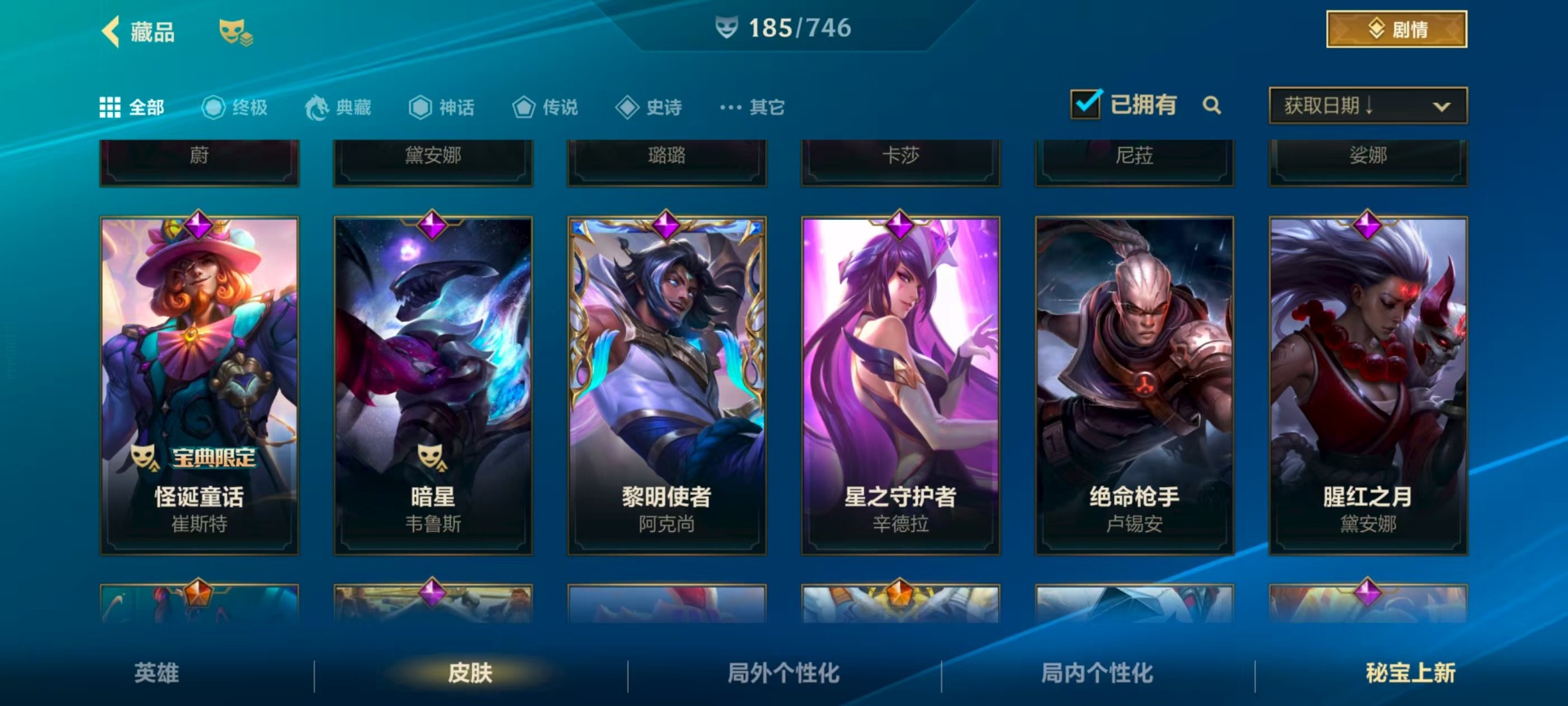 - [12264195]2终极 3神话 36限定 29传说 79史诗 308皮肤 46炫彩 171英雄 可二次 可修改实名 优质装备:源代码 乐芙兰,防爆天使 凯尔,暗影 沃里克,都铎王朝 图奇,冠军之血 希瓦娜,警用试作体K-9 内瑟斯,蓝色忧郁 崔斯特,女猎手 希维尔,糖果使徒 费德提克,征服者 韦鲁斯,大元素使,灵魂守卫,天煞 劫 恒星游历者,无畏骑士 瑟庄妮 赤子初心,可爱可爱粉红红 布里茨,咖啡甜心 璐璐 焦糖布丁,十五周年纪念 希维尔,暗裔英雄 盖伦 赛季限定皮:胜利凤凰 艾尼维亚,胜利之运 崔斯特,胜利剑圣 易,胜利女神 娑娜,胜利巨口 克格莫,胜利之王 泰达米尔,胜利枪神 格雷福斯,胜利女神 奥利安娜,胜利之剑 剑魔,胜利枪神 卢锡安,胜利机器人 布里茨 冠军限定系列:S1FNC 嘉文四世,S1FNC 库奇,S10 DWG 烬 冰雪节限定:“主人不要我了” 阿木木,冰雪节 炼金,魄罗骑士 瑟庄妮,圣诞开心鬼 提莫,圣诞老人 酒桶,圣诞玩偶 波比,冰雪节 茂凯,英勇玩具兵船长 泳池派对:泳池派对 吉格斯,海之歌 泽丽 万圣节限定:无头骑士 人马 年限:天龙之子 斯莫德 周年:10周年 安妮