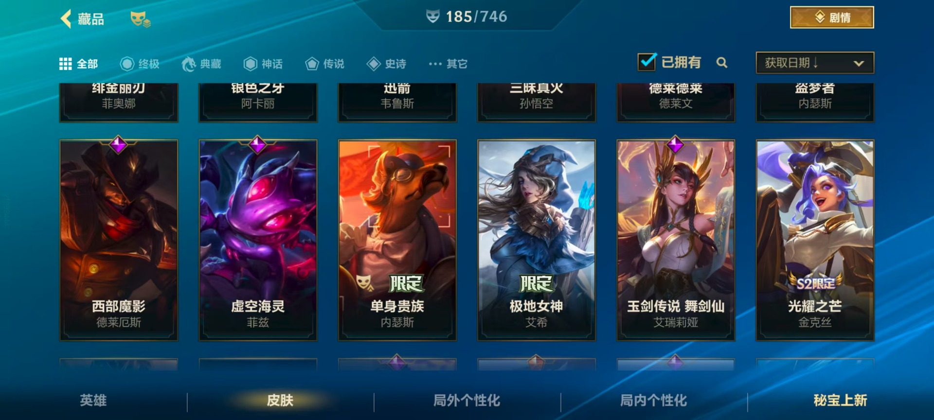 - PX_2057229-贵族等级: V4 英雄数: 97 皮肤数: 64 传说皮: 冠军飞将,时之恋人-刘备,无双飞将,幻光神枪 限定皮: 异界灵契,五谷丰年