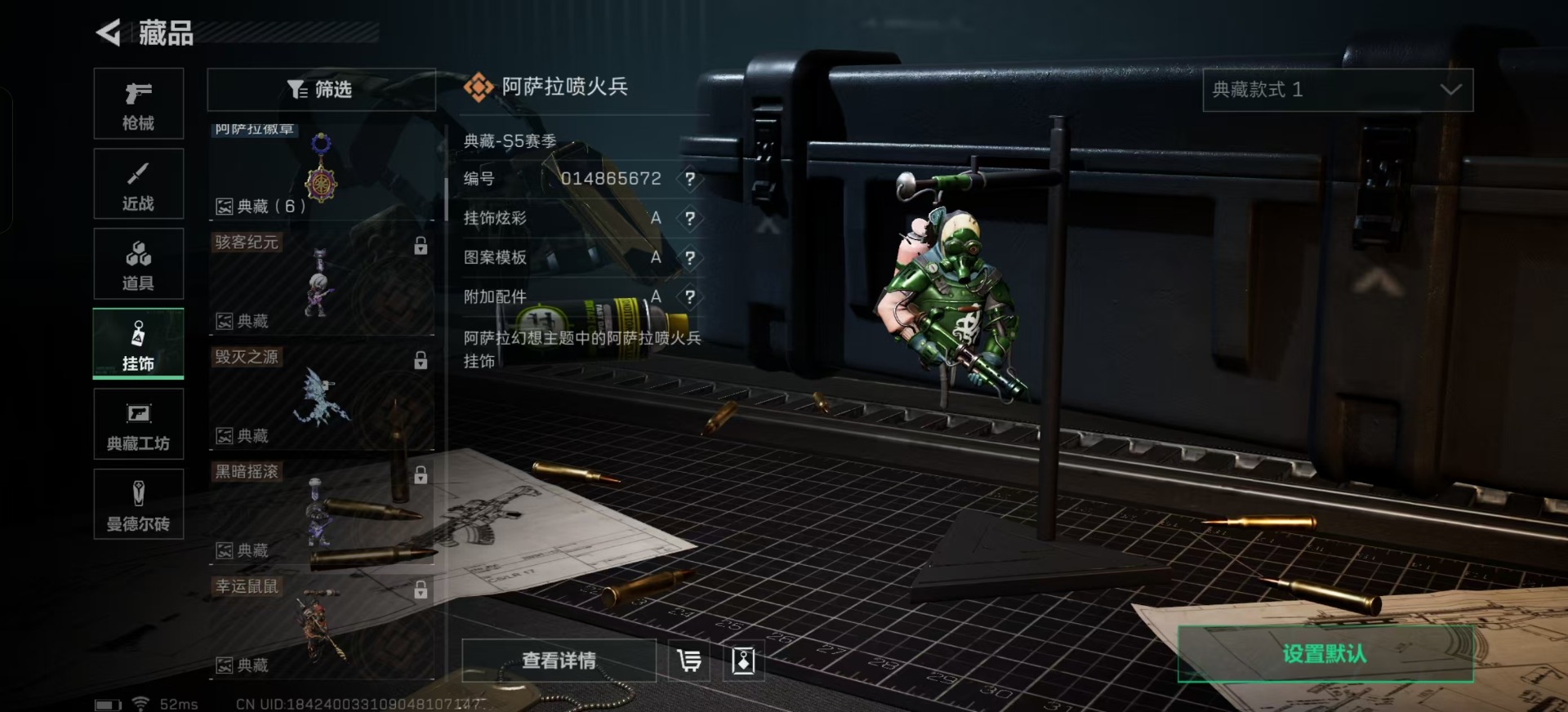 [11689320]总资产:47.6M 11传说枪械 哈夫币:30.362K 高级安全箱(9.16到期) 可二次 可修改实名 烽火地带段位:钻石 全面战场段位:尉官 传说武器皮肤:UZI冲锋枪-特斯拉线圈,AWM狙击步枪-捞点薯条,腾龙突击步枪-捞点薯条,93R-捞点薯条,AK-12突击步枪-特斯拉线圈,SR-3M紧凑突击步枪-特斯拉线圈,勇士冲锋枪-能天使-午夜邮差,复合弓-黑-天际线,725双管霰弹枪-送葬人-无题密令,M4A1突击步枪-阿米娅,CAR-15突击步枪-阿米娅 史诗武器皮肤:QJB201轻机枪-Old Habits,MP5冲锋枪-深海恐惧,SG552突击步枪-深海恐惧,M16A4突击步枪-竞赛选手,SV-98狙击步枪-林中猎手,SV-98狙击步枪-囚徒,SCAR-H战斗步枪-囚徒,腾龙突击步枪-无垢,PSG-1射手步枪-无垢,SVD狙击步枪-荒野求生,PKM通用机枪-荒野求生,P90冲锋枪-紧急戒备