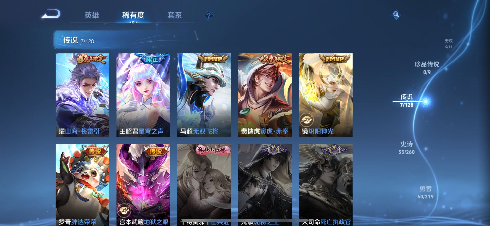 - PX_1932924-贵族7/皮肤220/典藏1/传说9/史诗60/英雄123/全息碎影/马可波罗怪盗基德/孙策时之奇旅/女武神/玩趣恶龙/特工战影/白虎志/零号赤焰/绛天战甲/李逍遥/齐天大圣/战鼓燎原/桑启鸣野蒿/云缨幻光神枪/澜愿照九州拓/狰/蒙犽顽岩魄/蔡文姬夏日便利店/虞姬夏日便利店/姜子牙天穹之誓/杨戬破阵退雄兵/李白谪仙醉月/狄仁杰阴阳师/赵云皇家上将/庄周高山流水/玩趣恶龙/元歌无