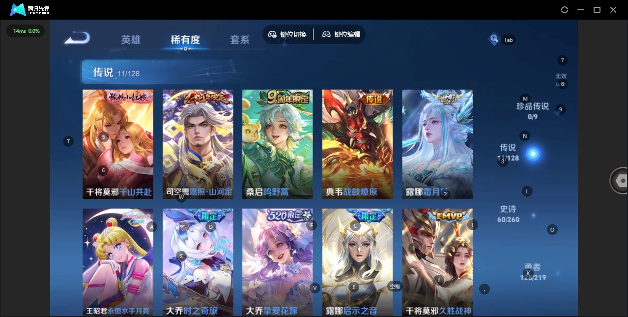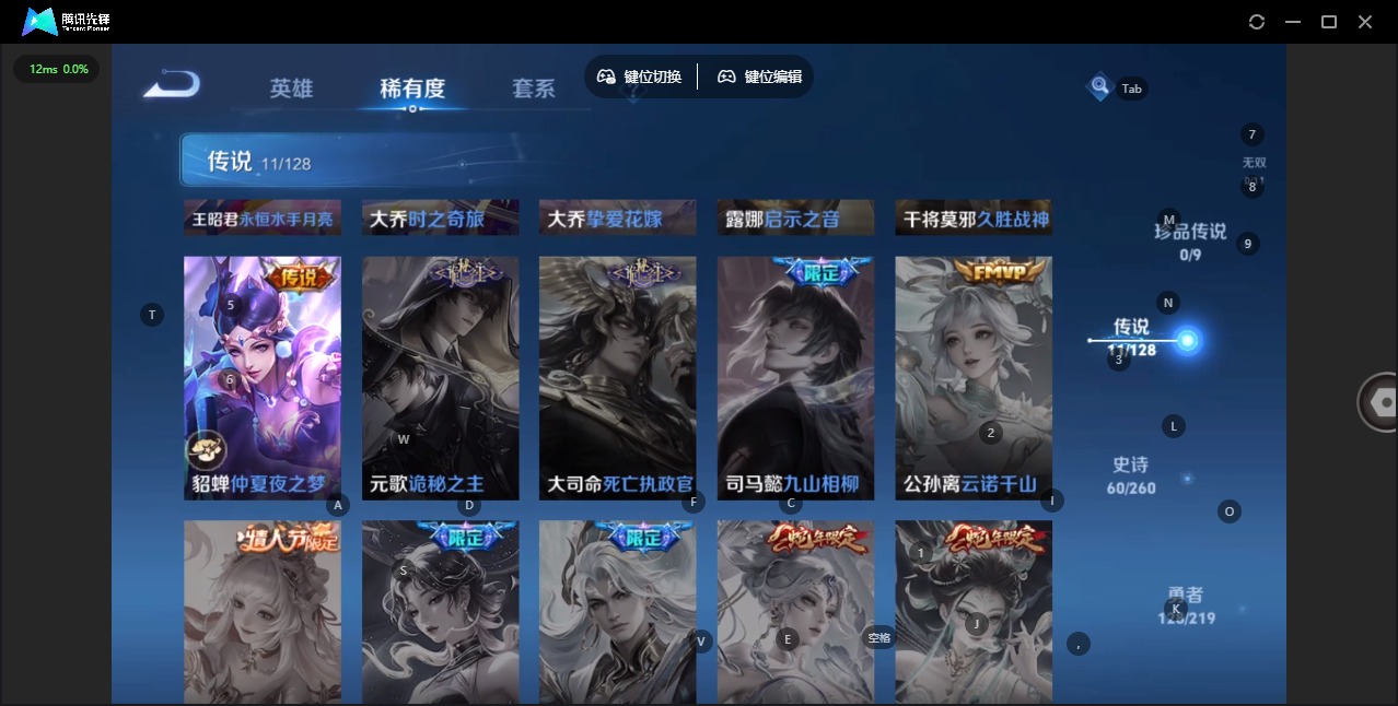 - [12049218]V8 1无双 2珍品传说 15传说 117英雄 140皮肤 可修改实名 连体和平 优质装备:器灵·螭龙剑,器灵·落星盏,一念神魔,无双飞将,浮生妄,妄想实况,霜月吟,澜逐花归海 珍品传说:时之奇旅-孙策 传说皮:祥瑞亨通,幻光神枪 限定皮:愿照·九州拓(澜年限),愿照·山河定(司空震年限),逐霄战戟,映山客,鸣野蒿,神威(电光马子),山海·碧波行(瑶年限),影龙天霄,降魔,祈雪灵祝(雪兔子),百木心枪,山海·玄木吟(马可年限) 史诗皮:器灵·浮梦炉,糖绘人间,龙之律动,茶境仙,上官婉儿群星魔术团,蔬乡物语(鲁班七号),百相守梦-百里守约,百相守梦-黄忠,永昼,电玩·爆裂旋风,百相守梦(刘备),暗夜猫娘,水果甜心,天才门将,星夜王子,暗隐猎兽者,幽灵船长,鬼剑武藏,暗渊魔法,天秀·启明,舞动绿茵,缤纷独角兽,逐浪之夏,圣诞狂欢,圣诞恋歌,魅力维加斯,雪上飞焰,赏金猎手,玫瑰异探