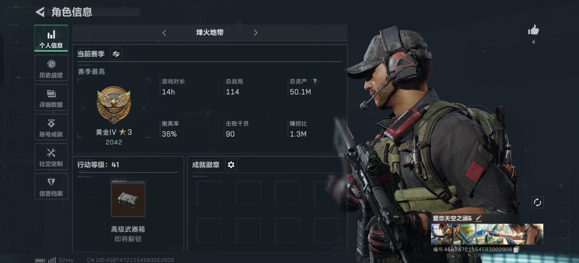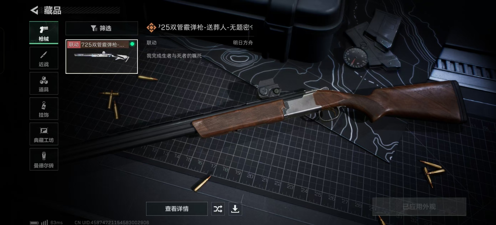 [10324206]可二次 可修改实名 实名:可修改 高级安全箱(2×3)9.15号到期 总资产:50.1 哈夫币:25.184 传说武器皮肤:725双管霰弹枪-送葬人-无题密令