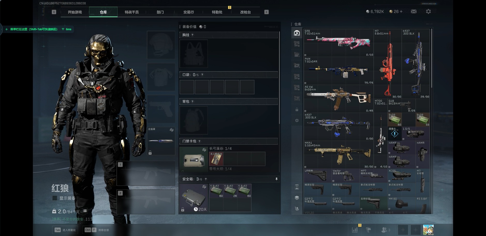 [11687454]总资产:138.3M 1干员外观 1近战传说 18传说枪械 哈夫币:6.782K 高级安全箱(2×3)9.15号到期 可二次 可修改实名 优质装备:近战-北极星,腾龙突击步枪-气象感应(典藏) 烽火地带段位:黑鹰 全面战场段位:军士长 传说武器皮肤:AK-12突击步枪-夜鹰,M4A1突击步枪-阿米娅,CAR-15突击步枪-阿米娅,复合弓-黑-天际线,AWM狙击步枪-捞点薯条,QCQ171冲锋枪-北极星,腾龙突击步枪-捞点薯条,93R-捞点薯条,AK-12突击步枪-特斯拉线圈,SR-3M紧凑突击步枪-特斯拉线圈,UZI冲锋枪-特斯拉线圈,勇士冲锋枪-能天使-午夜邮差,725双管霰弹枪-送葬人-无题密令,K437突击步枪-北极星,M14射手步枪-工业审判,M4A1突击步枪-蚀金玫瑰 史诗武器皮肤:勇士冲锋枪-私人定制(典藏),M700狙击步枪-蝮蛇,PKM通用机枪-蝮蛇,Ash-12战斗步枪-守夜人,M16A4突击步枪-竞赛选手,PKM通用机枪-守夜人,AS Val突击步枪-尖端治疗,M700狙击步枪-守夜人,SG552突击步枪-尖端治疗,SR-25射手步枪-尖端治疗,PKM通用机枪-荒野求生,MP5冲锋枪-深海恐惧,AKM突击步枪-林中猎手,SR-3M紧凑突击步枪-荒野求生,M1014霰弹枪-林中猎手,SV-98狙击步枪-林中猎手,PTR-32突击步枪-英雄,SVD狙击步枪-荒野求生,AS Val突击步枪-典狱官,M250通用机枪-囚徒,SV-98狙击步枪-囚徒,SCAR-H战斗步枪-囚徒,腾龙突击步枪-无垢,MP7冲锋枪-无垢,PSG-1射手步枪-无垢,SVD狙击步枪-阿萨拉工艺,S12K霰弹枪-曙光 干员外观:红狼-蚀金玫瑰