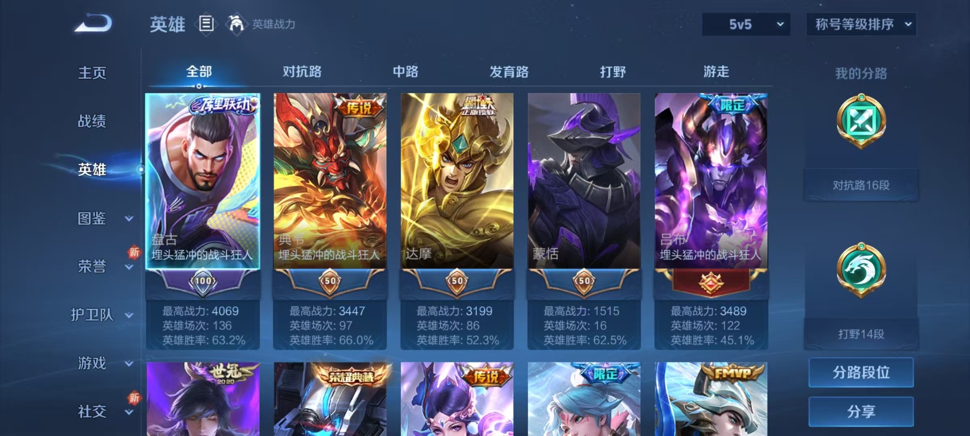 - [12052017]V5 5传说 116英雄 98皮肤 可修改实名 优质装备:黄金射手座 传说皮:幻光神枪 珍宝阁皮:妄想食味 限定皮:愿照·九州拓(澜年限),愿照·岁时盈(虞姬年限),逐霄战戟,鸣野蒿,高山流水,梁祝,李小龙,孙行者,美猴王 史诗皮:器灵·浮梦炉,狼魂孤将,化蝶舞,龙之律动,石田雨龙,蒙犽顽岩魄,星界特工,紫霞仙子,特工魅影,江河有灵,真我赫兹(百里守约),龙骑士(小龙虾),女仆咖啡,水果甜心,星夜王子,心灵骇客,鬼剑武藏,缤纷独角兽,逐浪之夏,水晶猎龙者,金属风暴,鹰眼统帅