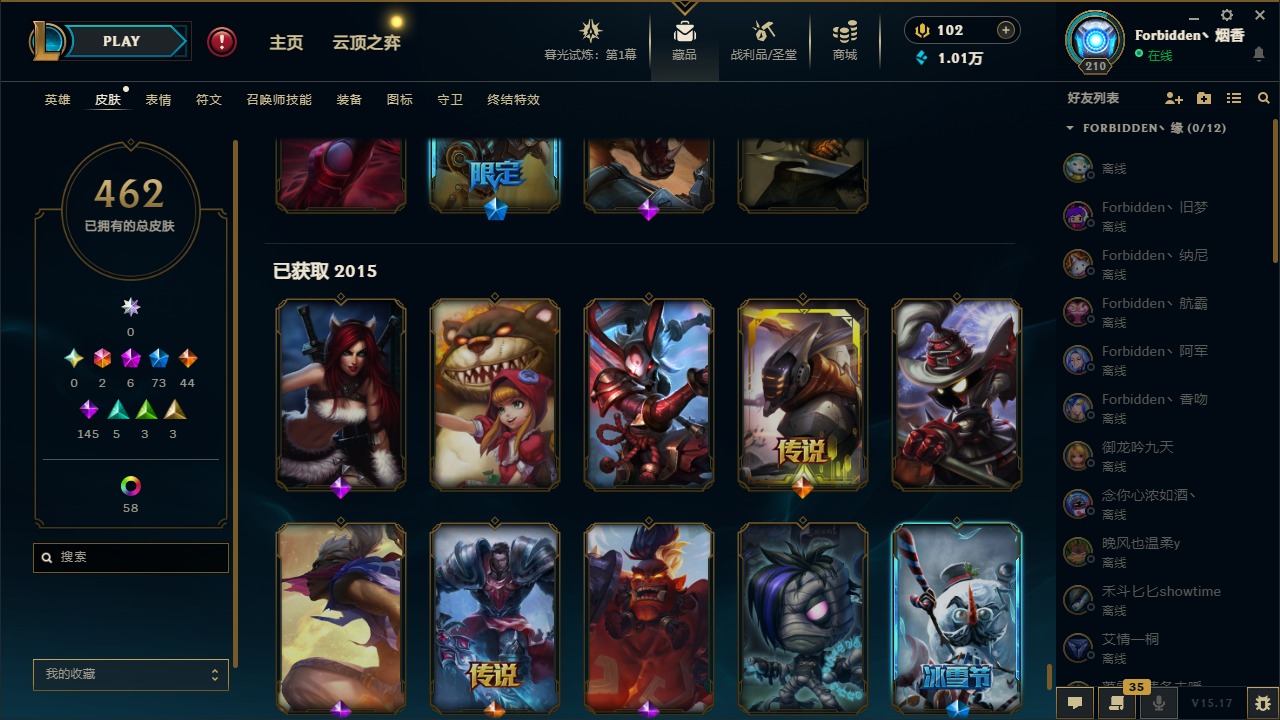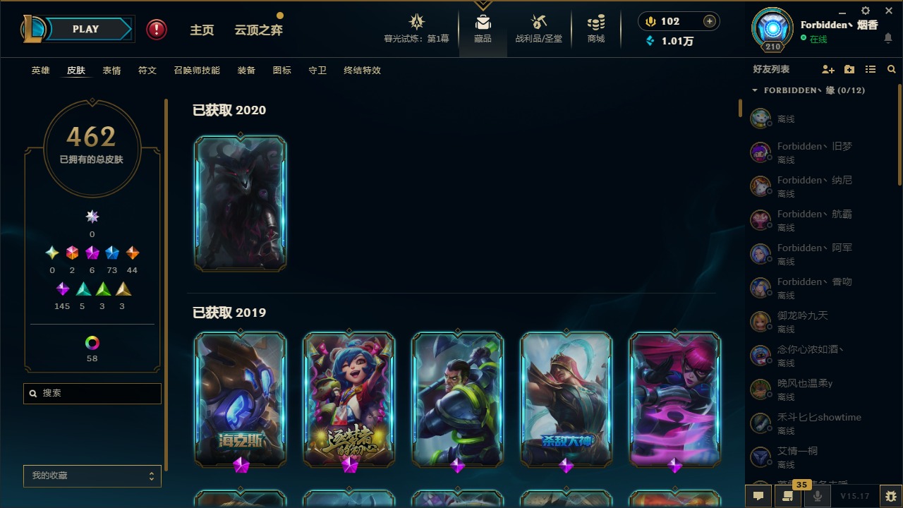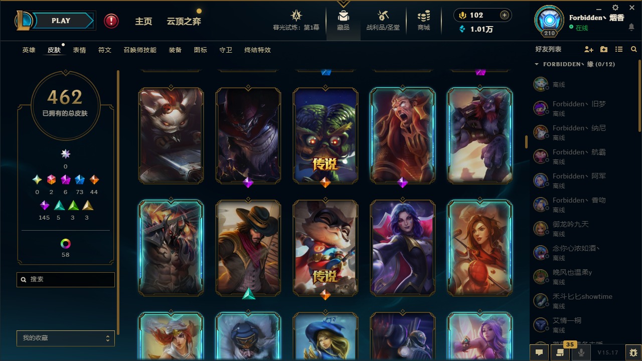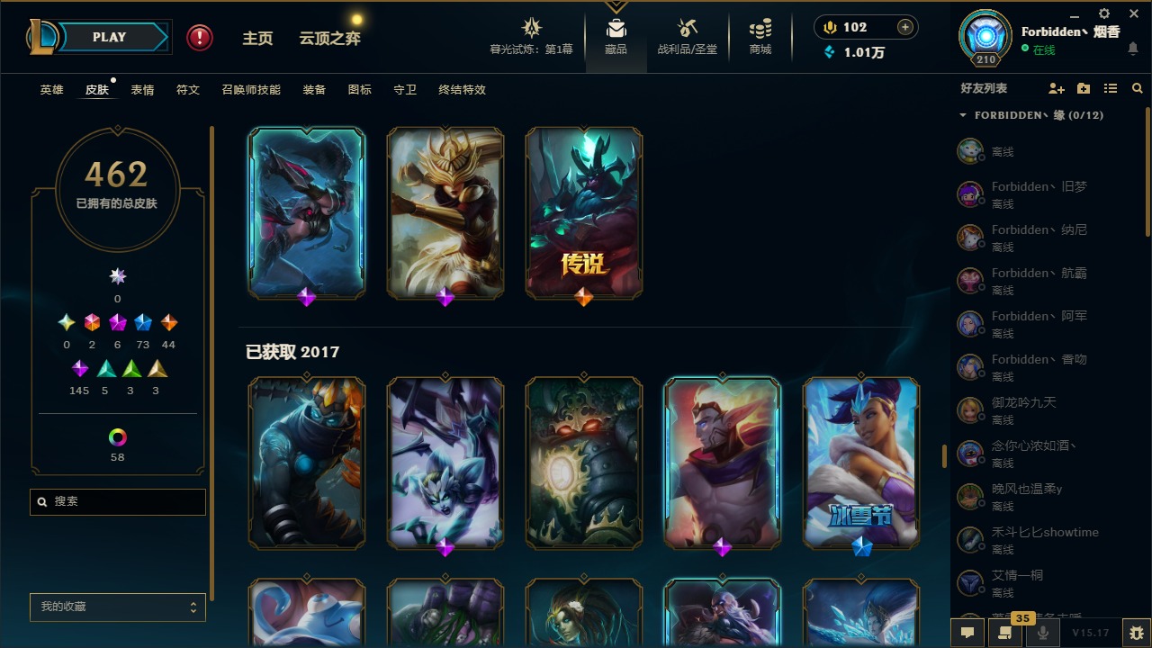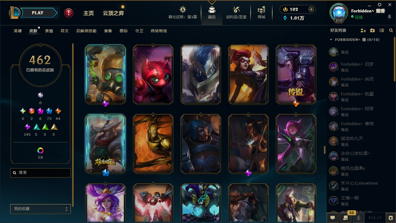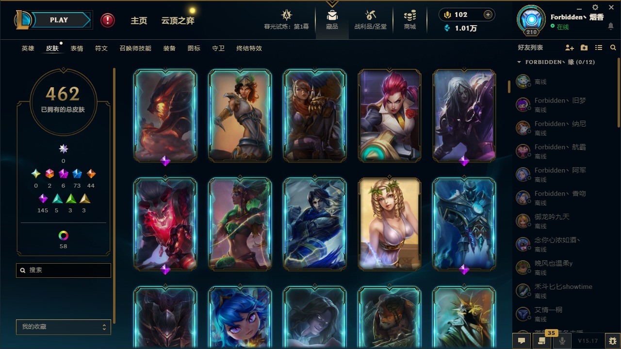 [11710577]2终极 6神话 73限定 44传说 145史诗 462皮肤 80炫彩 151英雄 可二次 可修改实名 优质装备:至臻 K/DA 阿卡丽,斩星魔剑,防爆天使 凯尔,暗影 沃里克,地底世界 崔斯特,钢铁之翼 凤凰,冠军典狱长 锤石,冠军之血 希瓦娜,冠军之隐 劫,鸡里奥,惊悚派对 阿木木,警用试作体K-9 内瑟斯,克格汪 克格莫,蓝色忧郁 崔斯特,密林猎手 提莫,女猎手 希维尔,送披萨的小姐姐 希维尔,野兽猎人 德莱文,御魔星矢 寒冰,大元素使,未来战士,冰霜之刃 艾瑞莉娅 炫金,冰雪游神 巴德 炫金,冰雪风暴 希维尔 炫金,冠军之隐 劫 凯旋圣装,红莲之刃 锐雯 海克斯:摄魂 薇恩,海克斯 阿利斯塔,海克斯 克格莫,海克斯 阿木木 限定:战熊骑士,创星之灵 璐璐 情人节限定:觅心之翼 奎因,甜心宝贝 安妮 冠军限定系列:S1FNC 酒桶,S1FNC 迦娜,S1FNC 卡尔萨斯,S2 暗杀星 发条,S2 暗杀星 蒙多,S2 暗杀星 慎,S2 暗杀星 伊泽瑞尔,S3 SKT T1 贾克斯,S4 SSW 泰隆,S4 SSW 图奇,S4 SSW 炼金,S6 SKT T1 艾克 冰雪节限定:“主人不要我了” 阿木木,冰雪节 格雷福斯,冰雪节 马尔扎哈,冰雪节 炼金,冬季仙境 发条,冬季仙境 卡尔玛,胡桃夹子 小丑,平安夜女神 娑娜,魄罗骑士 瑟庄妮,圣诞开心鬼 提莫,圣诞精灵 崔丝塔娜,圣诞狂欢 时光,圣诞狂欢 努努,圣诞老人 酒桶,圣诞糖果棒 厄运小姐,圣诞玩偶 波比,圣诞驯鹿 克格莫,冰雪节 茂凯,邪恶圣诞老人 维迦,幸福女神 乐芙兰,雪默丁格 泳池派对:泳池派对 吉格斯,泳池派对 雷克顿,泳池派对 李青,泳池派对 塔里克 万圣节限定:鬼影森森 茂凯,鬼影重重 魔腾,海贼 瑞兹,魅惑女巫 奈德丽,南瓜头 费德提克,无头骑士 人马 年限:龙年 孙悟空,蛇年 库奇,马年 黛安娜,猴年 莫甘娜,鸡年 阿兹尔,鸡年 盖伦,狗年 内瑟斯 周年:2周年 德莱厄斯,4周年 锐雯,10周年 安妮