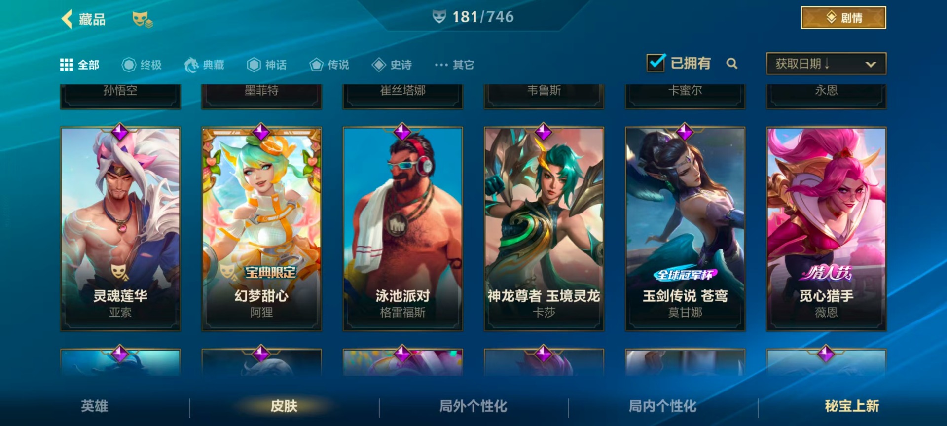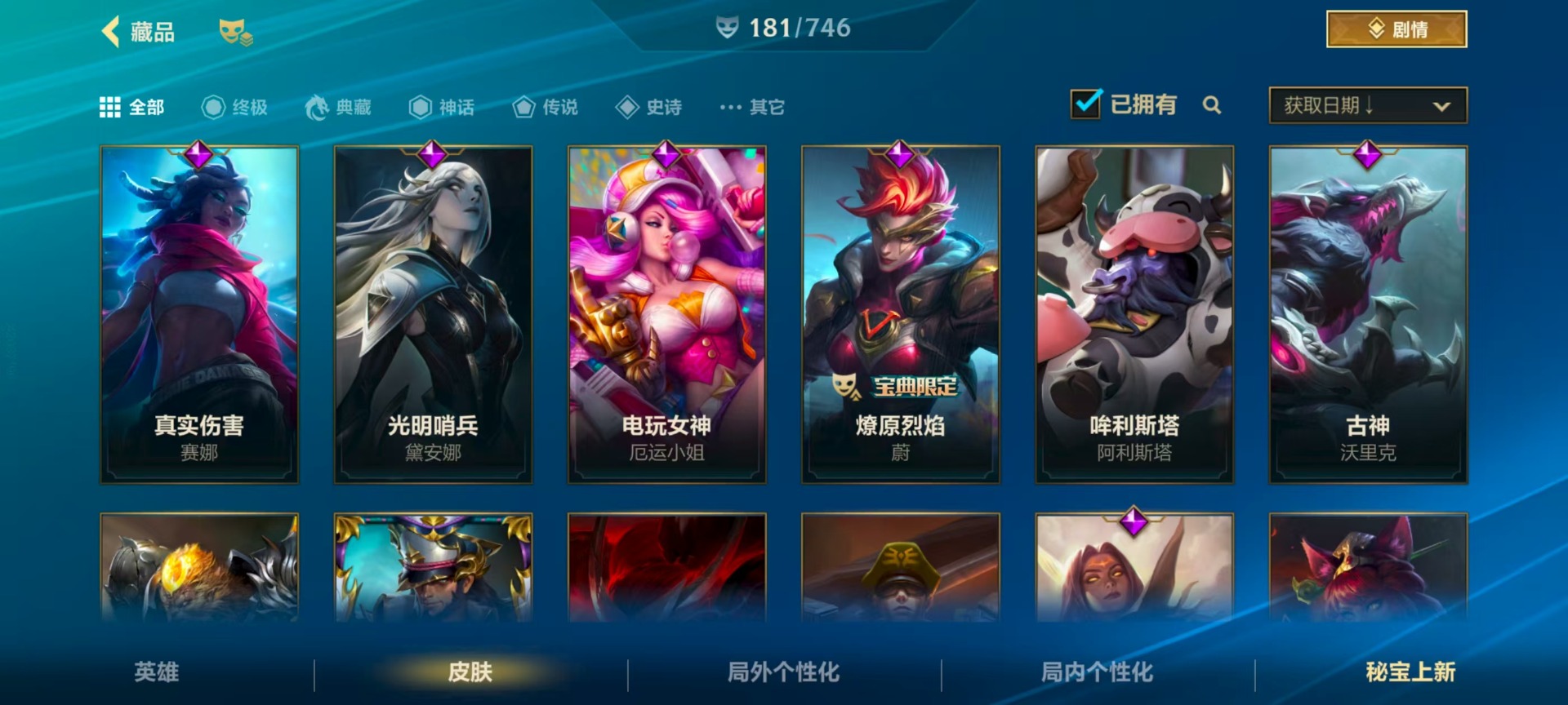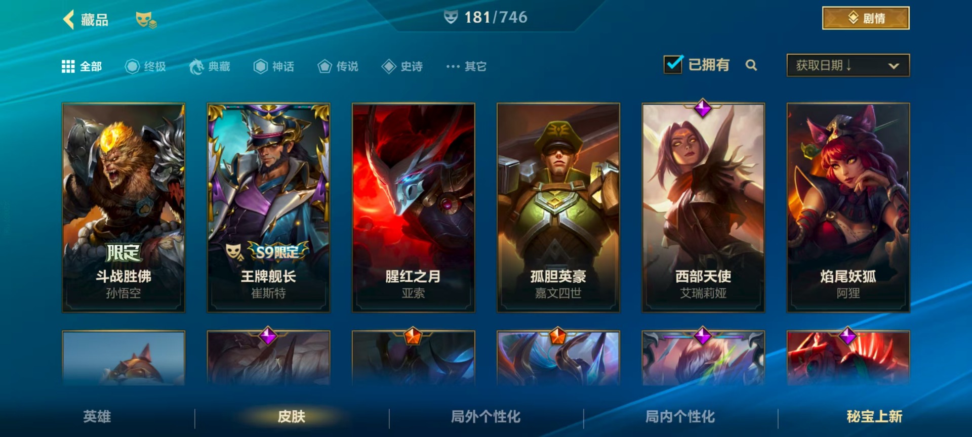 - [11685686]V7 1典藏 1珍品传说 12传说 125英雄 339皮肤 可修改实名 优质装备:鸣剑·曳影,怪盗基德,黄金射手座,云鹰飞将(小将军),黄金白羊座,久胜战神,一念神魔,淬星耀世,超时空战士-狄仁杰,山海·炽霜斩(李信年限) 珍宝阁皮:胡桃夹子,优雅恋人,蔷薇恋人 限定皮:愿照·岁时盈(虞姬年限),逐霄战戟,鸣野蒿,至尊宝,魔法小厨娘,时雨天司(水龙头),遇见飞天,高山流水,怒海麟威,降魔,五谷丰年,梁祝,逐梦之音,李小龙,孙行者,神器·万象笔,山海·玄木吟(马可年限) 史诗皮:鸭鸭历险记-刘禅,器灵·浮梦炉,化蝶舞,星界战将,龙之律动,茶境仙,怒海争锋,蒙犽顽岩魄,上官婉儿群星魔术团,蔬乡物语(鲁班七号),百相守梦-黄忠,织梦人,黄金分割率,特工魅影,千年之狐,江河有灵,魅语,百解令(蒙犽),高渐离燃音魔法,蒙恬荣光圣徽,冰冠公主,偶像歌手,电玩·爆裂旋风,百相守梦(刘备),龙骑士(小龙虾),末日机甲-吕布,猫狗日记-孙策,乱世虎臣,节奏热浪,修罗,女仆咖啡,摇滚巨星,水果甜心,绅士熊喵,星夜王子,心灵骇客,功夫厨神,德古拉伯爵,暗隐猎兽者,幽灵船长,鬼剑武藏,心灵战警,地狱岩魂,纤云弄巧,拒霜思,乘风破浪,逐浪之夏,水晶猎龙者,曙光守护者,热力回旋,箭羽风息,金属风暴,原初追逐者,圣诞狂欢,圣诞恋歌,鹰眼统帅,王者之锤,魅力维加斯,黎明之约,赏金猎手,无心,未来纪元-赵云