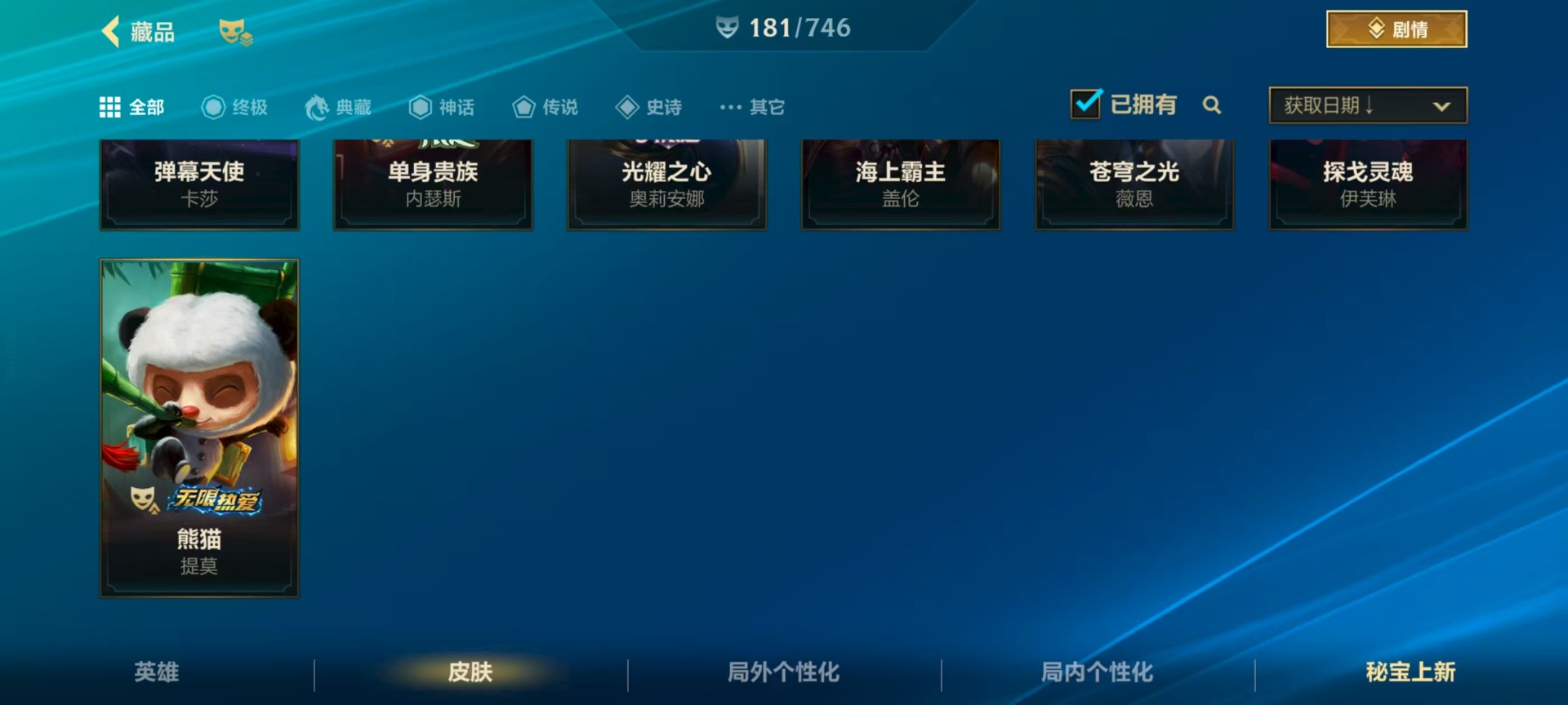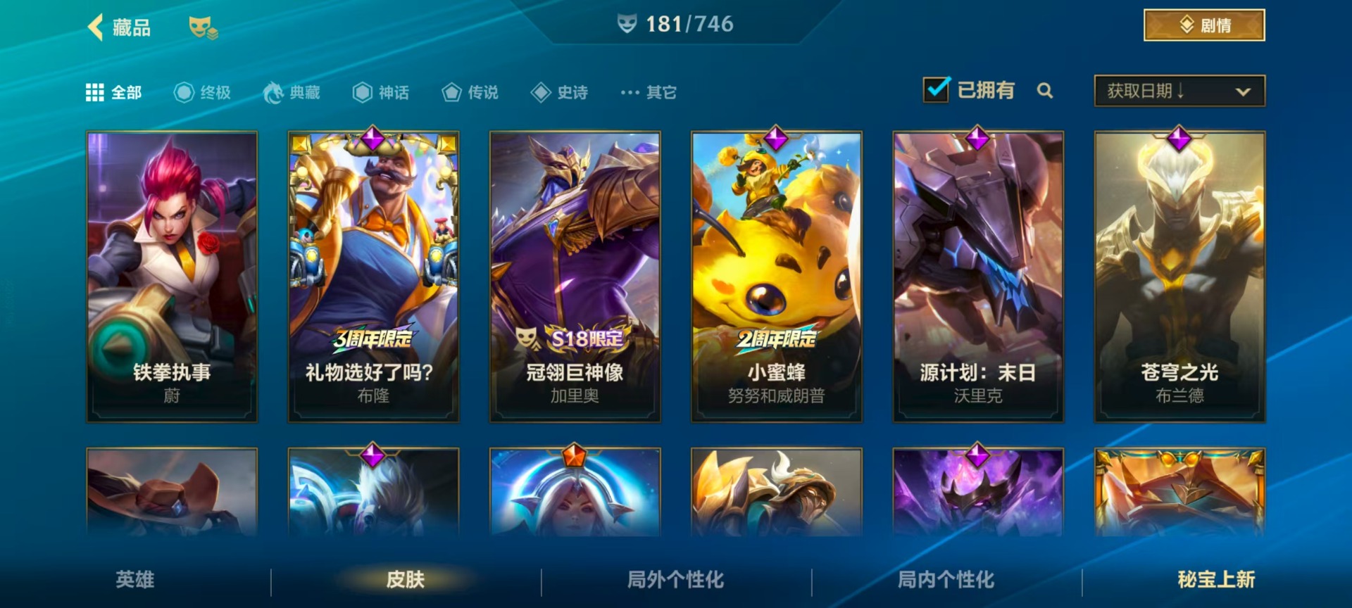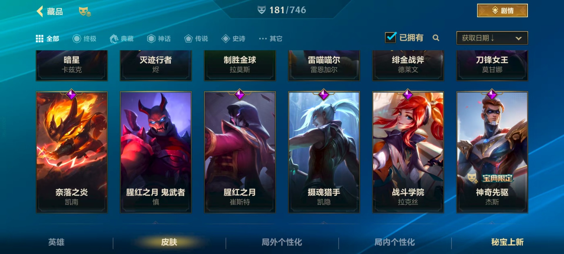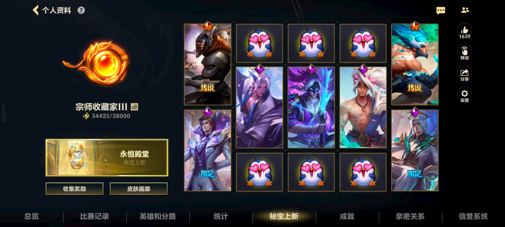 - [11685686]V7 1典藏 1珍品传说 12传说 125英雄 339皮肤 可修改实名 优质装备:鸣剑·曳影,怪盗基德,黄金射手座,云鹰飞将(小将军),黄金白羊座,久胜战神,一念神魔,淬星耀世,超时空战士-狄仁杰,山海·炽霜斩(李信年限) 珍宝阁皮:胡桃夹子,优雅恋人,蔷薇恋人 限定皮:愿照·岁时盈(虞姬年限),逐霄战戟,鸣野蒿,至尊宝,魔法小厨娘,时雨天司(水龙头),遇见飞天,高山流水,怒海麟威,降魔,五谷丰年,梁祝,逐梦之音,李小龙,孙行者,神器·万象笔,山海·玄木吟(马可年限) 史诗皮:鸭鸭历险记-刘禅,器灵·浮梦炉,化蝶舞,星界战将,龙之律动,茶境仙,怒海争锋,蒙犽顽岩魄,上官婉儿群星魔术团,蔬乡物语(鲁班七号),百相守梦-黄忠,织梦人,黄金分割率,特工魅影,千年之狐,江河有灵,魅语,百解令(蒙犽),高渐离燃音魔法,蒙恬荣光圣徽,冰冠公主,偶像歌手,电玩·爆裂旋风,百相守梦(刘备),龙骑士(小龙虾),末日机甲-吕布,猫狗日记-孙策,乱世虎臣,节奏热浪,修罗,女仆咖啡,摇滚巨星,水果甜心,绅士熊喵,星夜王子,心灵骇客,功夫厨神,德古拉伯爵,暗隐猎兽者,幽灵船长,鬼剑武藏,心灵战警,地狱岩魂,纤云弄巧,拒霜思,乘风破浪,逐浪之夏,水晶猎龙者,曙光守护者,热力回旋,箭羽风息,金属风暴,原初追逐者,圣诞狂欢,圣诞恋歌,鹰眼统帅,王者之锤,魅力维加斯,黎明之约,赏金猎手,无心,未来纪元-赵云