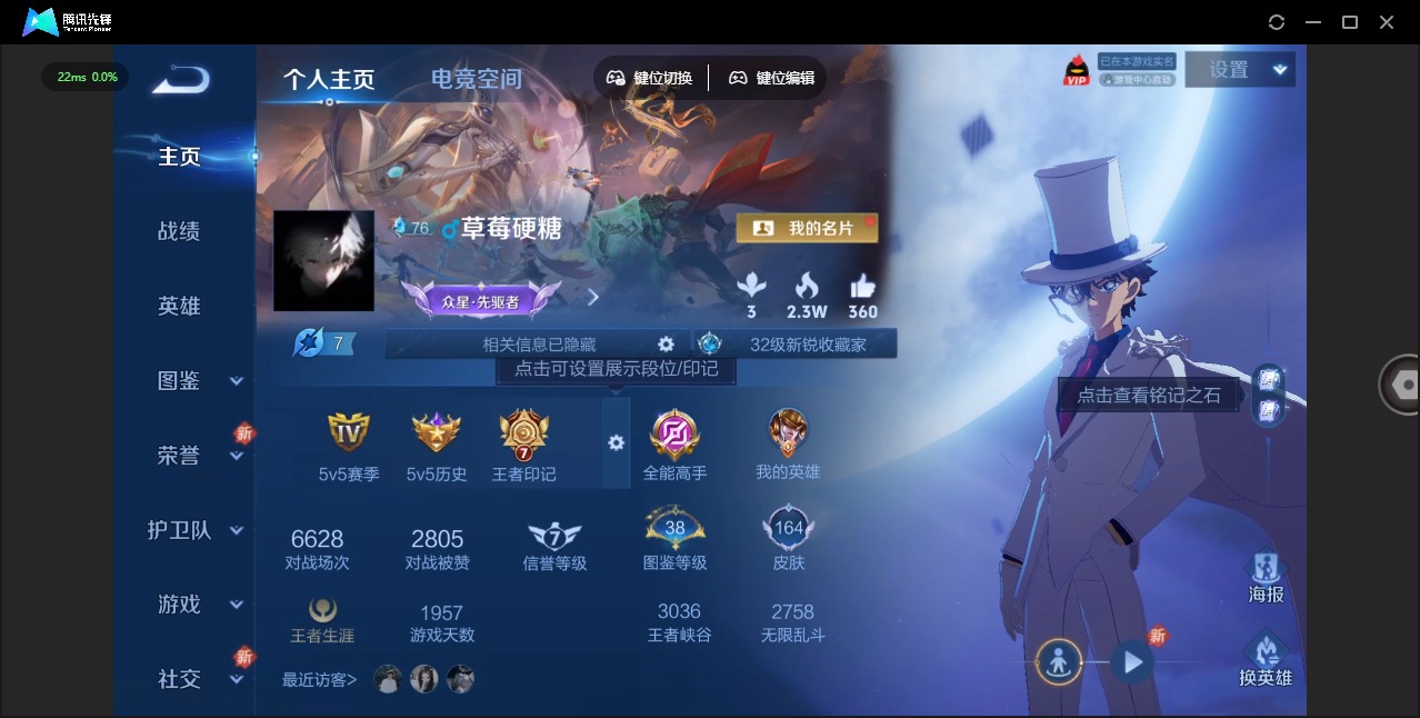 - [11020745]V8 2典藏 1珍品传说 24传说 123英雄 332皮肤 可修改实名 荣耀水晶:无限飓风号(高达),星域神启(倪克斯贼亮) 珍品传说:怪盗基德 传说皮:典韦战鼓燎原,幻光神枪,游龙清影(小青龙),黄金射手座,地狱之眼,云霓雀翎,一念神魔,冠军飞将,久胜战神,猫影幻舞,绛天战甲(鸡嘴战神),电玩·雷克斯,惊梅引,澜逐花归海 珍宝阁皮:胡桃夹子 限定皮:愿照·九州拓(澜年限),愿照·福禄聚(蔡文姬年限),愿照·岁时盈(虞姬年限),愿照·山河定(司空震年限),愿照·众生和(妲己年限),愿照·千秋盛(女娲年限),逐霄战戟,鸣野蒿,诗剑行,齐天大圣,五谷丰年,梁祝,御风骁将(吕布年限),岱宗(典韦年限),孙行者,猪悟能,美猴王,时之奇旅-妲己,神器·万象笔,山海·玄木吟(马可年限) 史诗皮:谪仙醉月,百相守梦-百里守约,茶境仙,器灵·浮梦炉,化蝶舞,鸭鸭历险记-刘禅,龙之律动,怒海争锋,决胜骁骑,上官婉儿群星魔术团,蔬乡物语(鲁班七号),乘龙·聚宝船(安琪拉年限),紫霞仙子,白龙吟,特工魅影,永昼,百相守梦(刘备),匿光破解者,电玩·爆裂旋风,鹤归松栖(赵怀真),冰冠公主,江河有灵,百解令(蒙犽),高渐离燃音魔法,蒙恬荣光圣徽,偶像歌手,晚萤,无限星赏官,魅语,白蛇,末日机甲-吕布,猫狗日记-孙策,乱世虎臣,节奏热浪,修罗,女仆咖啡,摇滚巨星,水果甜心,星夜王子,心灵骇客,时之奇旅-安琪拉,功夫厨神,德古拉伯爵,暗隐猎兽者,幽灵船长,鬼剑武藏,心灵战警,乐园奇幻夜,天秀·启明,地狱岩魂,诗语江南,纤云弄巧,拒霜思,缤纷独角兽,乘风破浪,逐浪之夏,龙鼓争鸣,月团寄思,水晶猎龙者,曙光守护者,唤灵魅影,箭羽风息,金属风暴,圣诞恋歌,鹰眼统帅,魅力维加斯,赏金猎手,天秀·音浪,无心,未来纪元-赵云