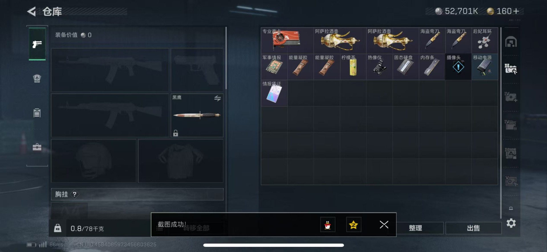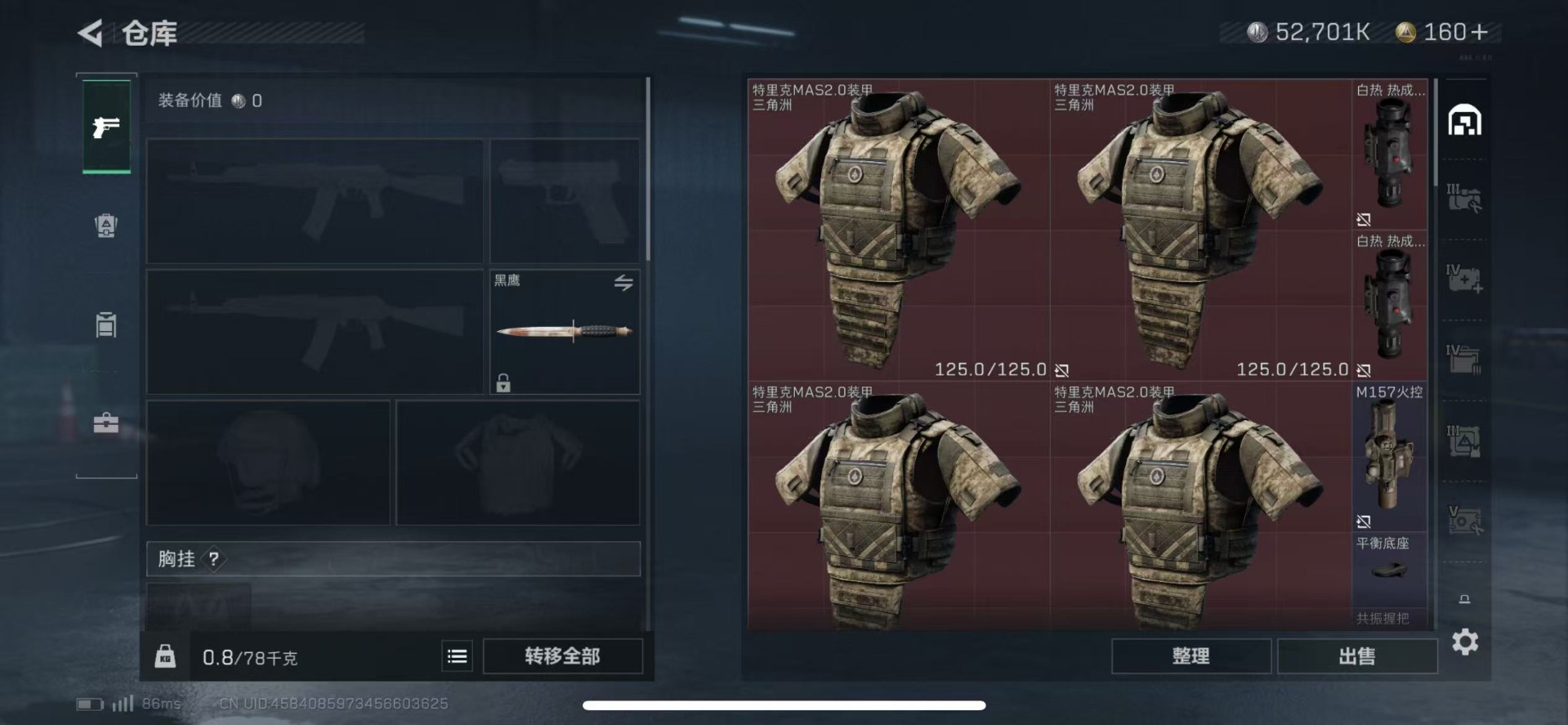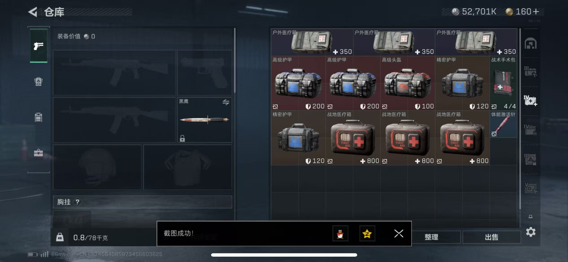 [11713262]总资产:100.4M 3传说枪械 哈夫币:52.701K 进阶安全箱(2×2)9.15号到期 可二次 可修改实名 烽火地带段位:白银 全面战场段位:无段位 传说武器皮肤:勇士冲锋枪-能天使-午夜邮差,复合弓-黑-天际线,M4A1突击步枪-阿米娅