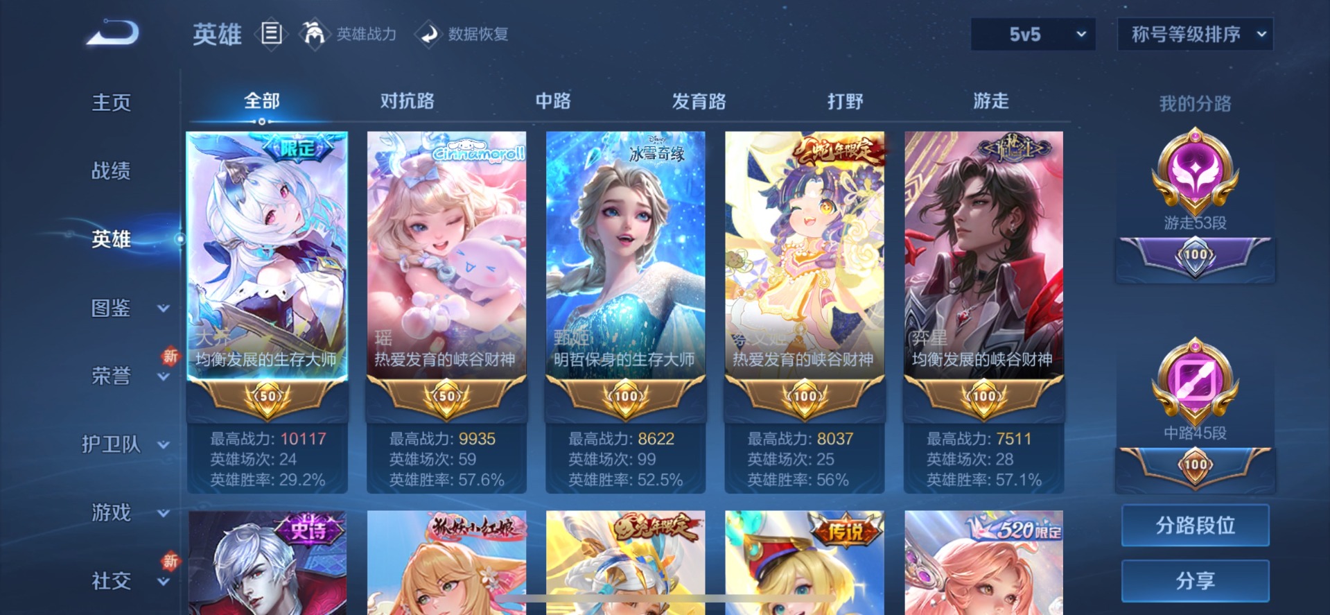 - [11820191]V7 1典藏 3传说 124英雄 181皮肤 可修改实名 优质装备:杀手不太冷,黄金狮子座,黄金射手座 限定皮:鸣野蒿,遇见飞天,青龙志(铠年限),李小龙,逐梦之光,朱雀志(守约年限),奇迹圣诞,一生所爱,大圣娶亲 史诗皮:鸭鸭历险记-刘禅,化蝶舞,龙之律动,雪豹·霜爪,小牛鸭,茶境仙,紫霞仙子,冰冠公主,青蛇,偶像歌手,末日机甲-吕布,猫狗日记-孙策,猫狗日记-大乔,摇滚巨星,水果甜心,心灵骇客,幽灵船长,鬼剑武藏,心灵战警,纤云弄巧,乘风破浪,逐浪之夏,圣诞狂欢,圣诞恋歌,鹰眼统帅,王者之锤,暗夜贵公子,魅力维加斯