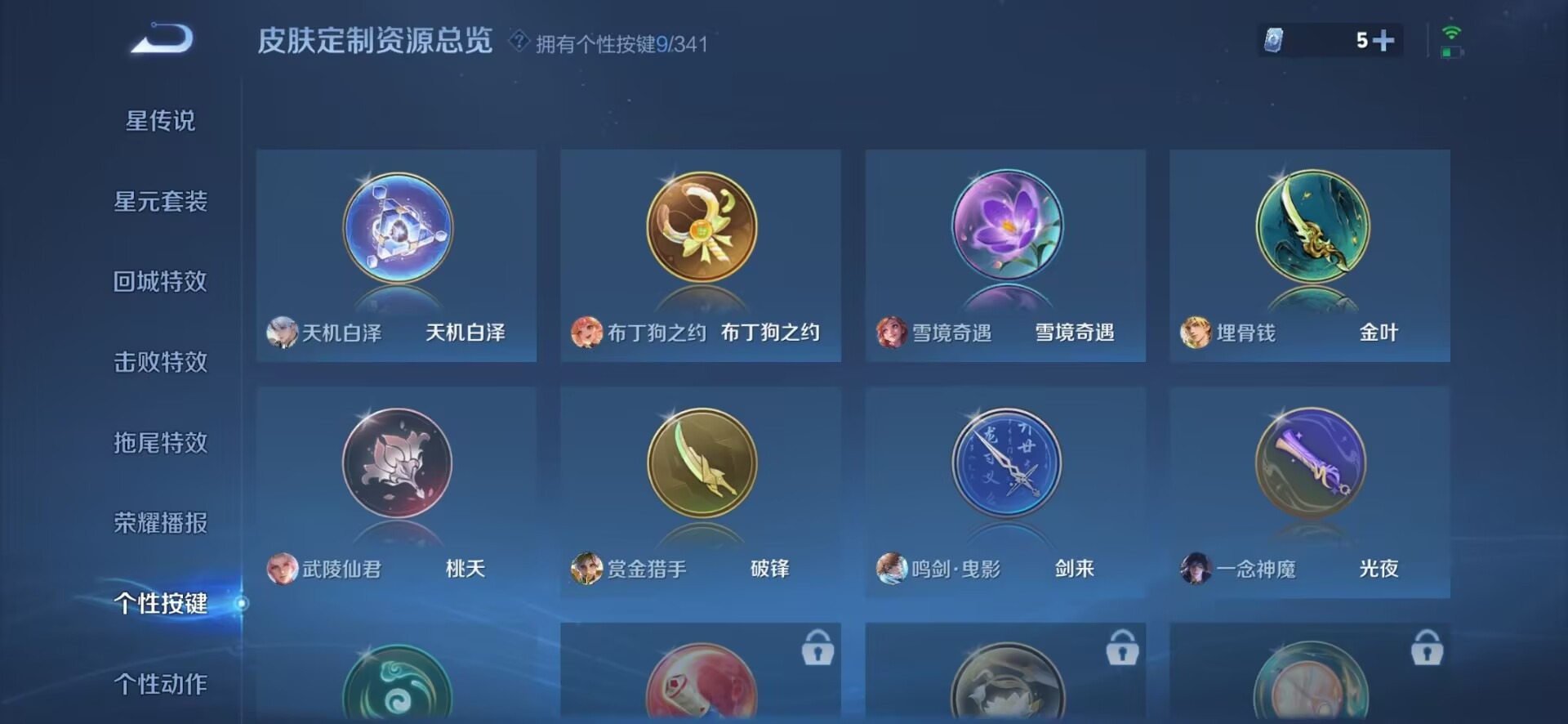伽罗太华,干将莫邪冰霜恋舞曲,孙尚香异界灵契,鲁班七号寅虎·瑞焰,露娜一生所爱,镜匿光追影者,诸葛亮时雨天司,公孙离玉兔公主,裴擒虎李小龙,裴擒虎寅虎·赤拳,上官婉儿梁祝,李白诗剑行,花木兰默契交锋,马可波罗山海·玄木吟,桑启鸣野蒿,孙悟空孙行者,马超神威,云中君时之祈愿,韩信傲雪梅枪,百里守约朱雀志,瑶时之祈愿,瑶山海·碧波行,澜愿照·九州拓