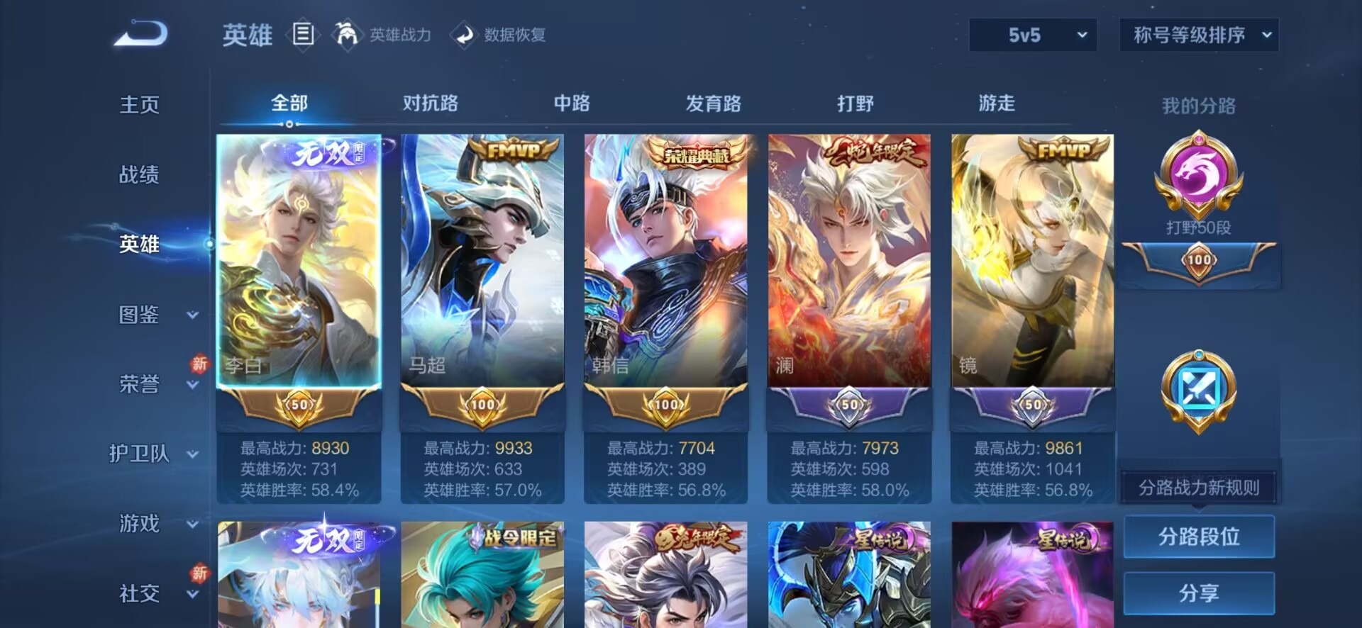 - [11166444]V6 5传说 122英雄 171皮肤 可修改实名 女号 优质装备:冠军飞将,云鹰飞将(小将军) 珍宝阁皮:蔷薇恋人,玩趣恶龙 限定皮:愿照·九州拓(澜年限),鸣野蒿,白虎志(电光耗子),飞衡(韩信年限),高山流水,梁祝,李小龙,朱雀志(守约年限),辉光之辰,引擎之心,冰霜恋舞曲 史诗皮:器灵·浮梦炉,化蝶舞,紫霞仙子,特工魅影,千年之狐,匿光破解者,电玩·爆裂旋风,江河有灵,百解令(蒙犽),蒙恬荣光圣徽,暗夜猫娘,魅语,冰冠公主,乱世虎臣,修罗,摇滚巨星,水果甜心,绅士熊喵,星夜王子,心灵骇客,功夫厨神,暗隐猎兽者,幽灵船长,鬼剑武藏,纤云弄巧,缤纷独角兽,乘风破浪,月团寄思,金属风暴,原初追逐者,圣诞恋歌,鹰眼统帅,魅力维加斯